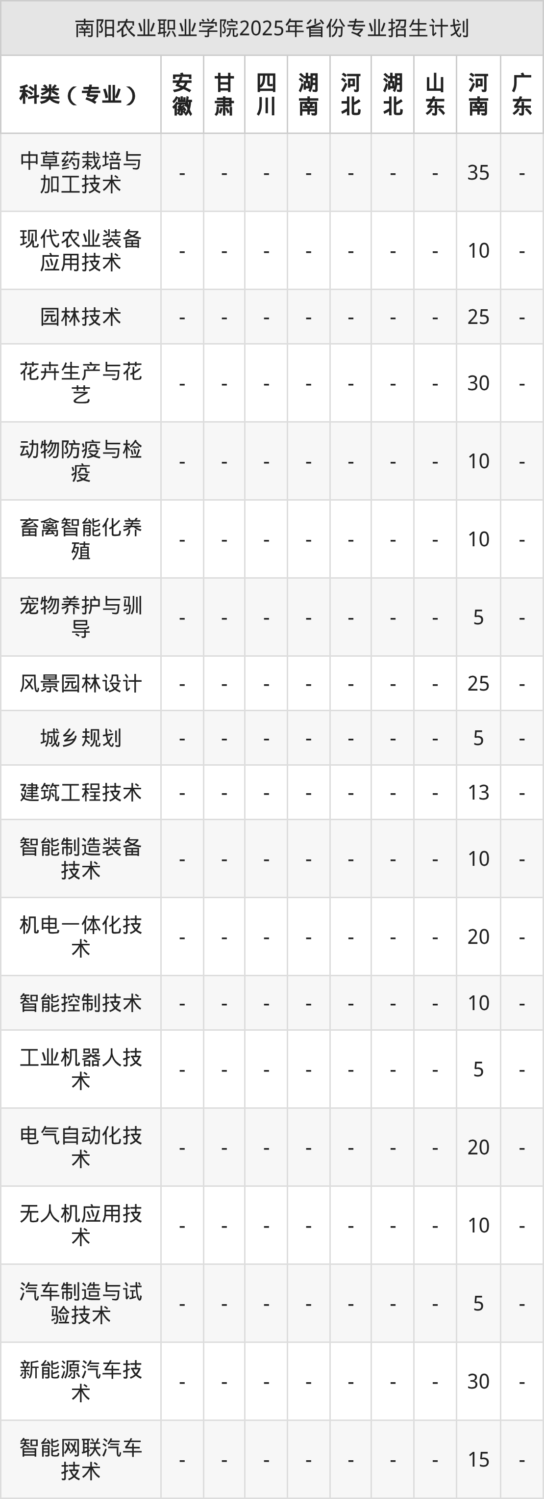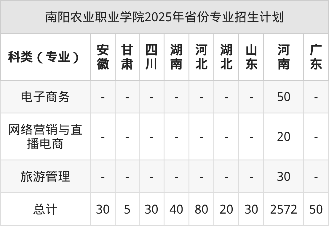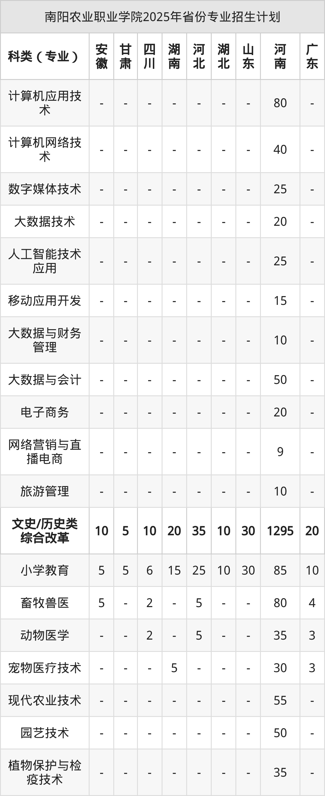 2026年南阳农业职业学院专科招生计划待公布,下面附上2025年数据,暂供参考: