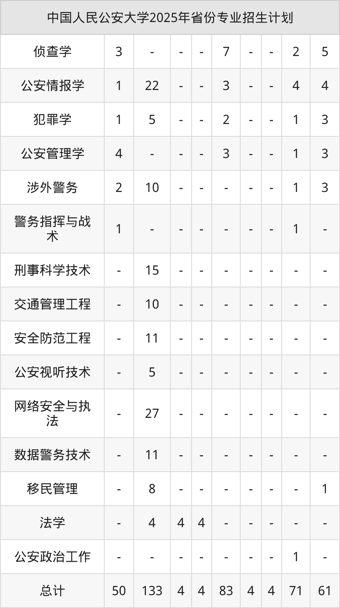 2026年中国人民公安大学本科招生计划待公布,下面附上2025年数据,暂供参考: