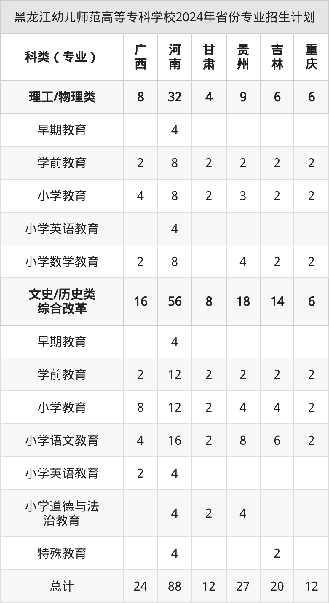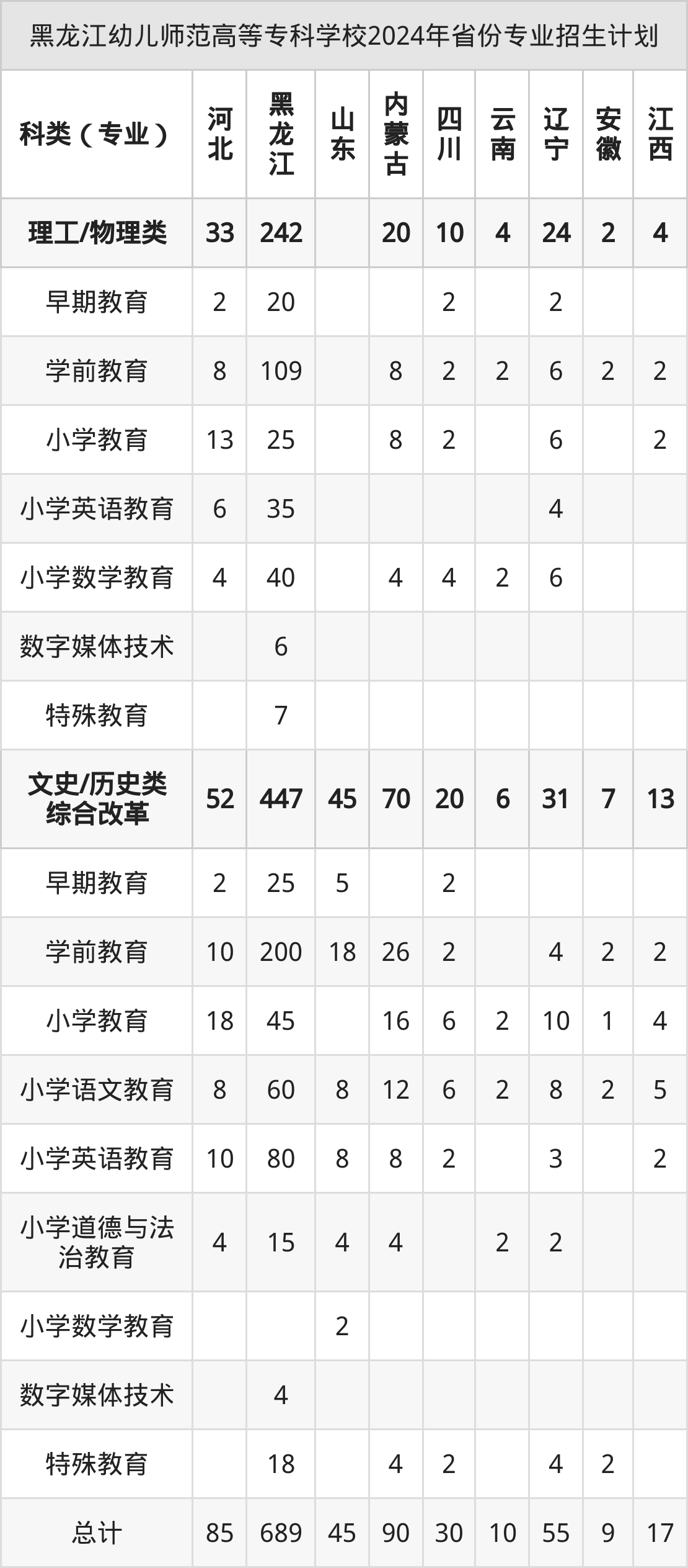 2025年黑龙江幼儿师范高等专科学校专科招生计划待公布,下面附上2024年数据,暂供参考: