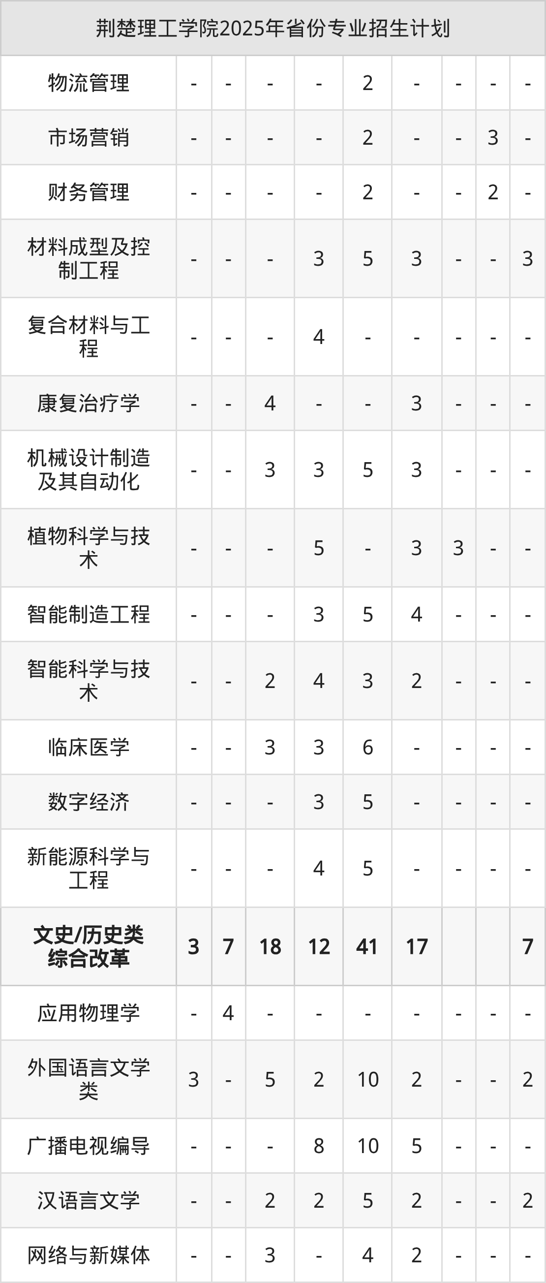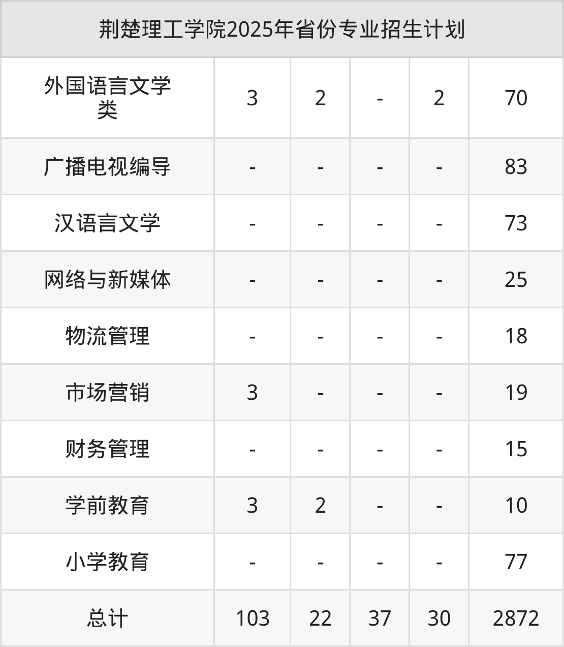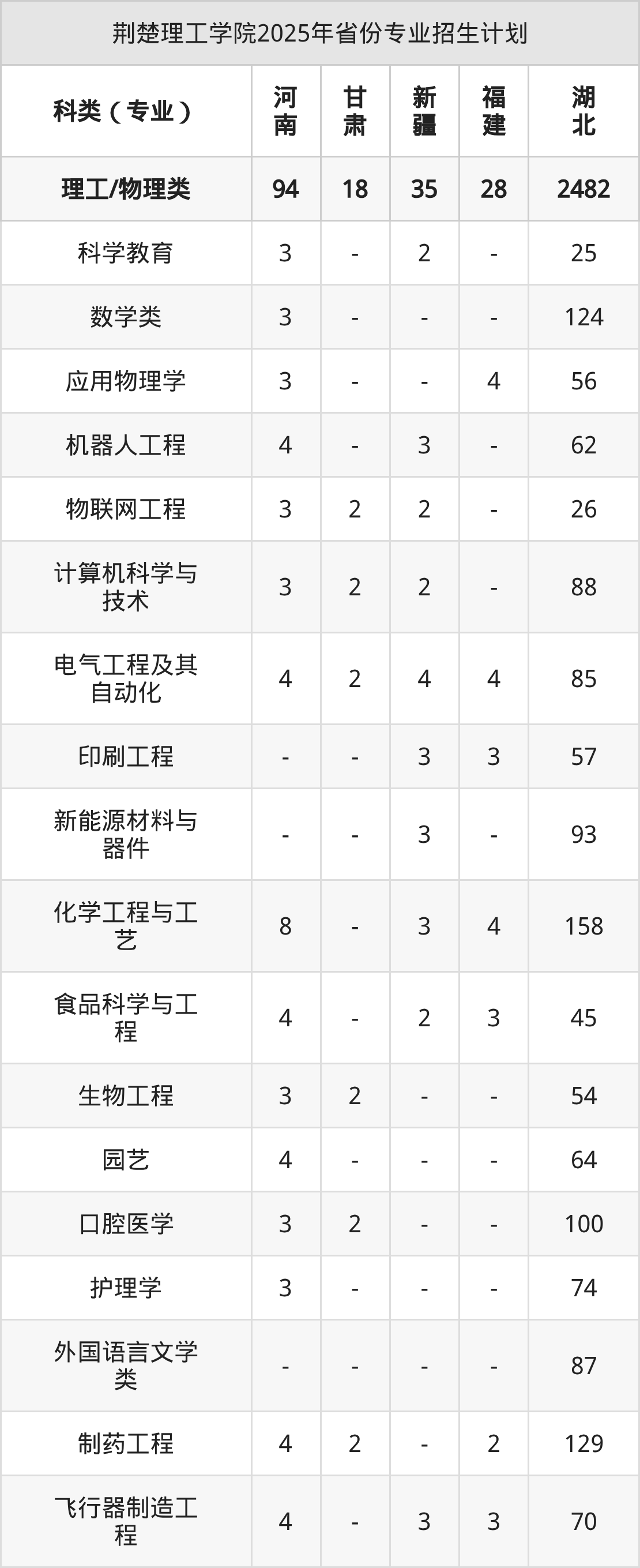 2026年荆楚理工学院本科招生计划待公布,下面附上2025年数据,暂供参考: