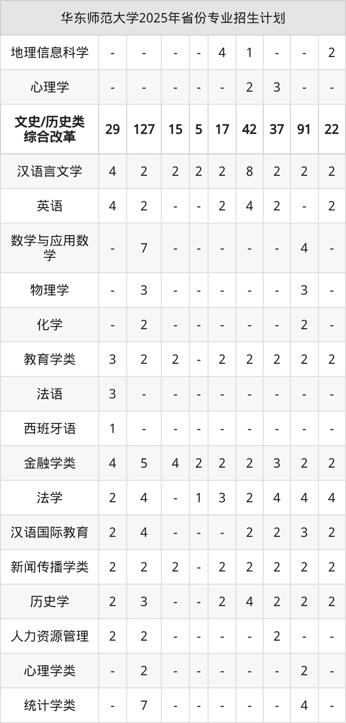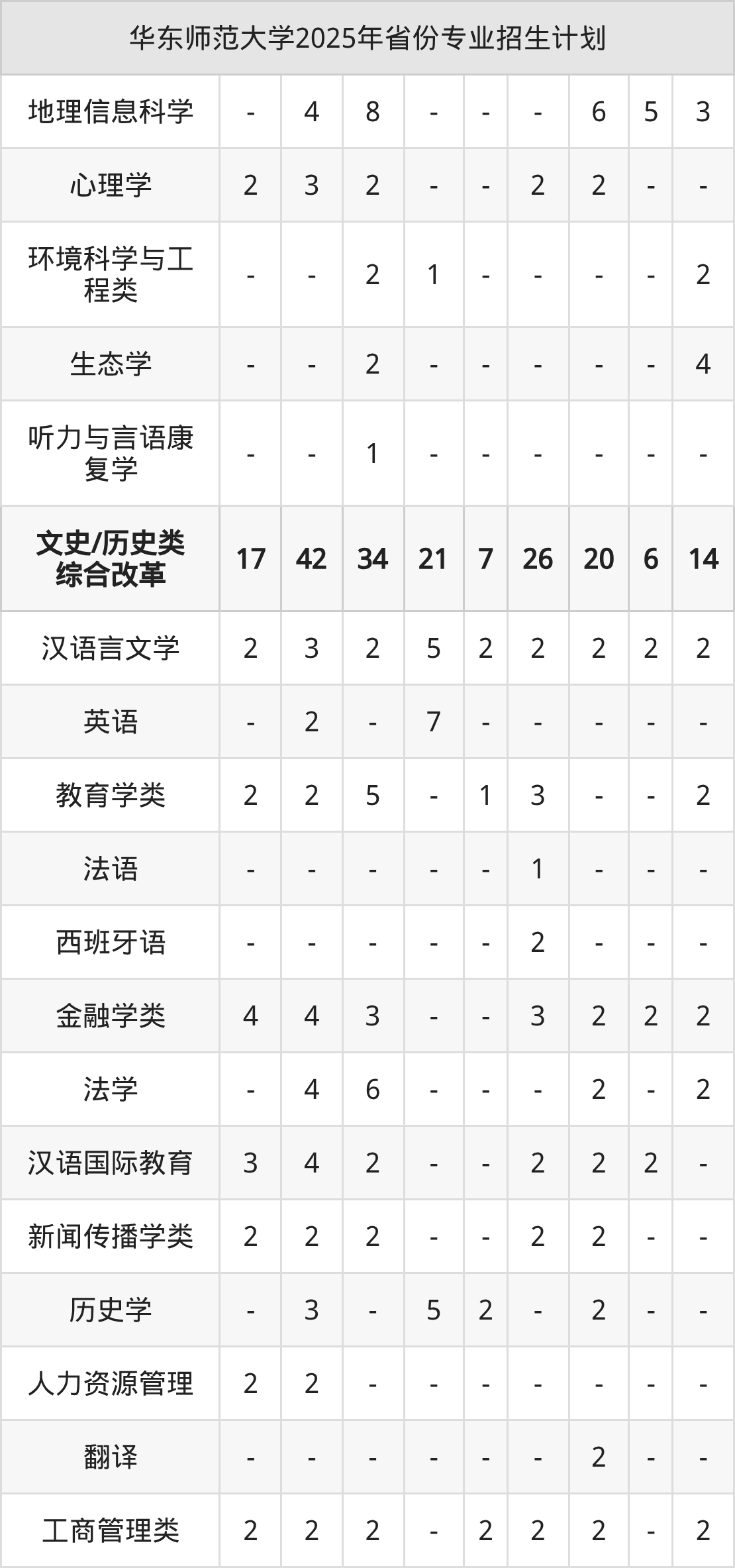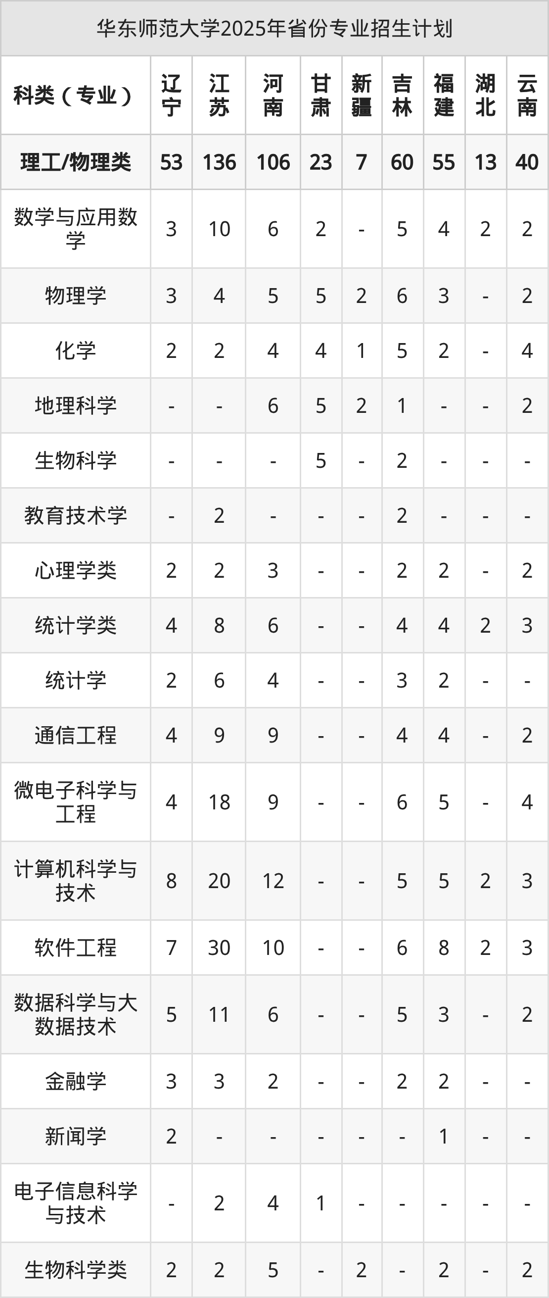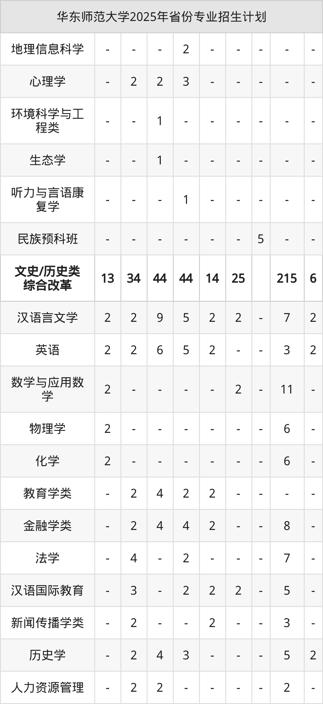 2026年华东师范大学本科招生计划待公布,下面附上2025年数据,暂供参考: