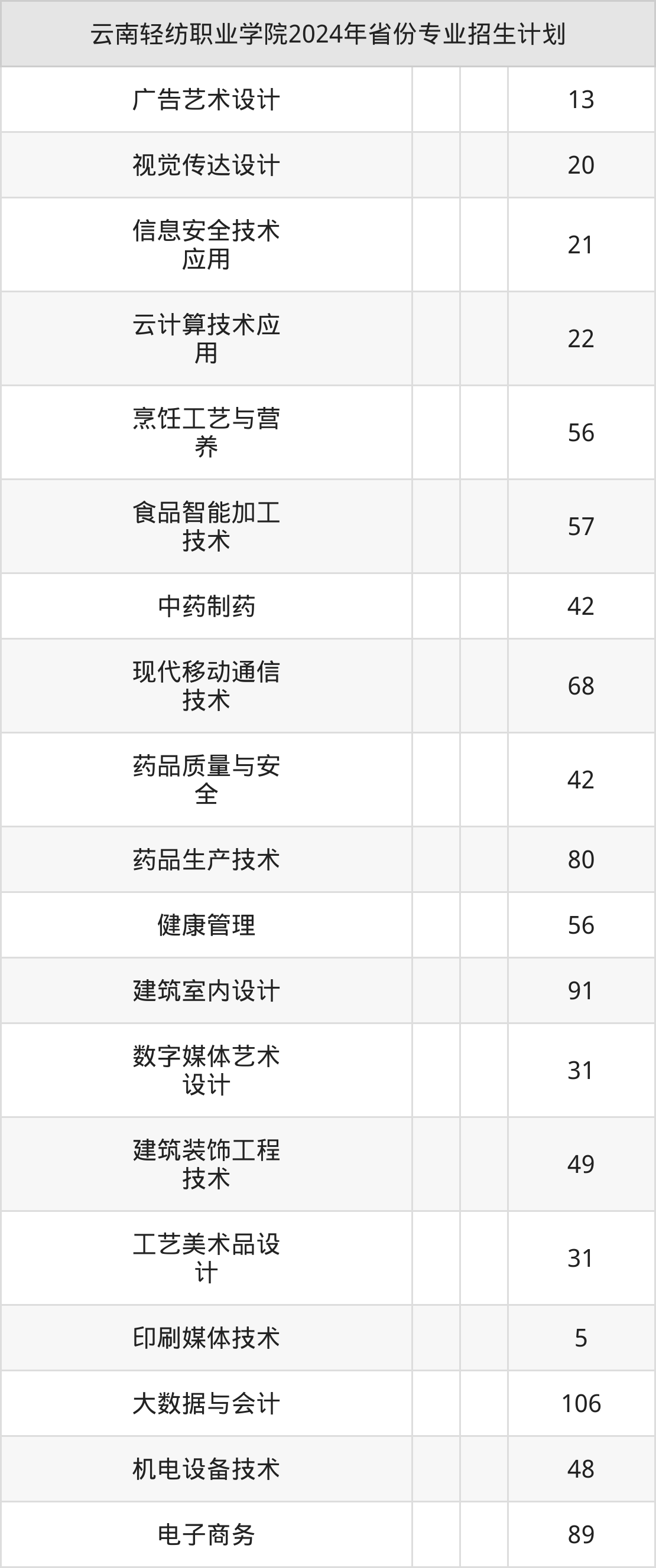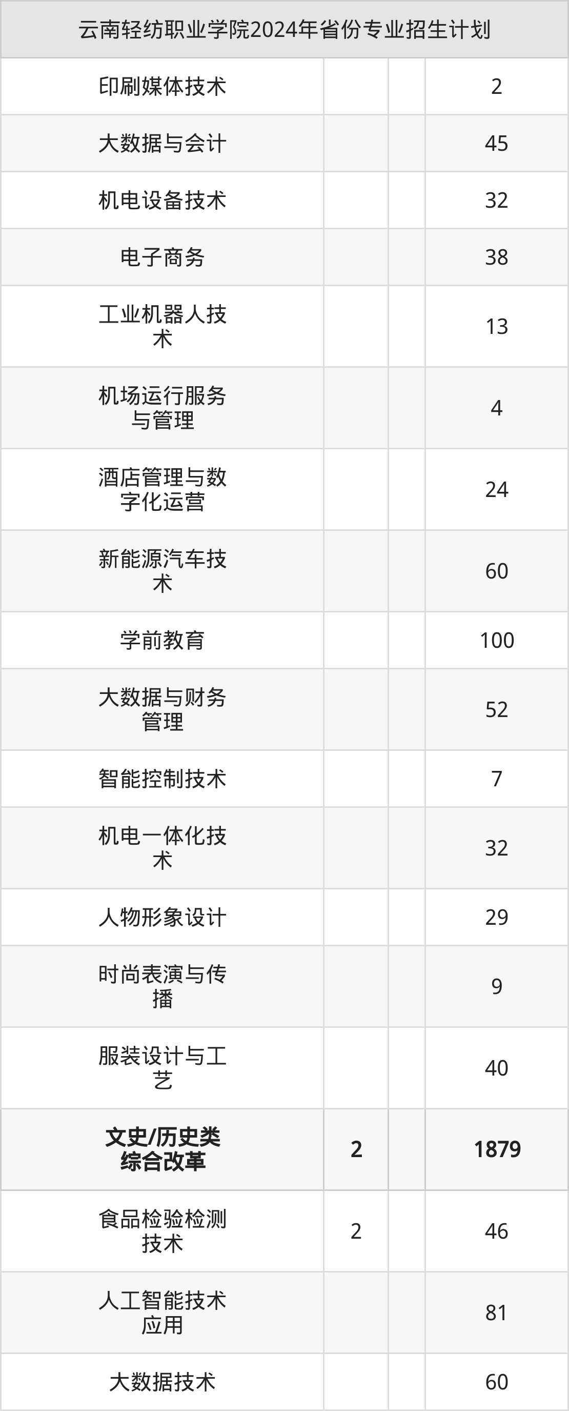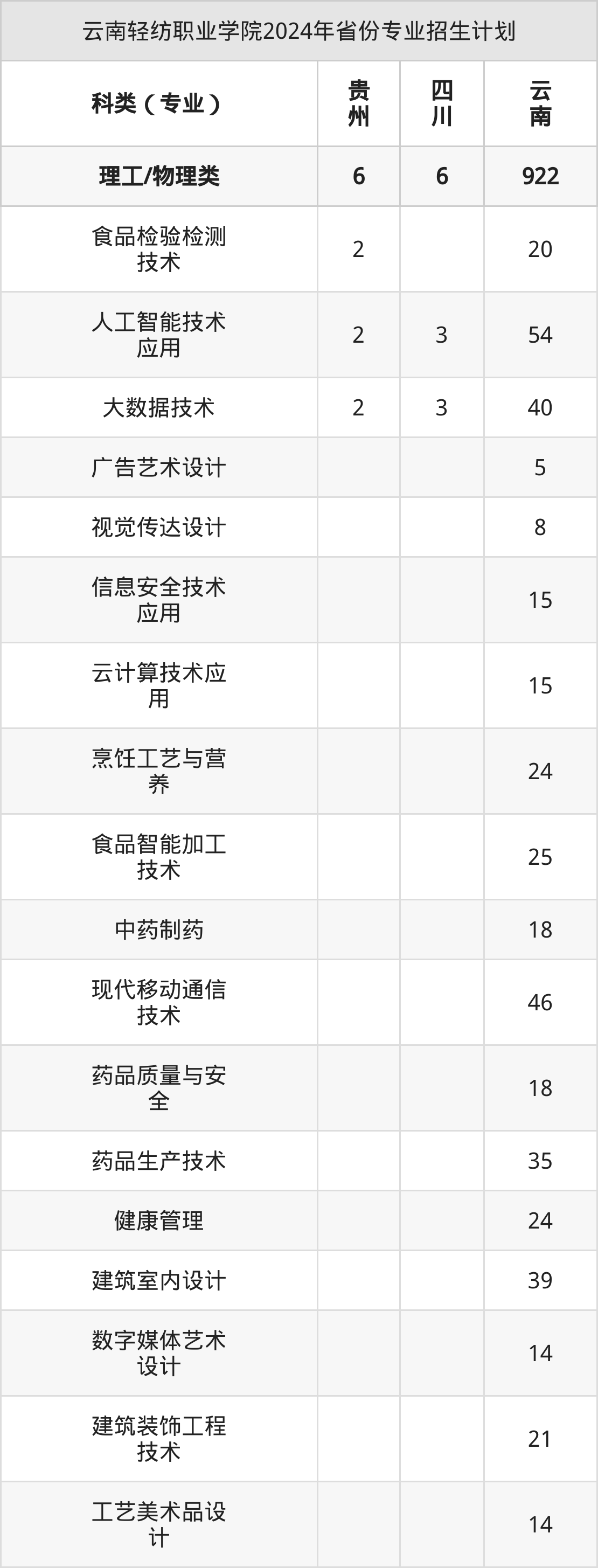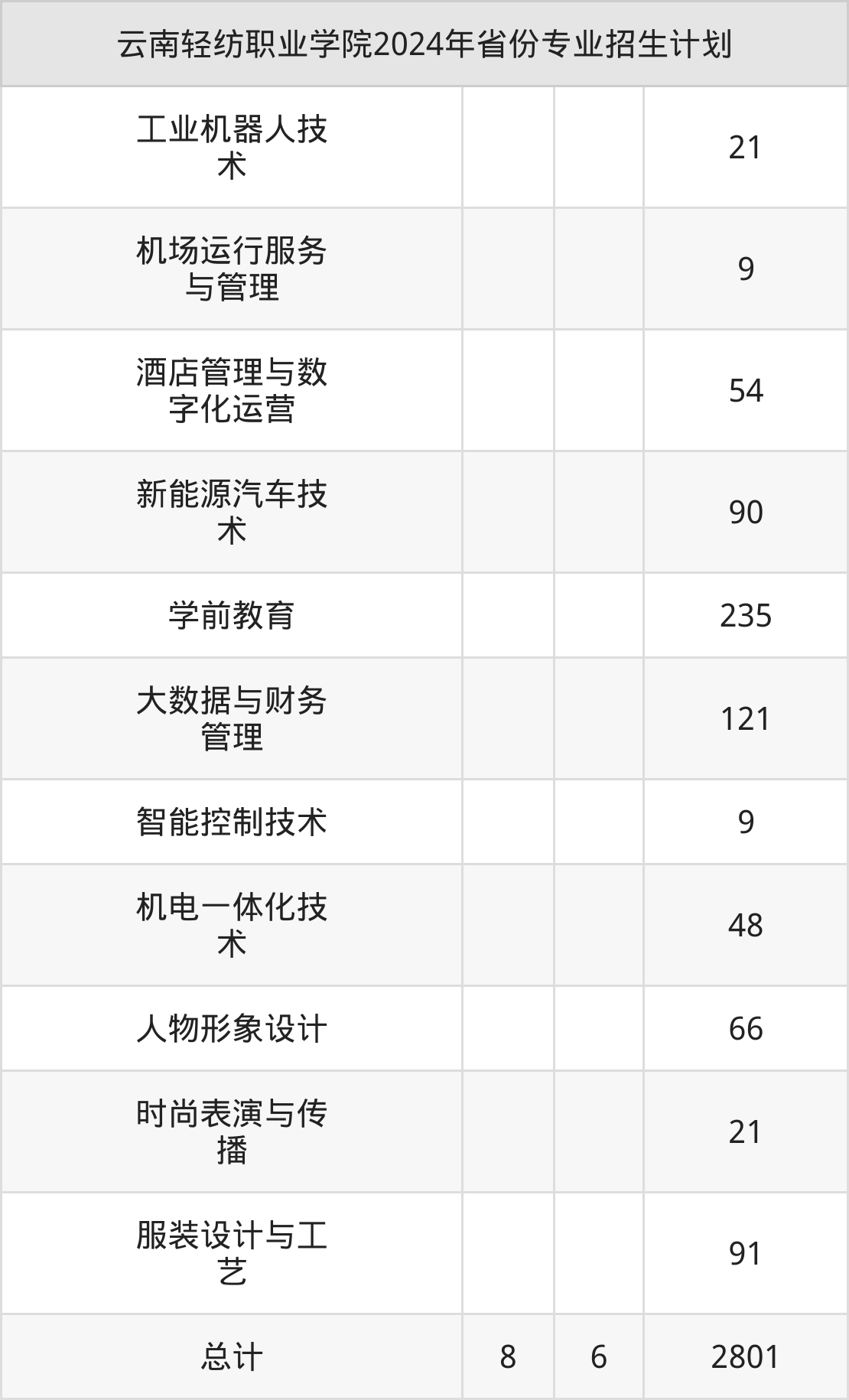 2025年云南轻纺职业学院专科招生计划待公布,下面附上2024年数据,暂供参考: