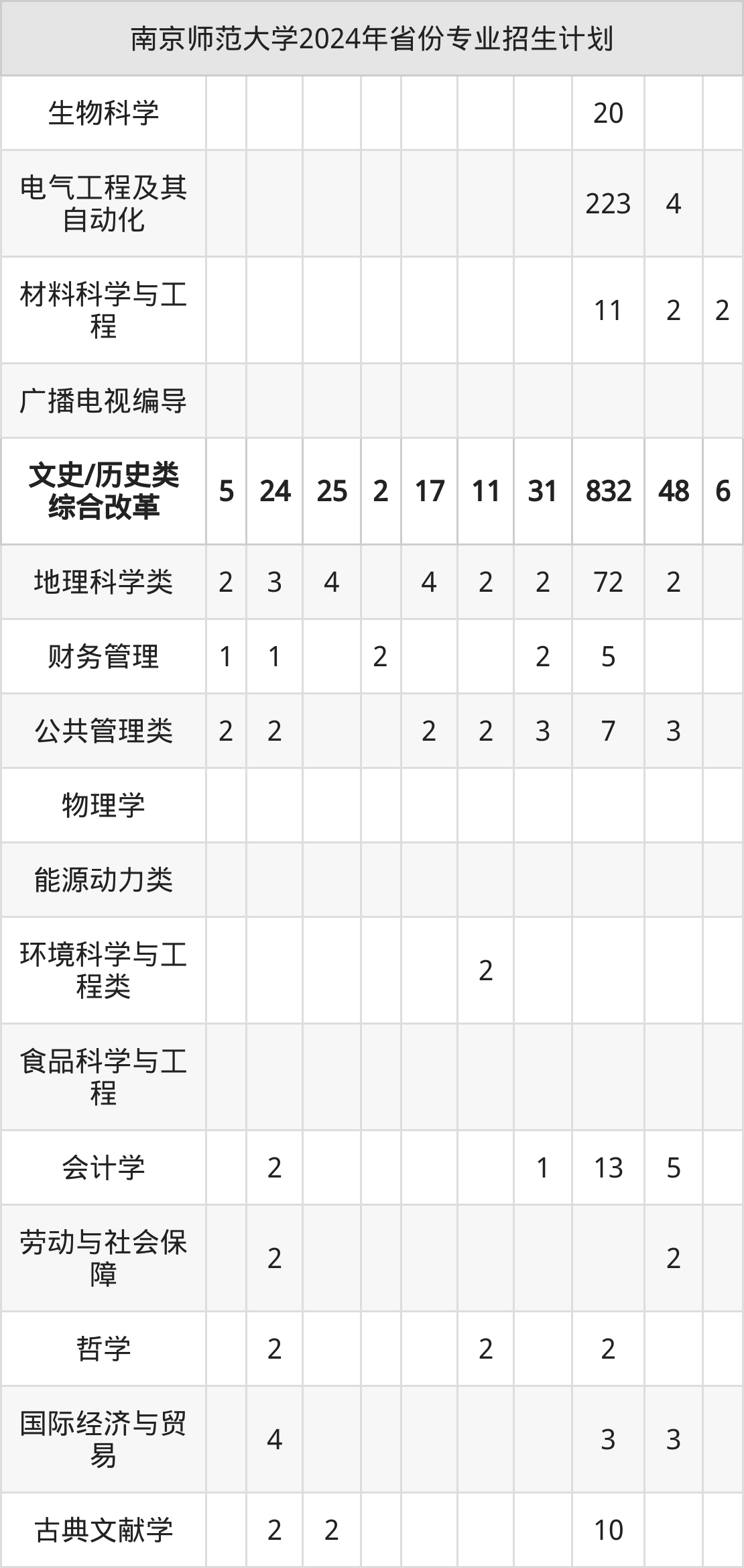 2024年南京师范大学计划招收本科生4201人,其中日语专业20人,外国语言文学类专业224人,自动化专业104人,中国语言文学类专业223人,物理学专业183人等。
