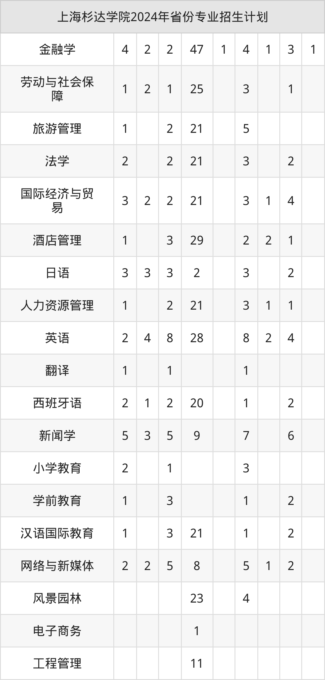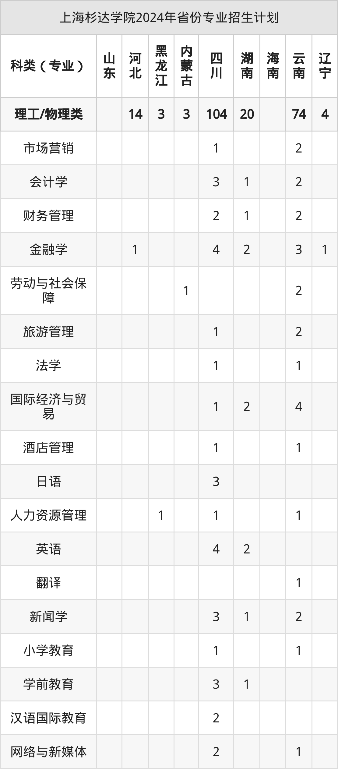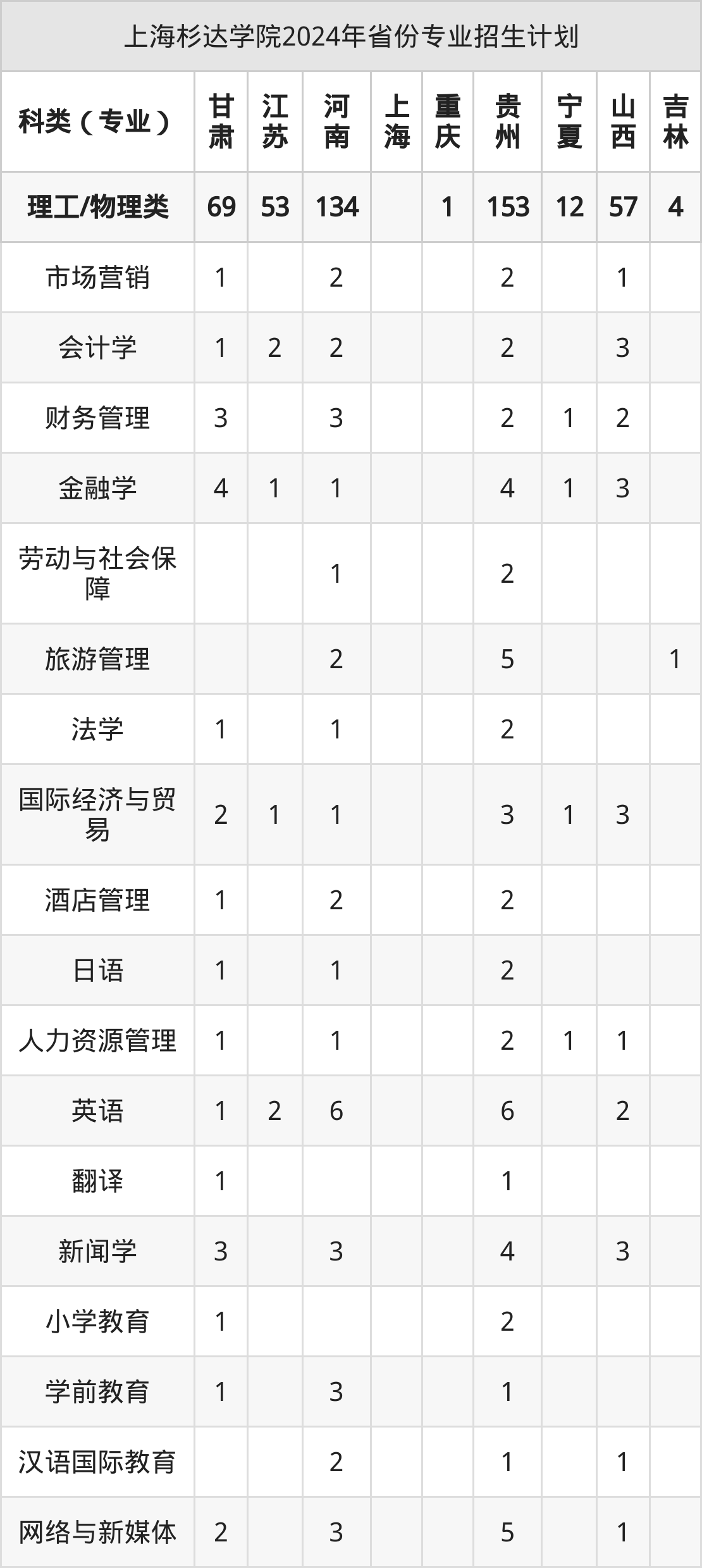 2025年上海杉达学院本科招生计划待公布,下面附上2024年数据,暂供参考: