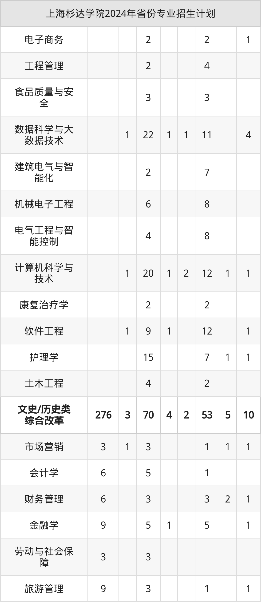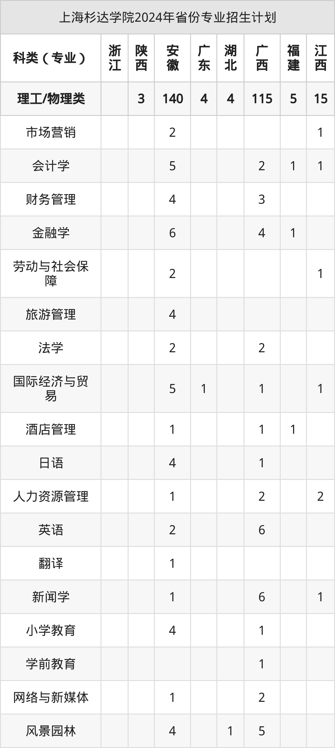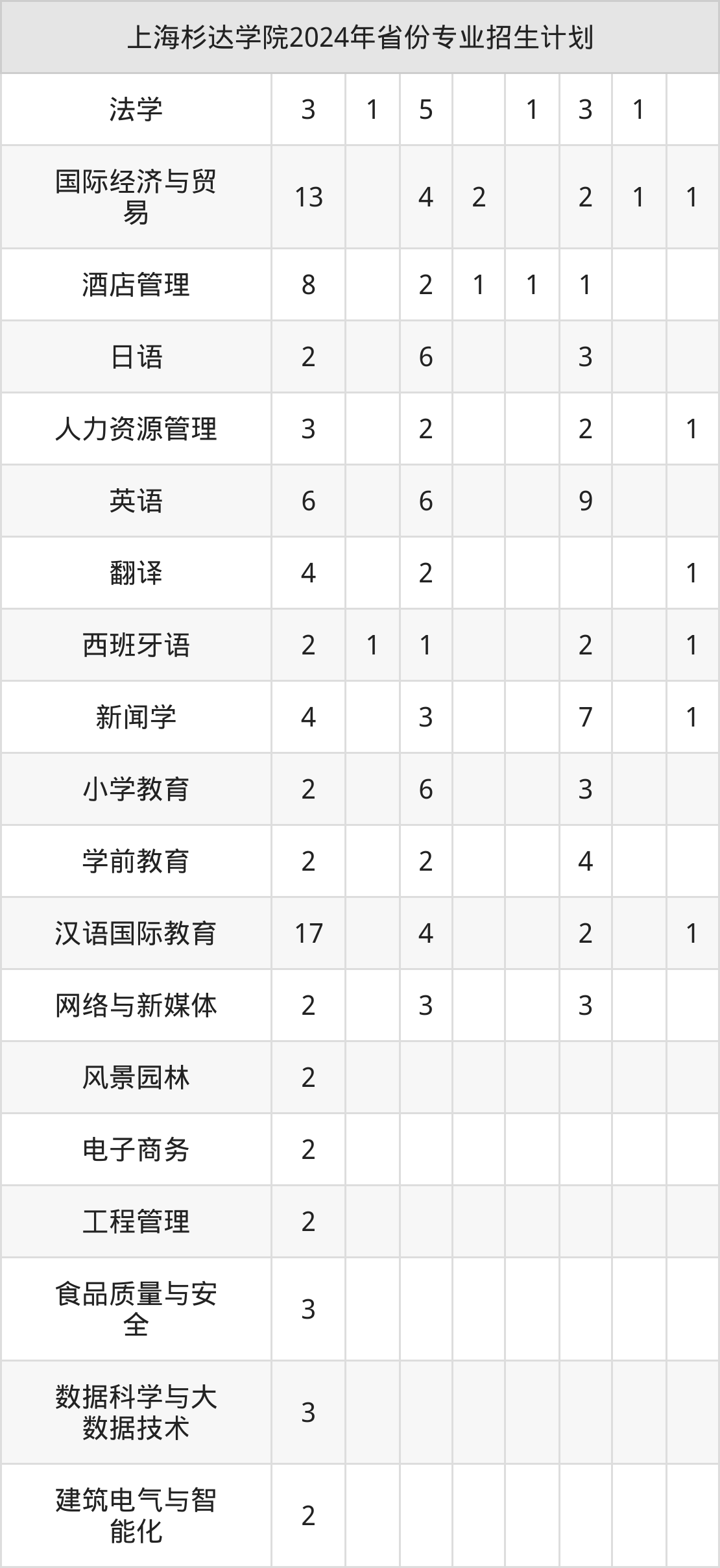2025年上海杉达学院本科招生计划待公布,下面附上2024年数据,暂供参考:
