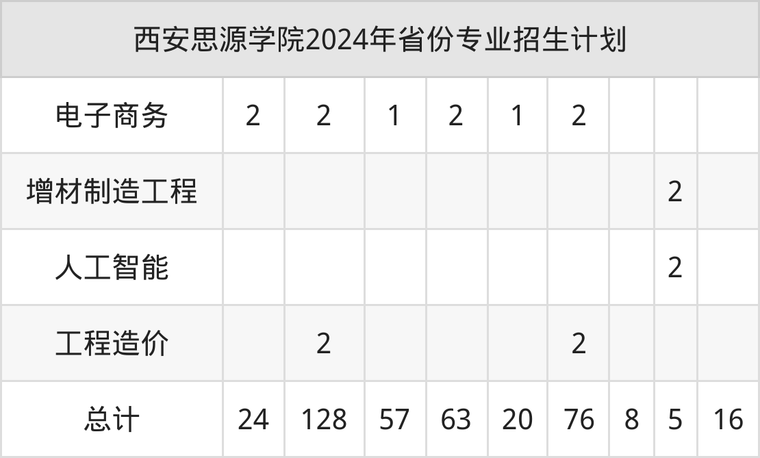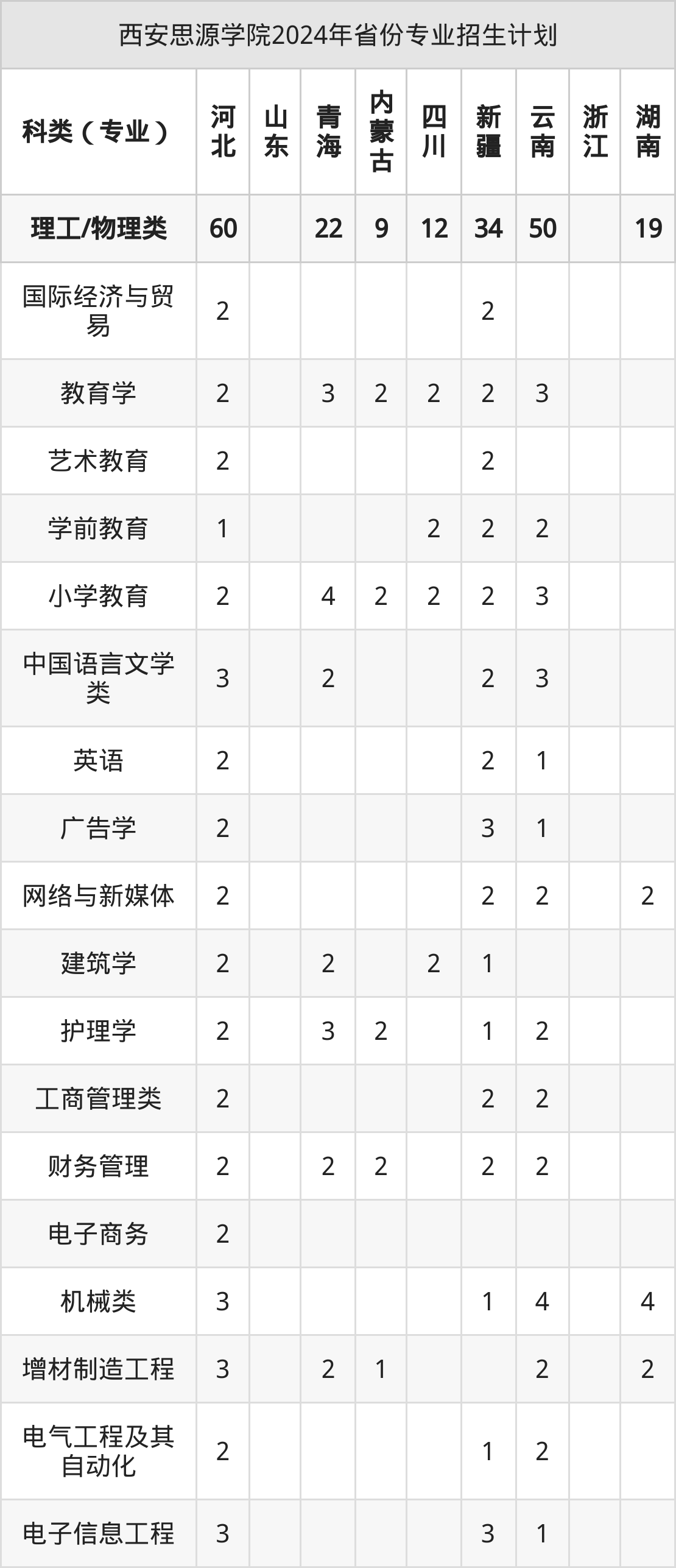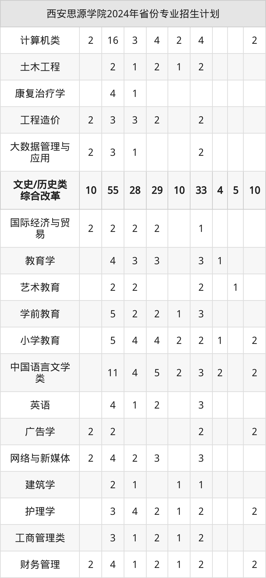 2025年西安思源学院本科招生计划待公布,下面附上2024年数据,暂供参考: