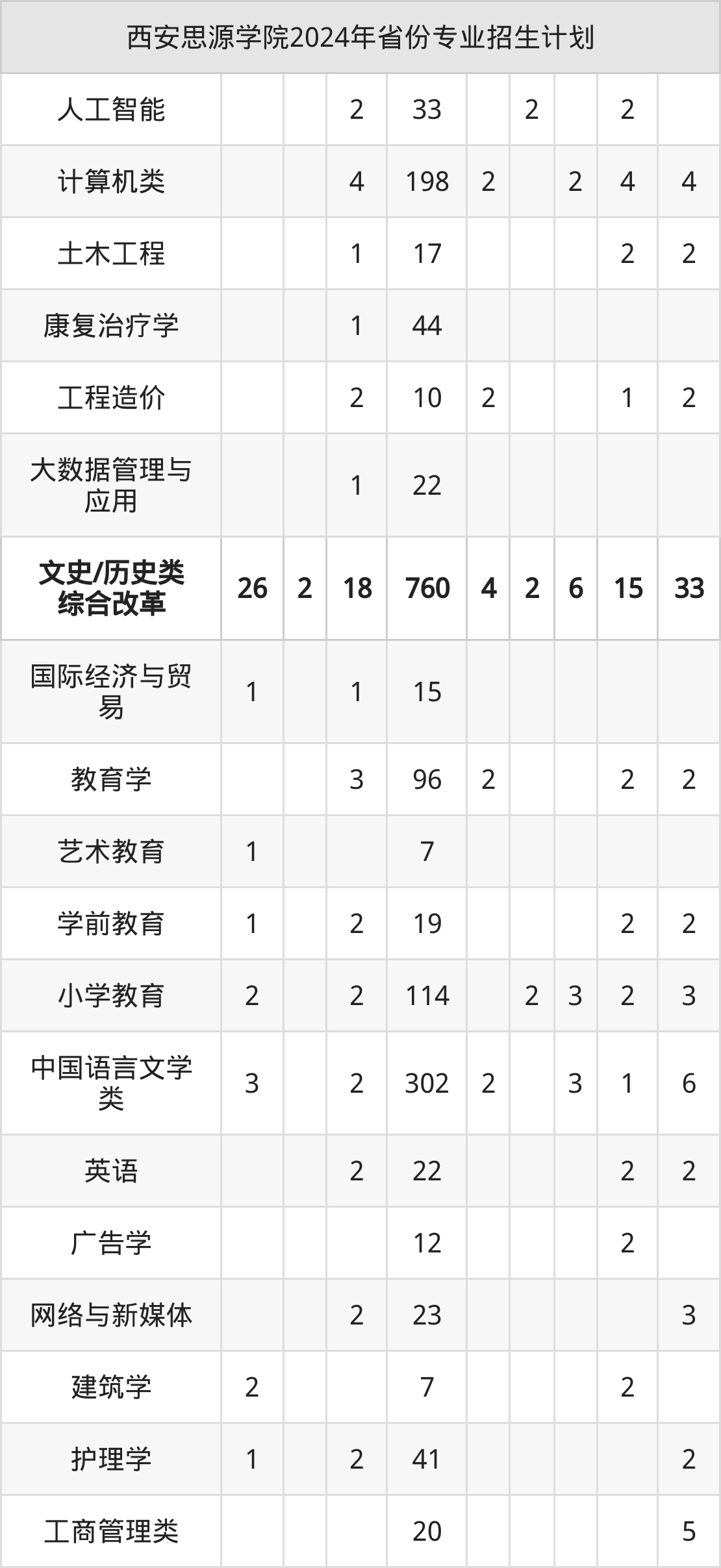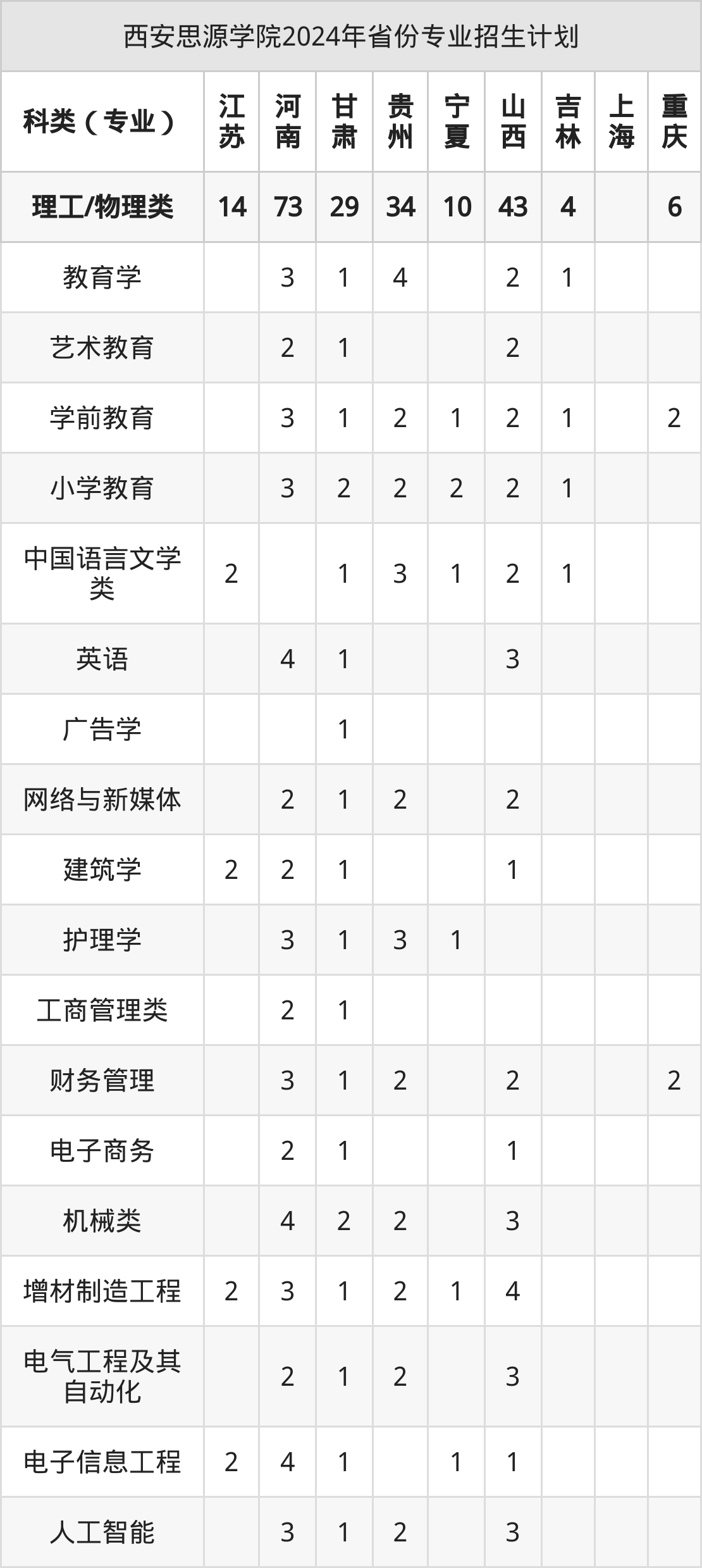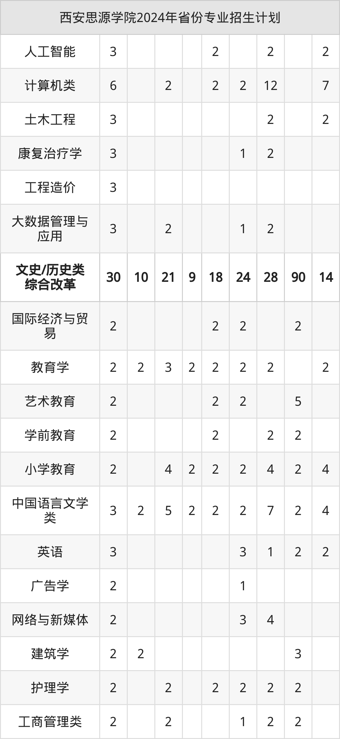 2025年西安思源学院本科招生计划待公布,下面附上2024年数据,暂供参考: