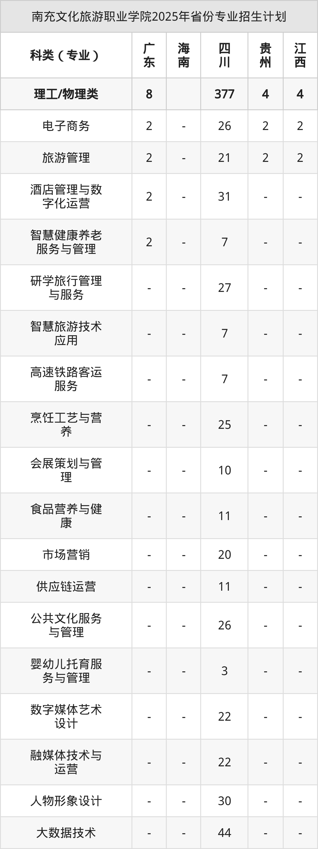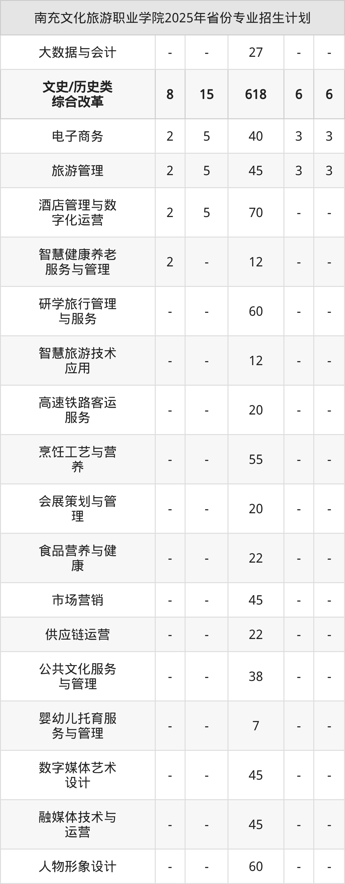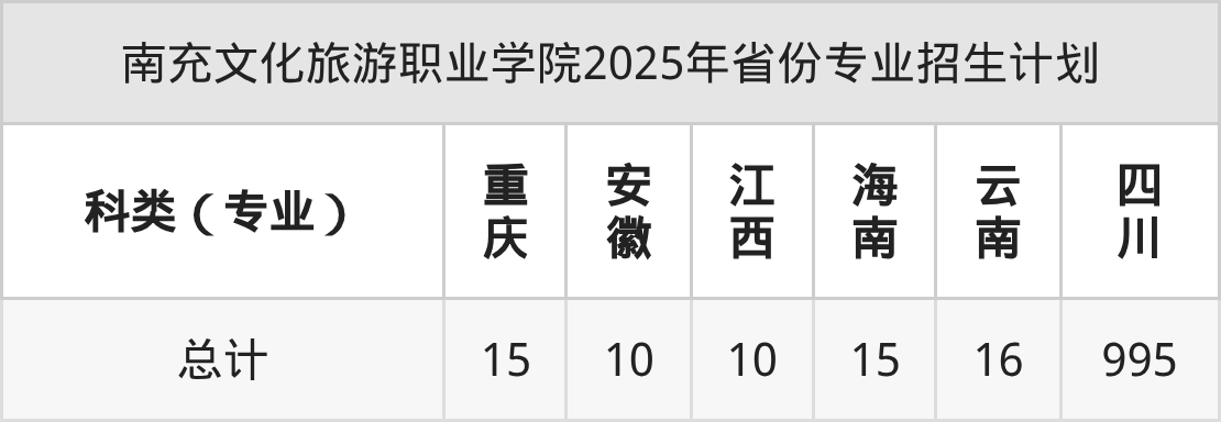 2026年南充文化旅游职业学院专科招生计划待公布,下面附上2025年数据,暂供参考: