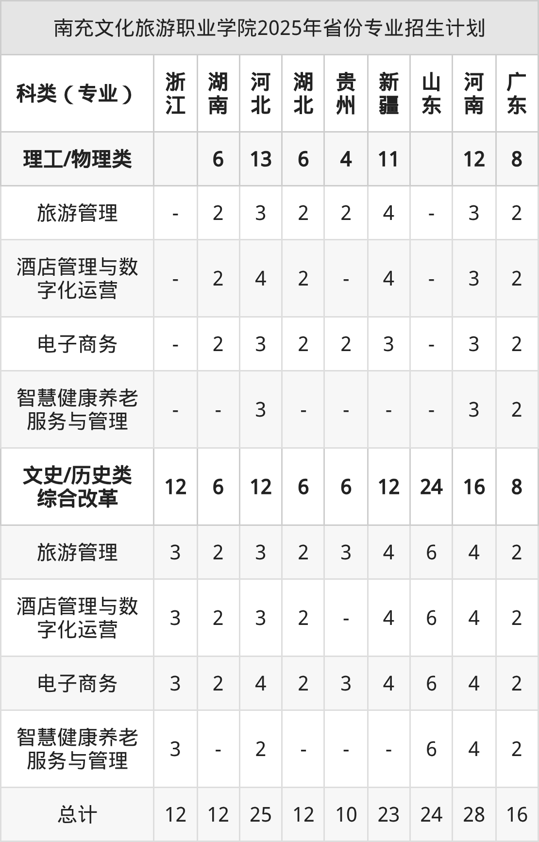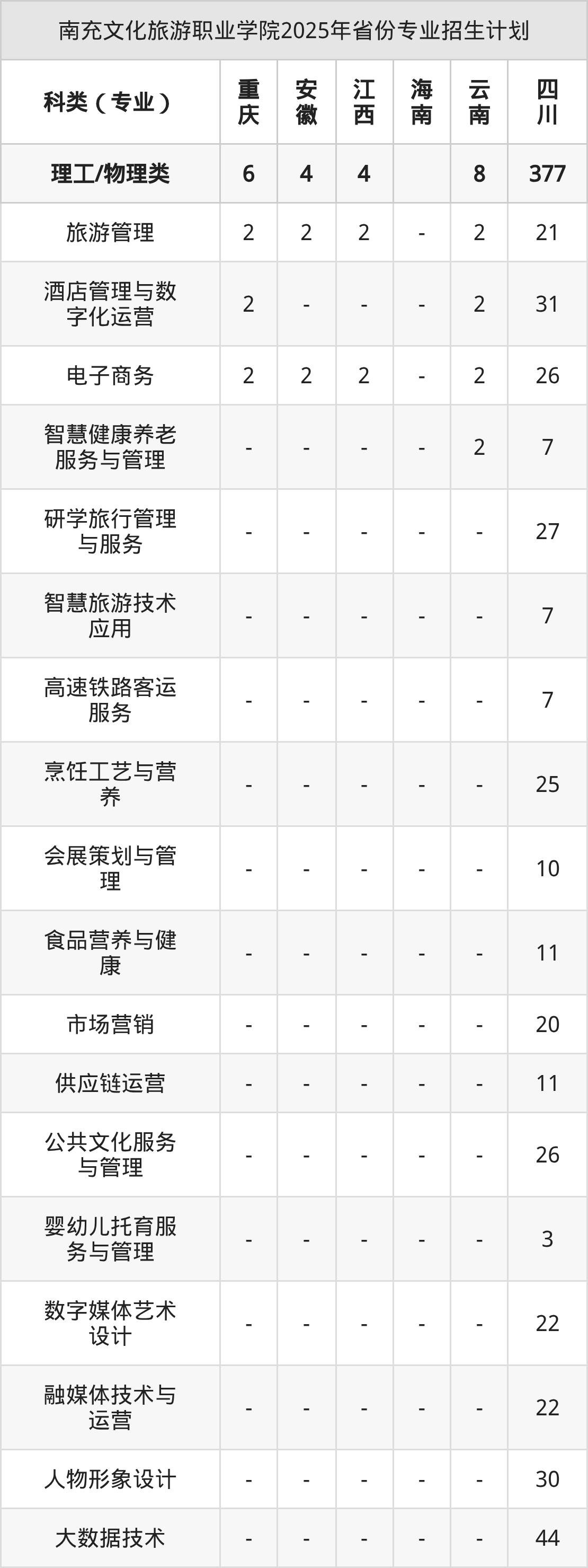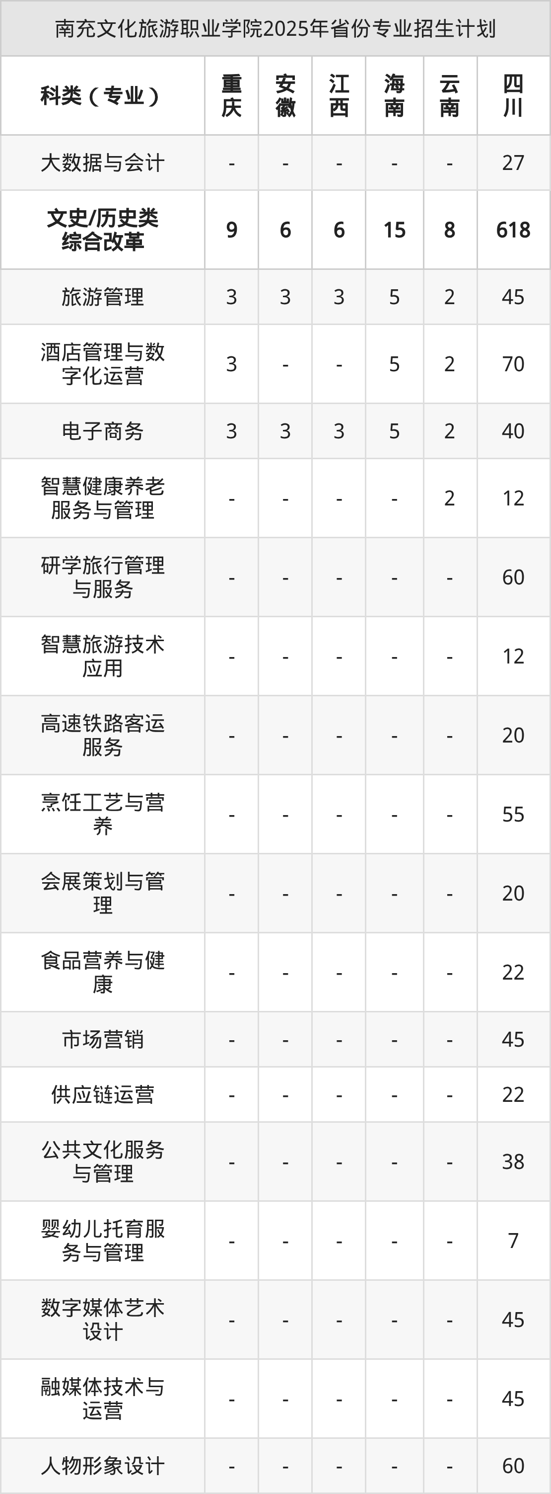 2026年南充文化旅游职业学院专科招生计划待公布,下面附上2025年数据,暂供参考: