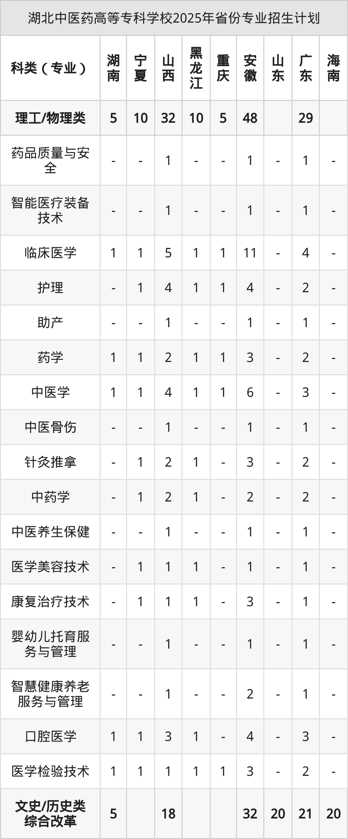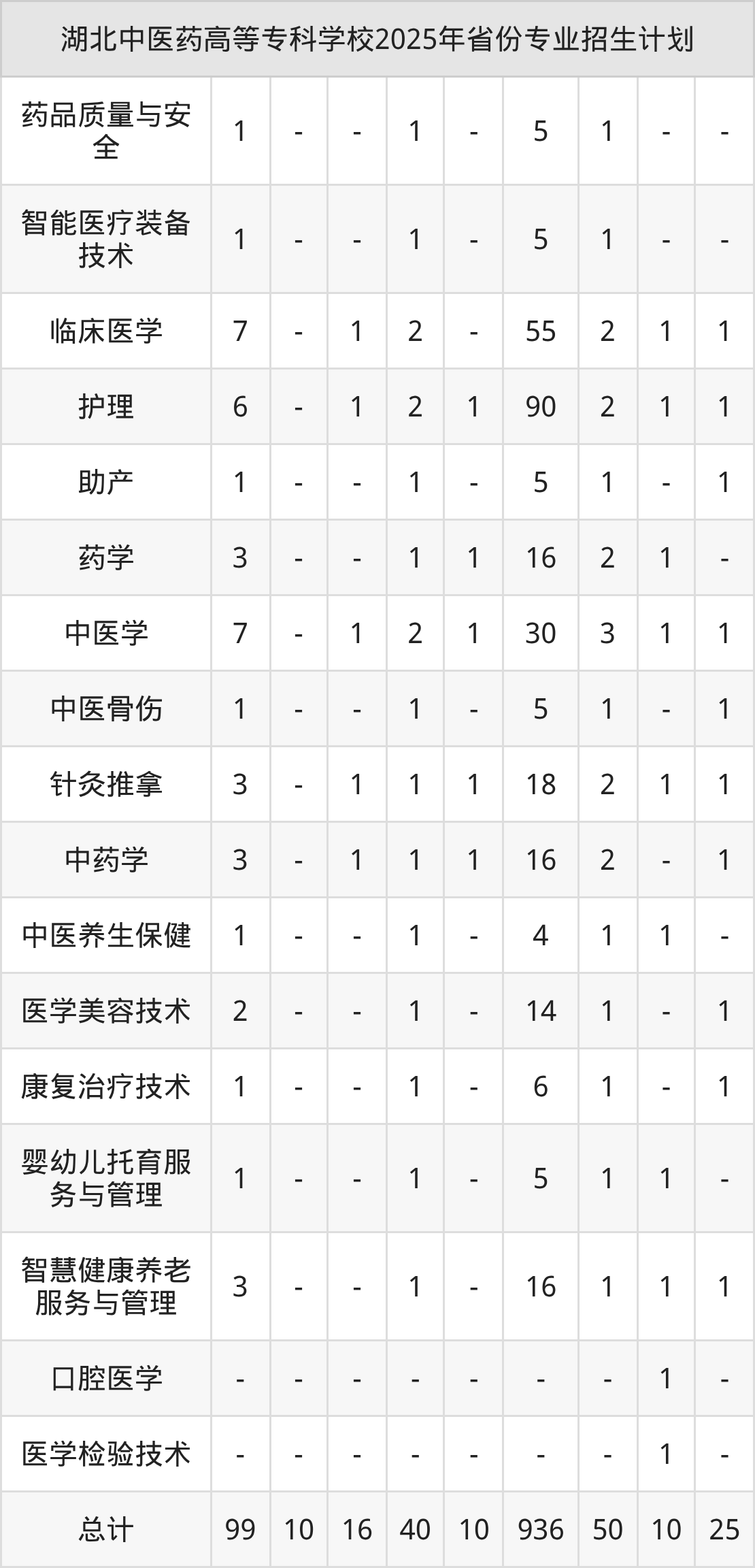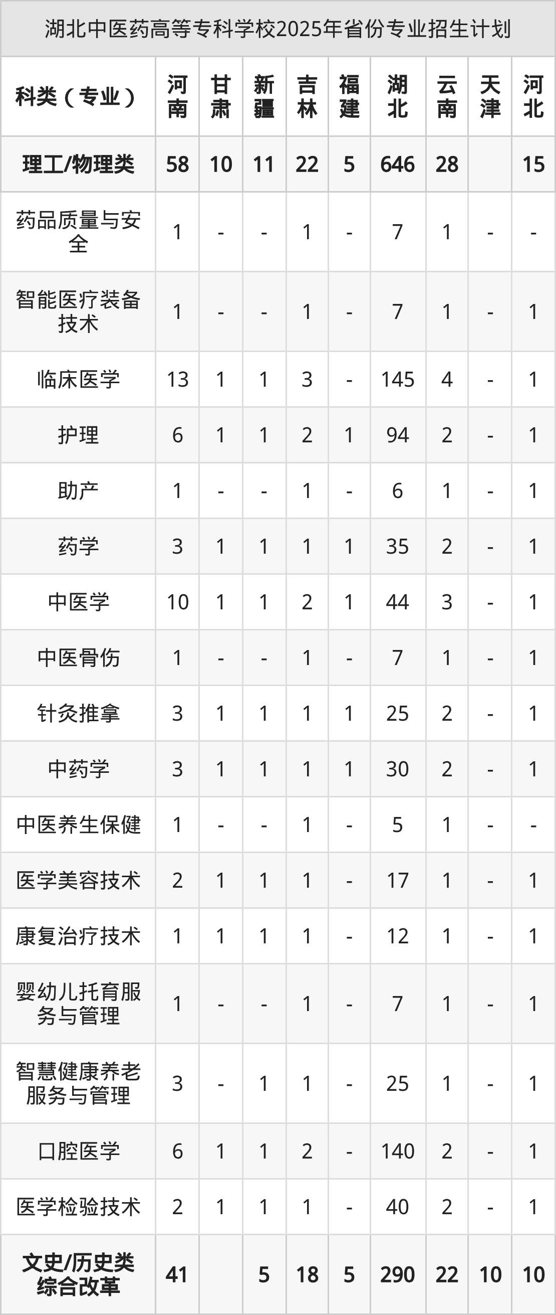 2026年湖北中医药高等专科学校专科招生计划待公布,下面附上2025年数据,暂供参考: