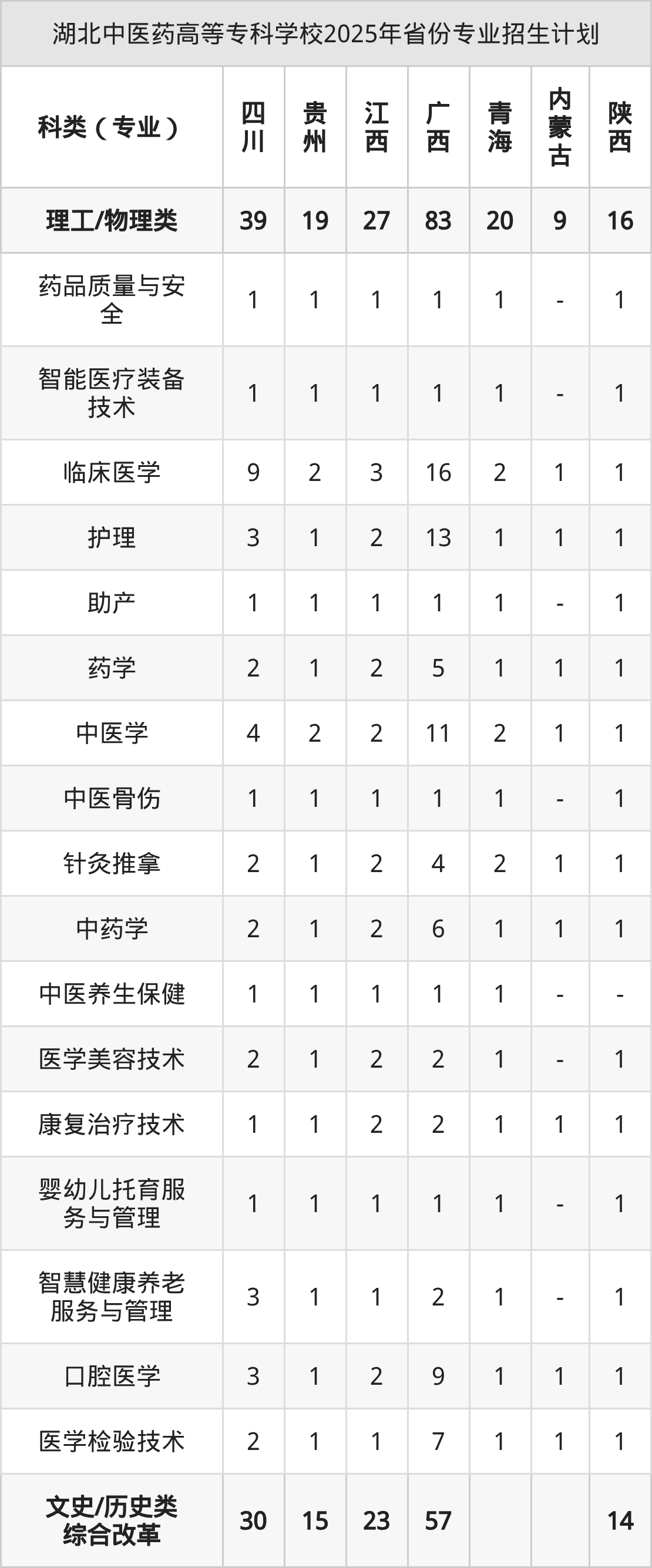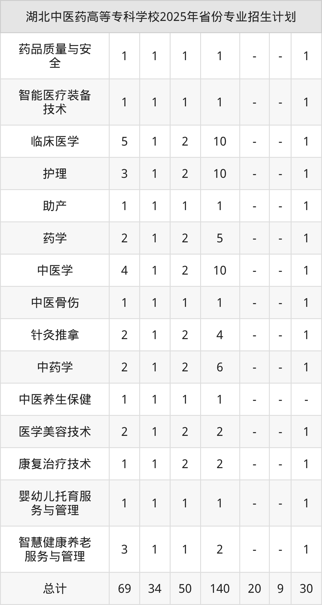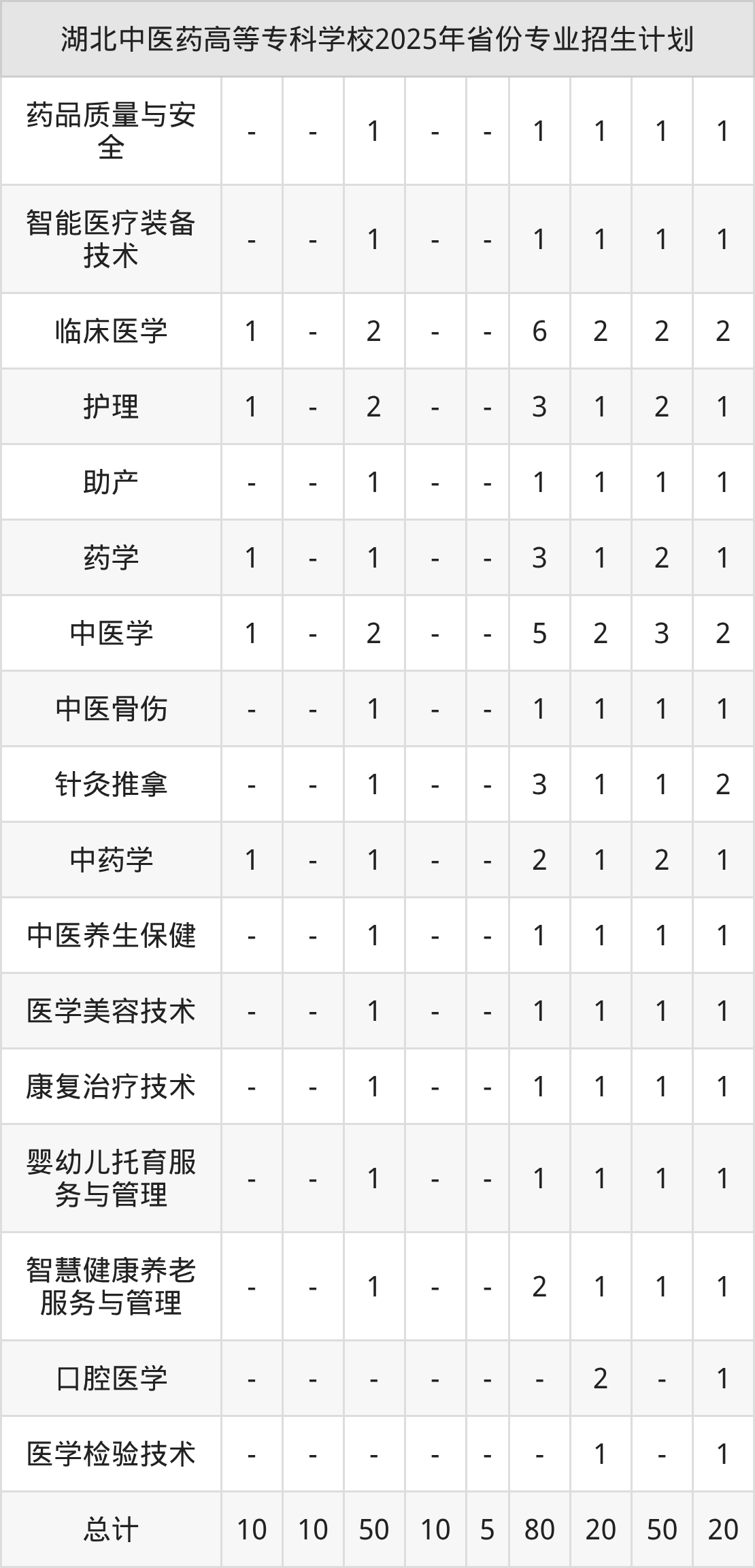 2026年湖北中医药高等专科学校专科招生计划待公布,下面附上2025年数据,暂供参考: