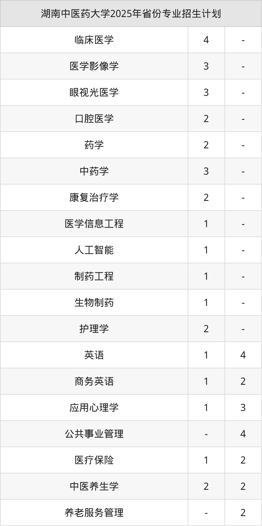 2026年湖南中医药大学本科招生计划待公布,下面附上2025年数据,暂供参考: