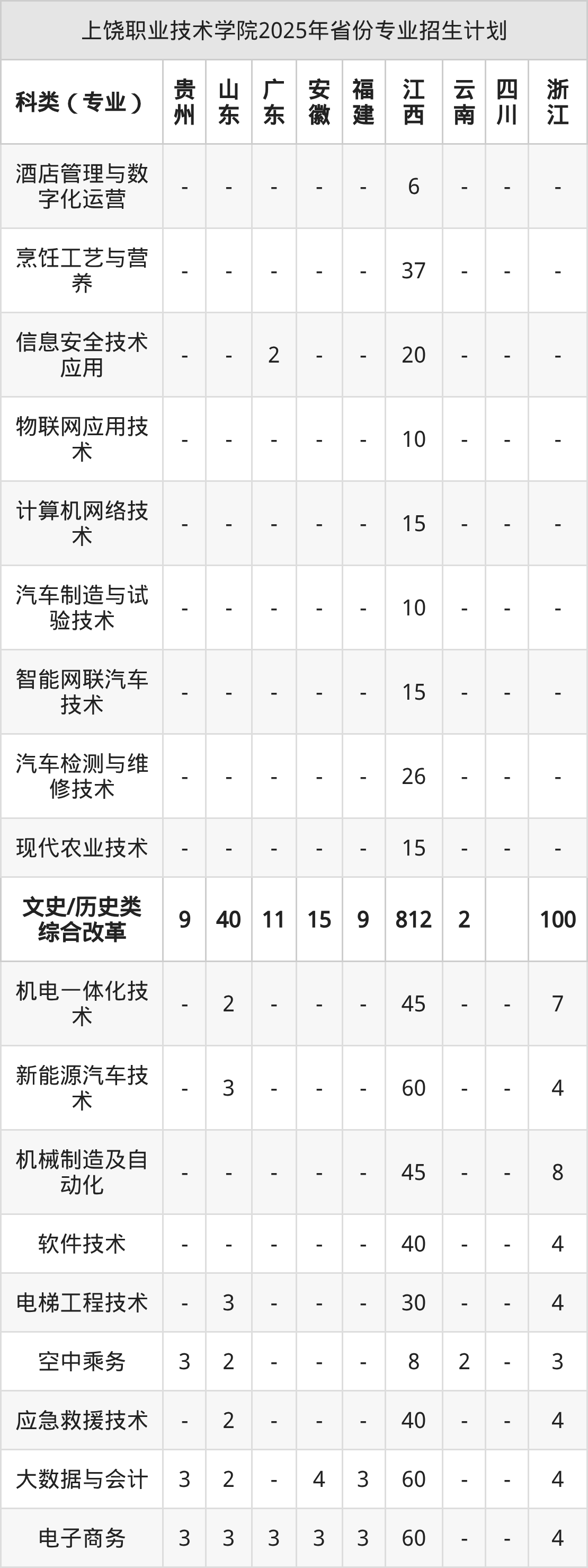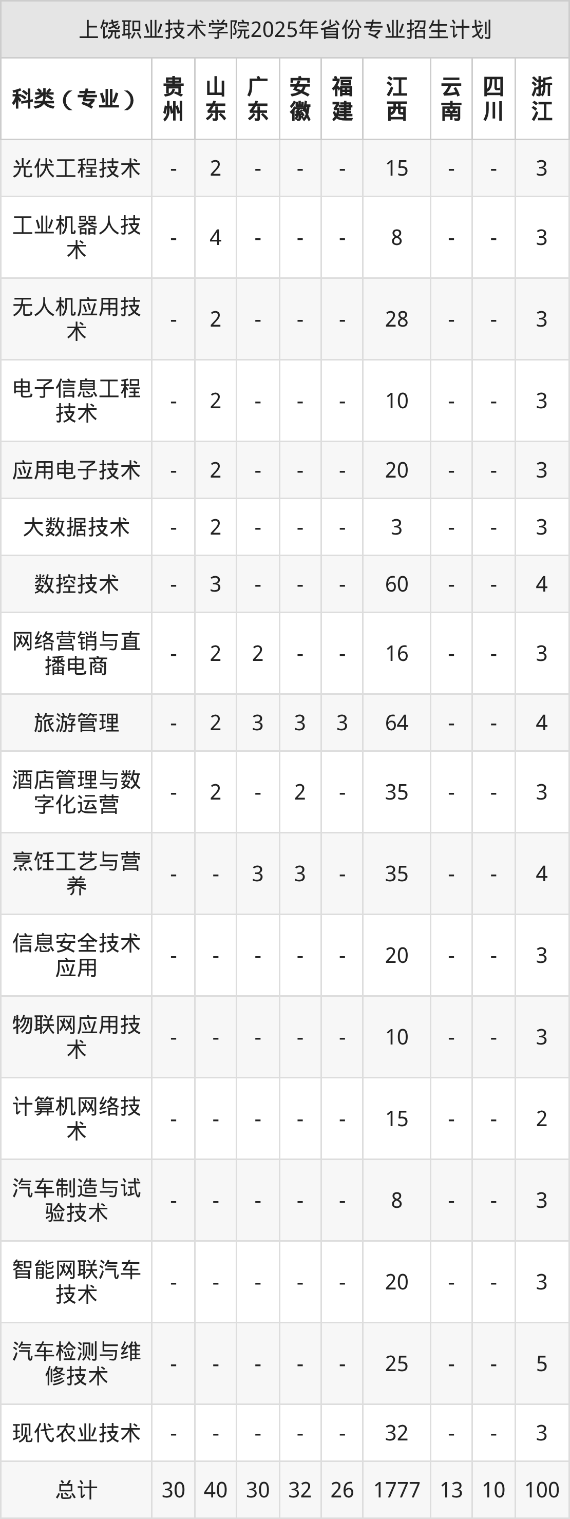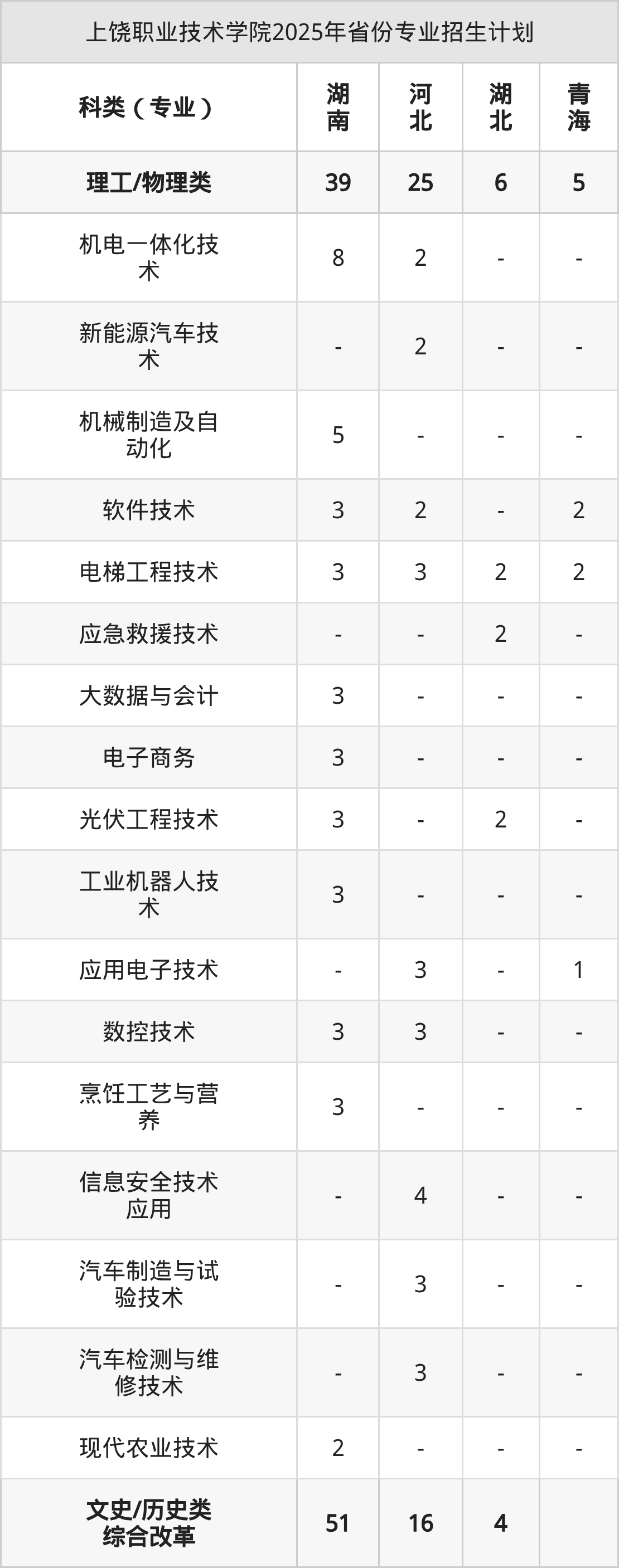 2026年上饶职业技术学院专科招生计划待公布,下面附上2025年数据,暂供参考:
