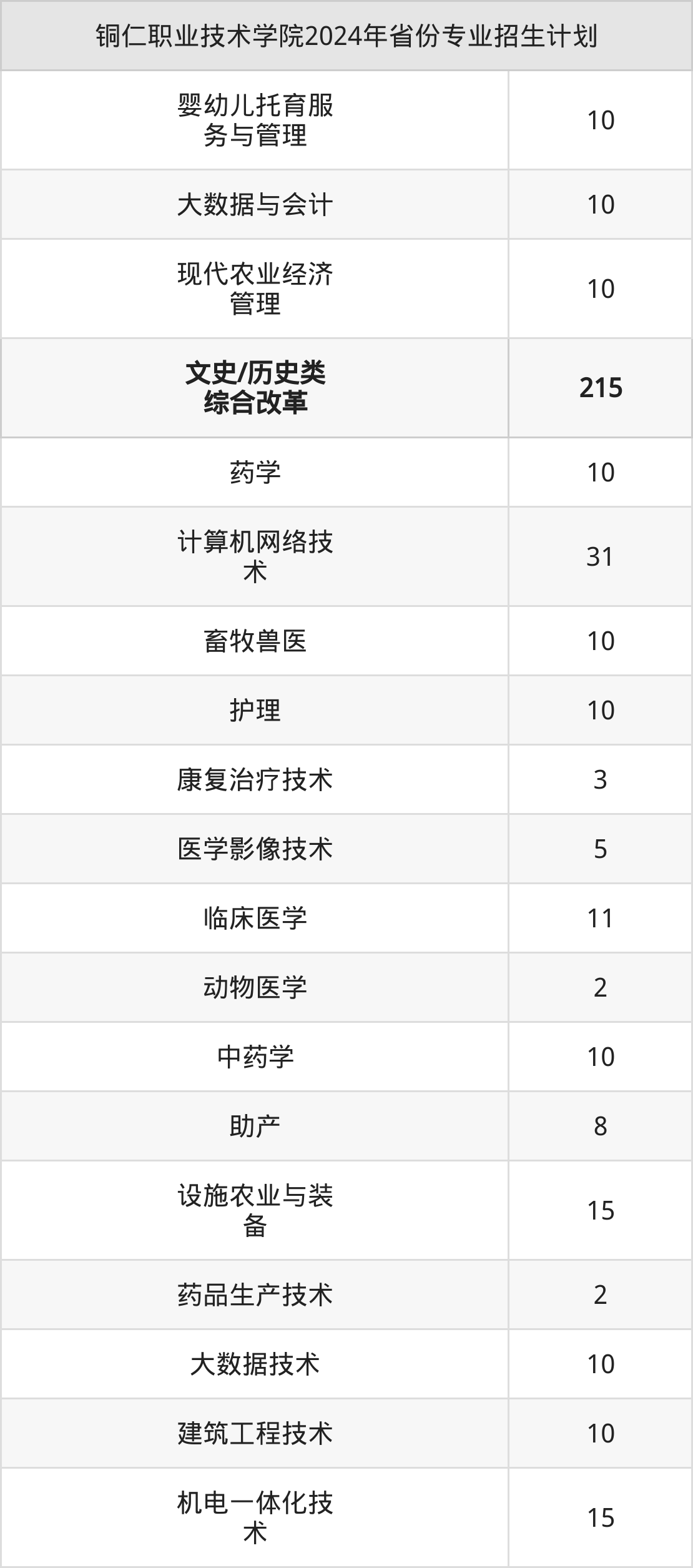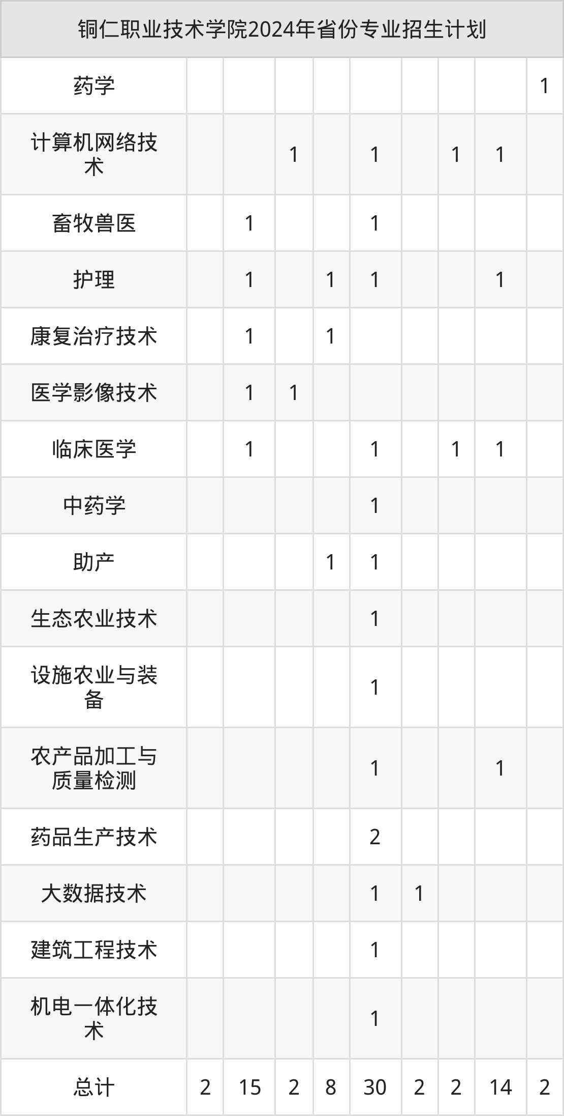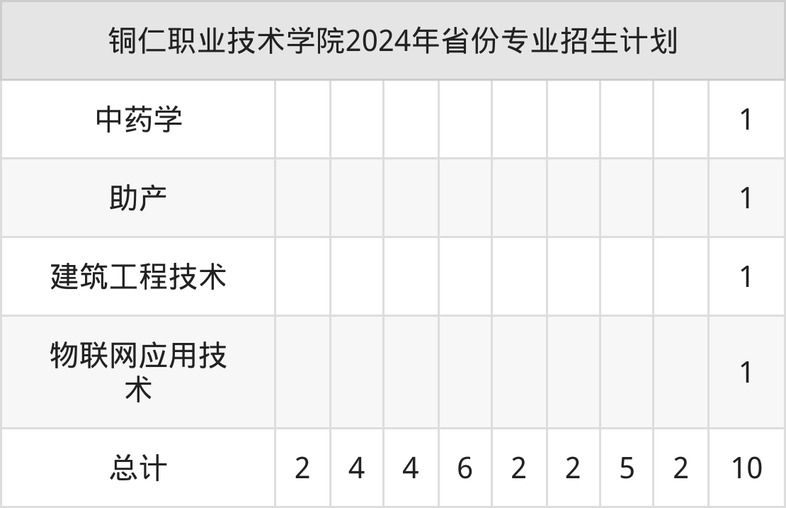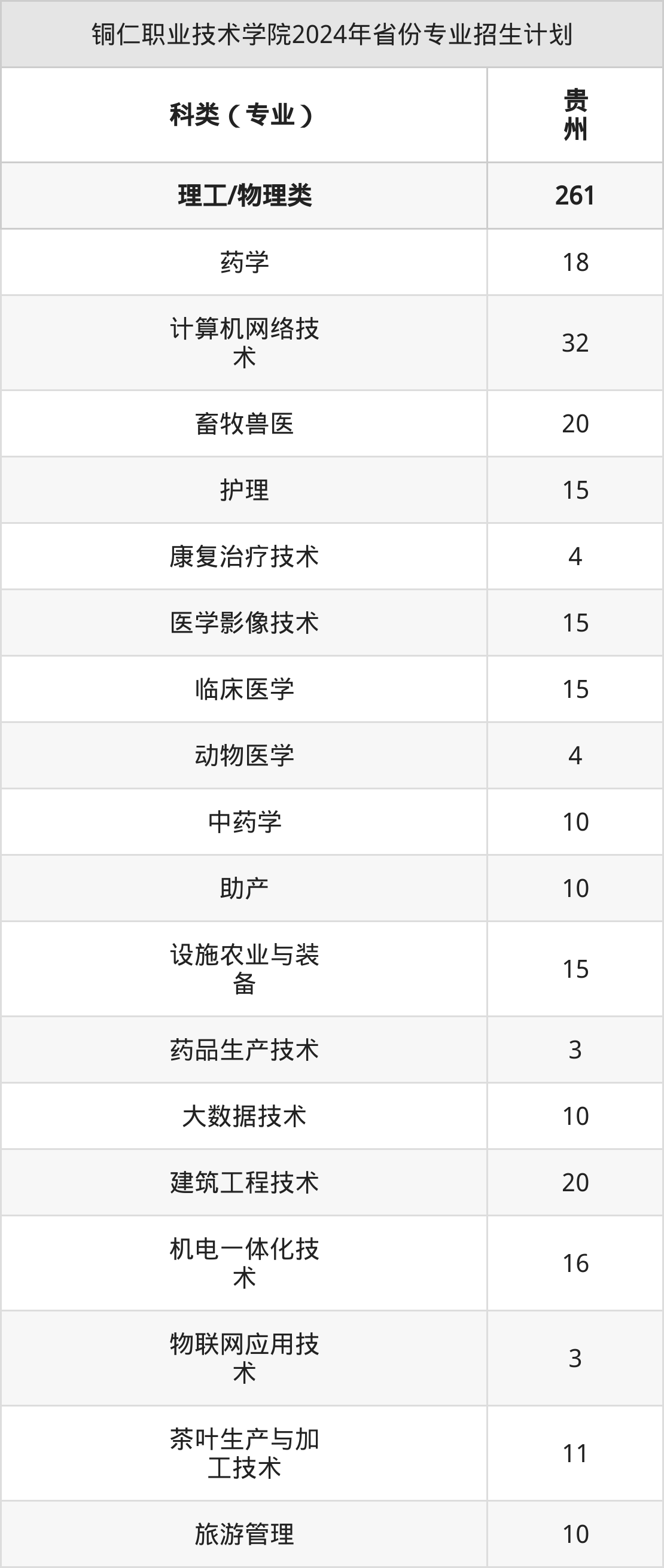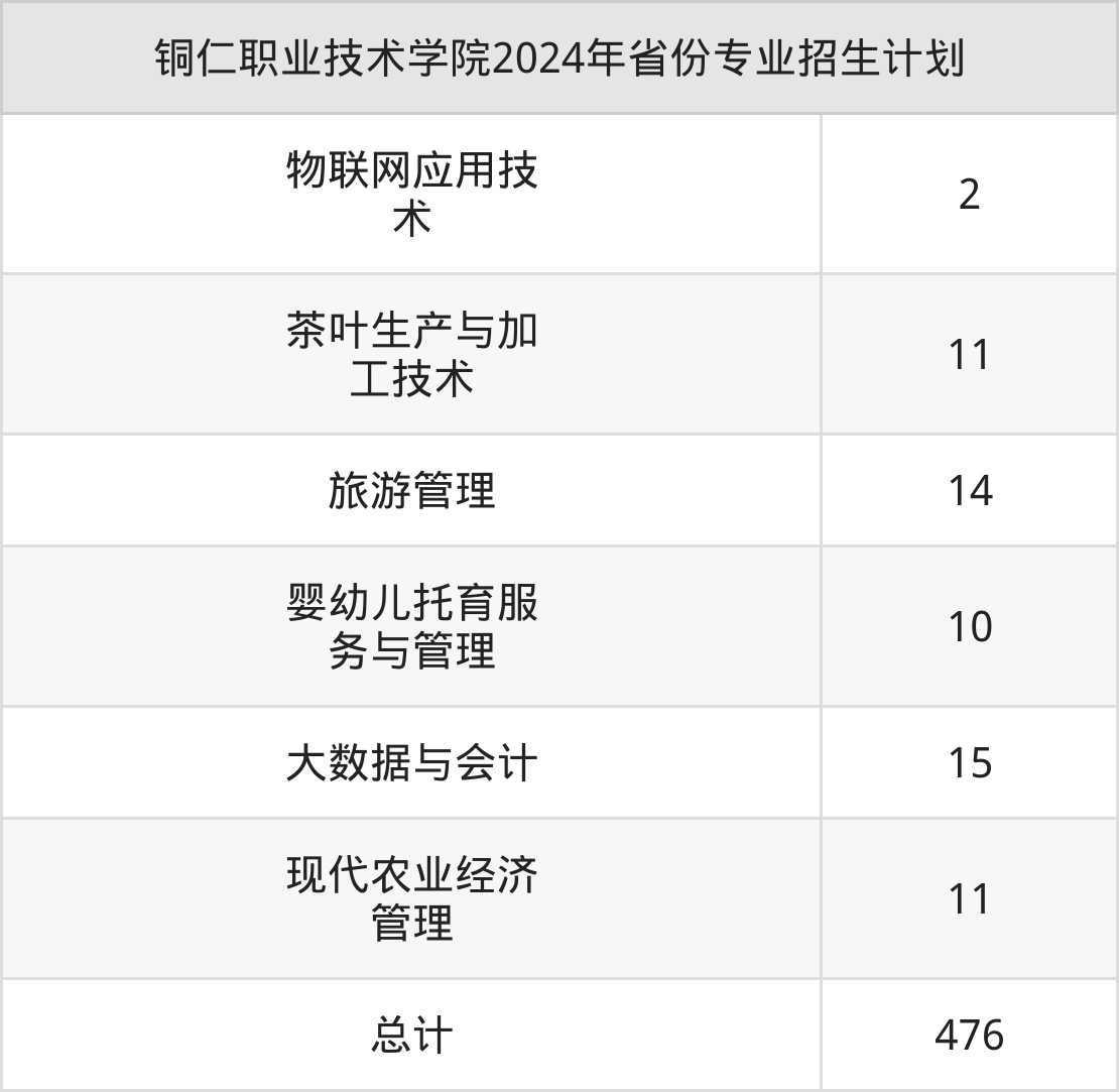 2025年铜仁职业技术学院专科招生计划待公布,下面附上2024年数据,暂供参考: