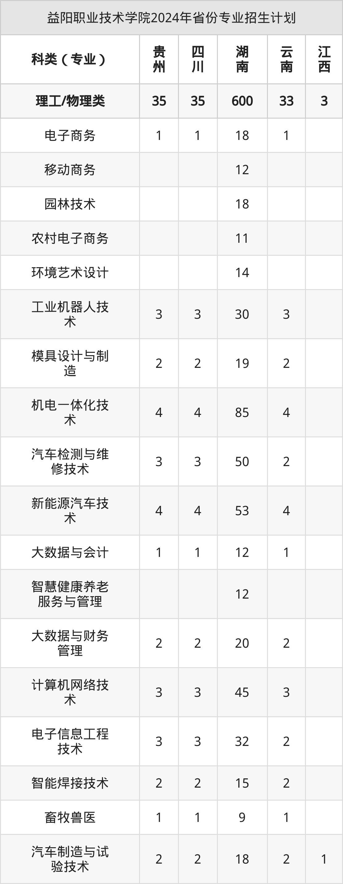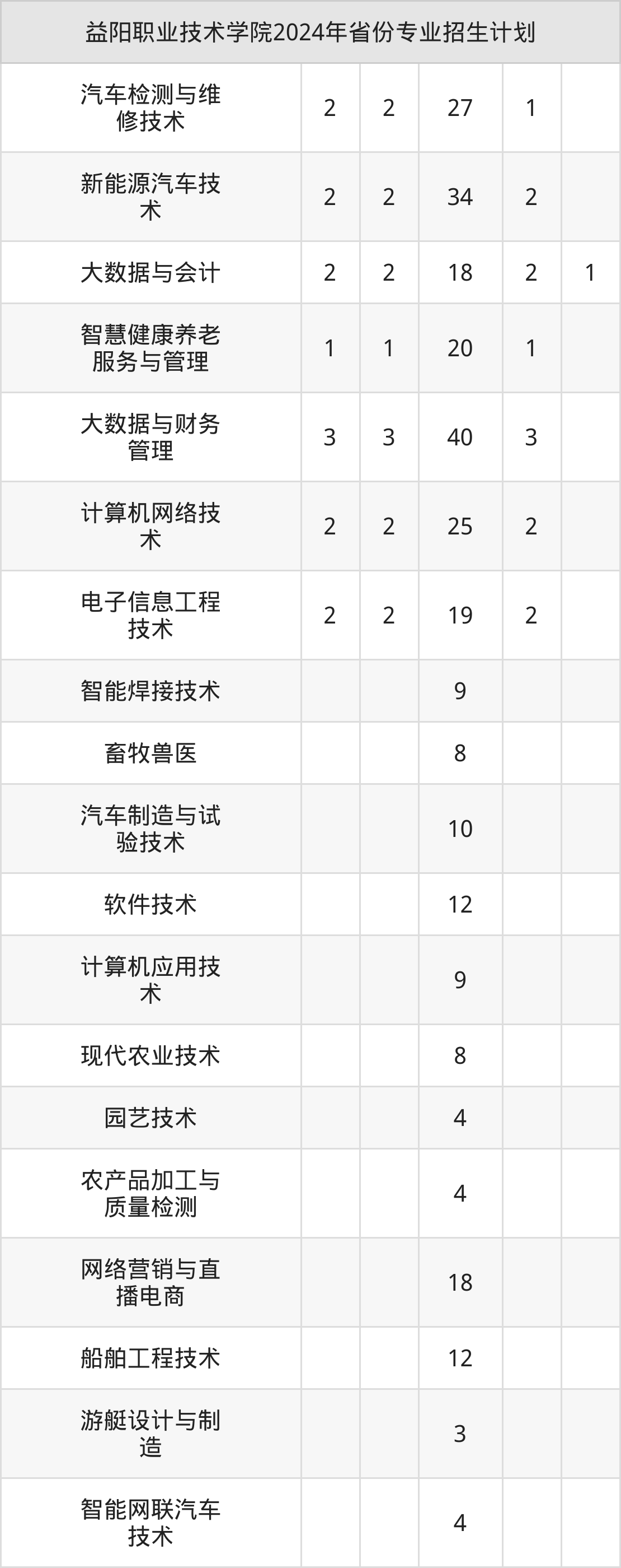 2025年益阳职业技术学院专科招生计划待公布,下面附上2024年数据,暂供参考: