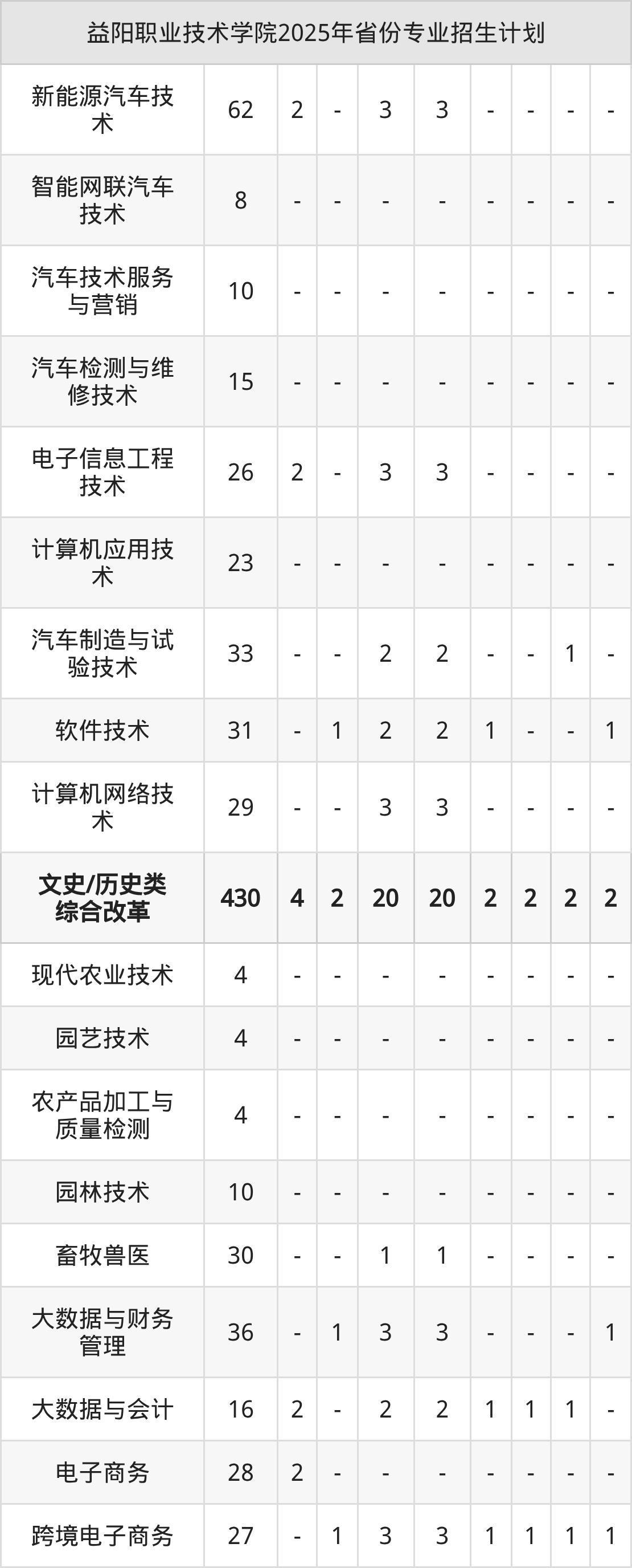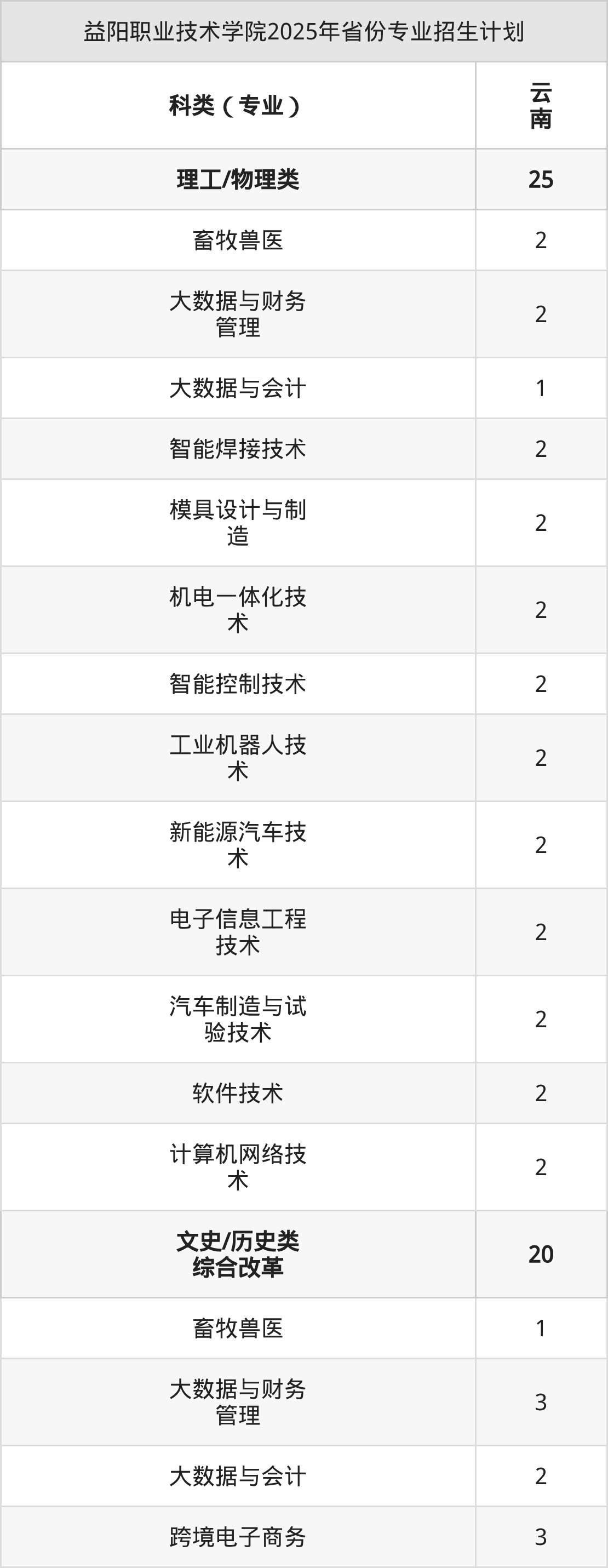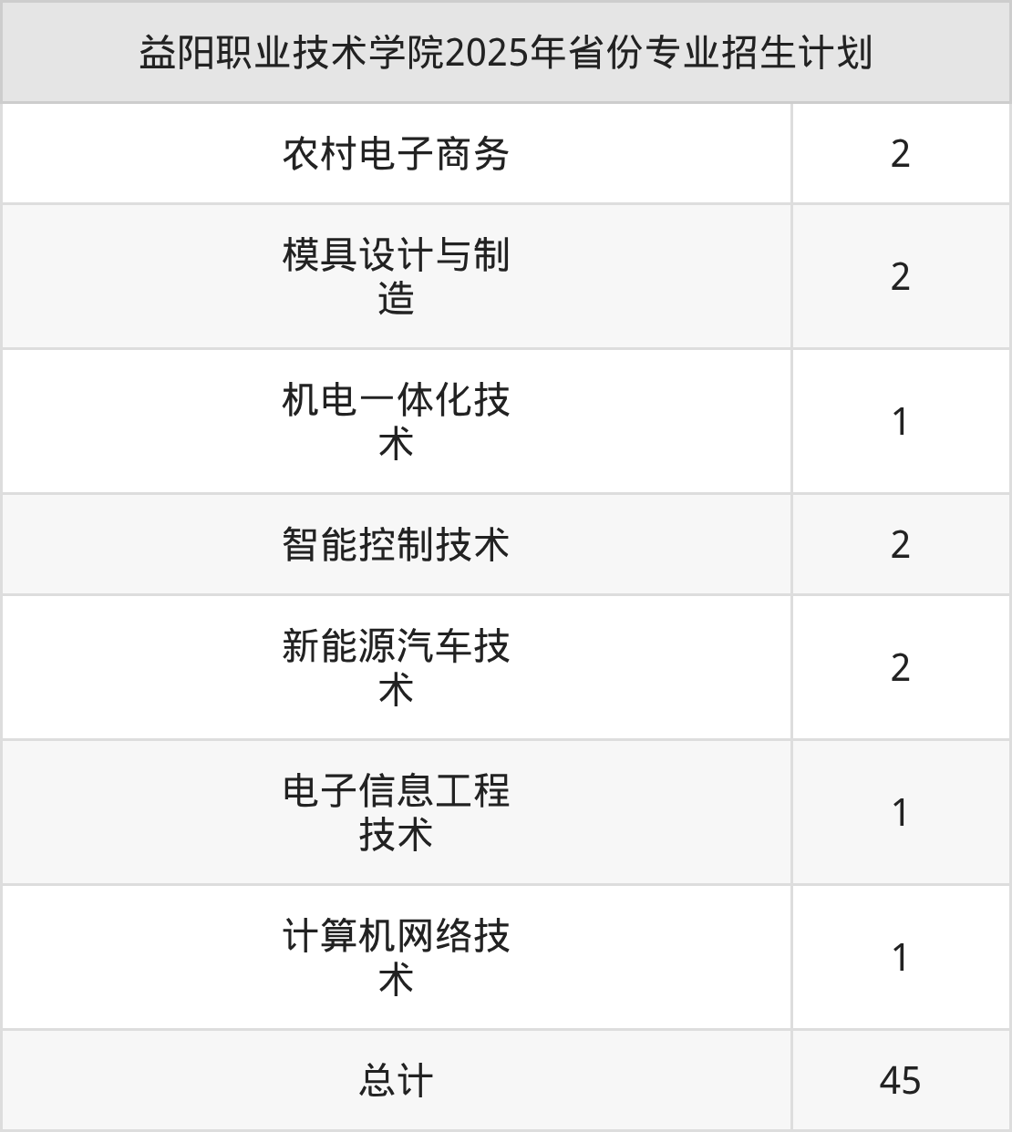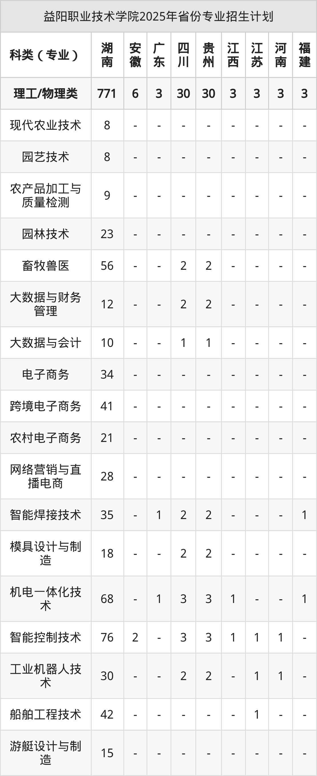 2026年益阳职业技术学院专科招生计划待公布,下面附上2025年数据,暂供参考: