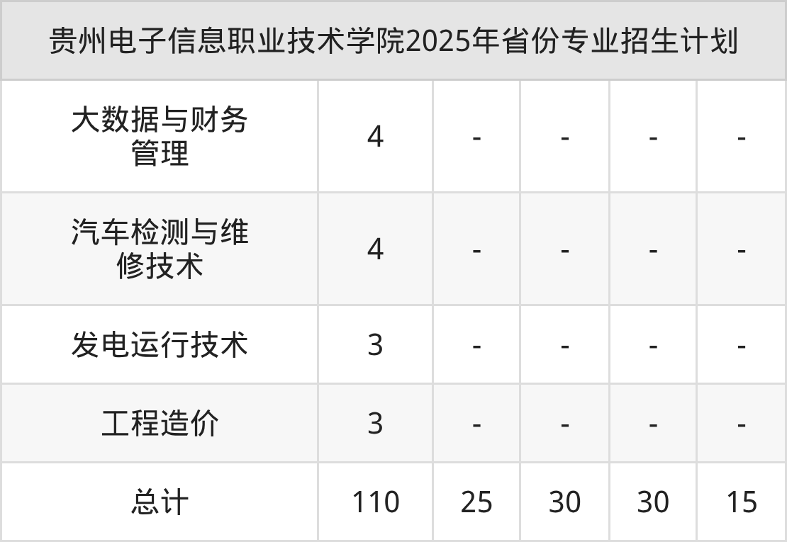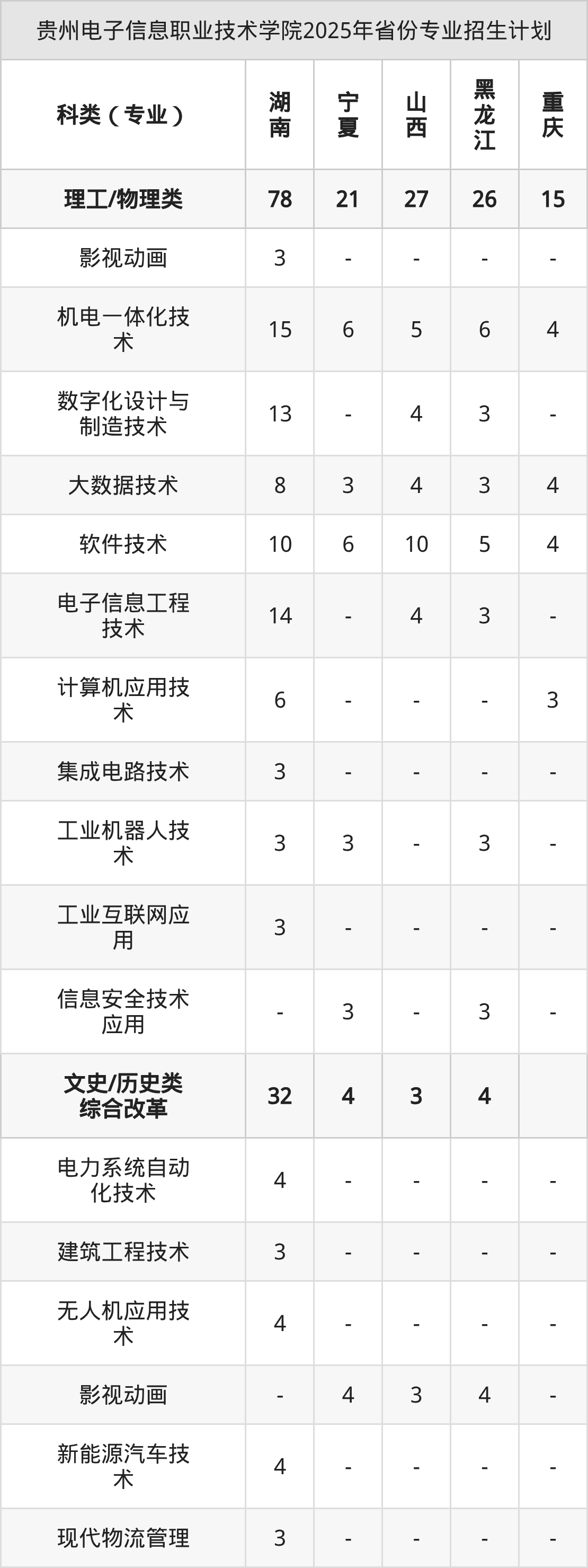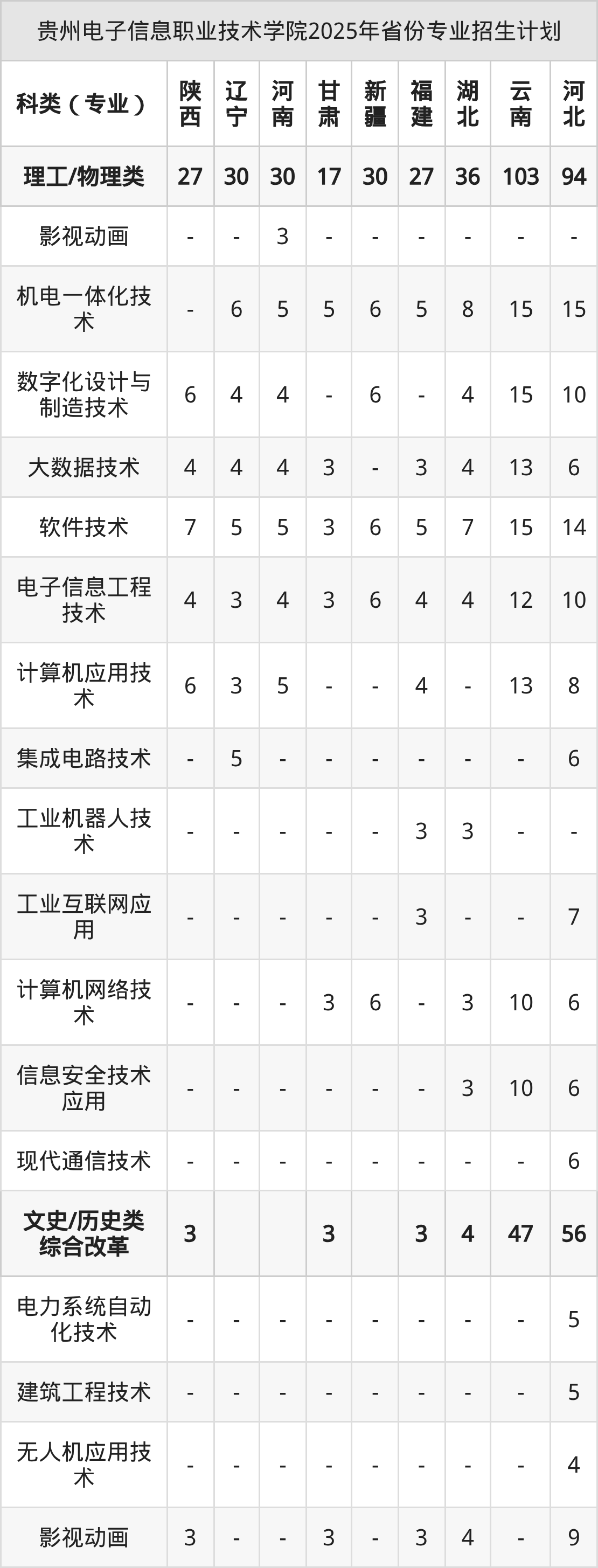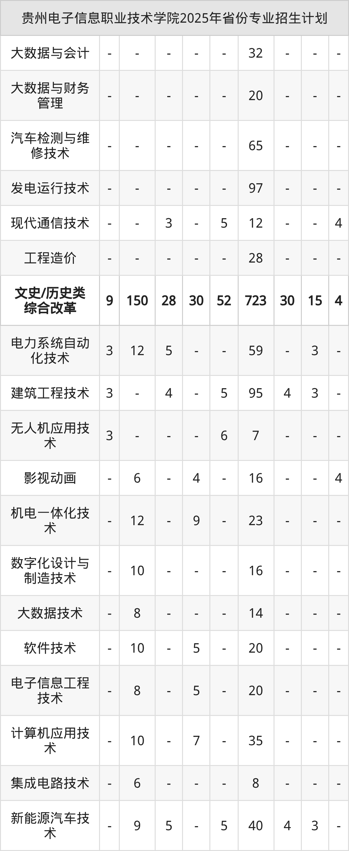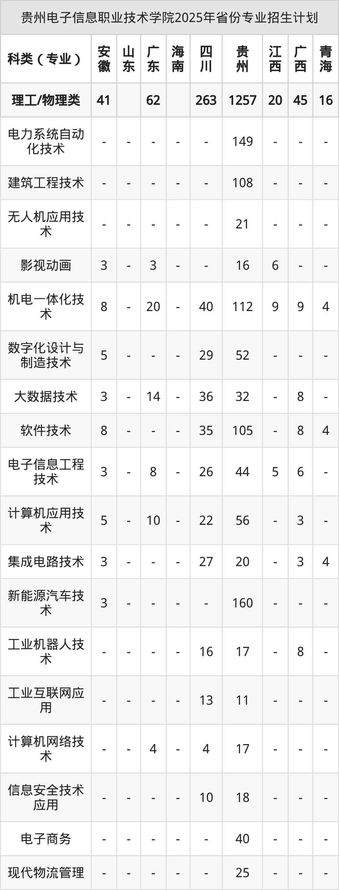 2026年贵州电子信息职业技术学院专科招生计划待公布,下面附上2025年数据,暂供参考: