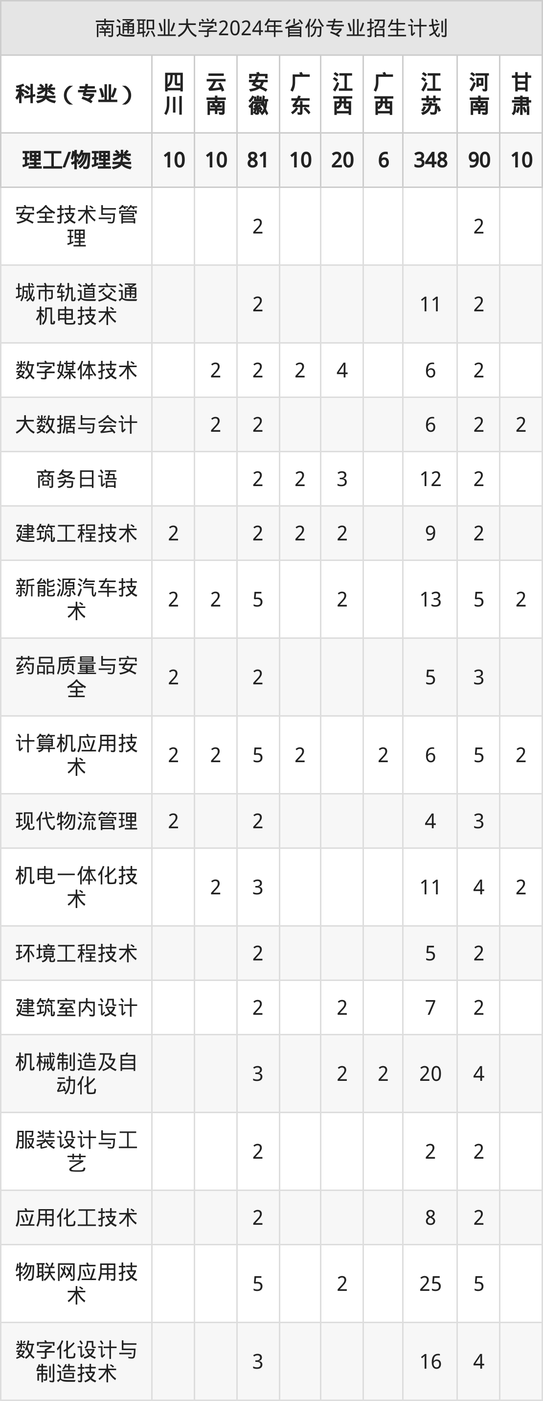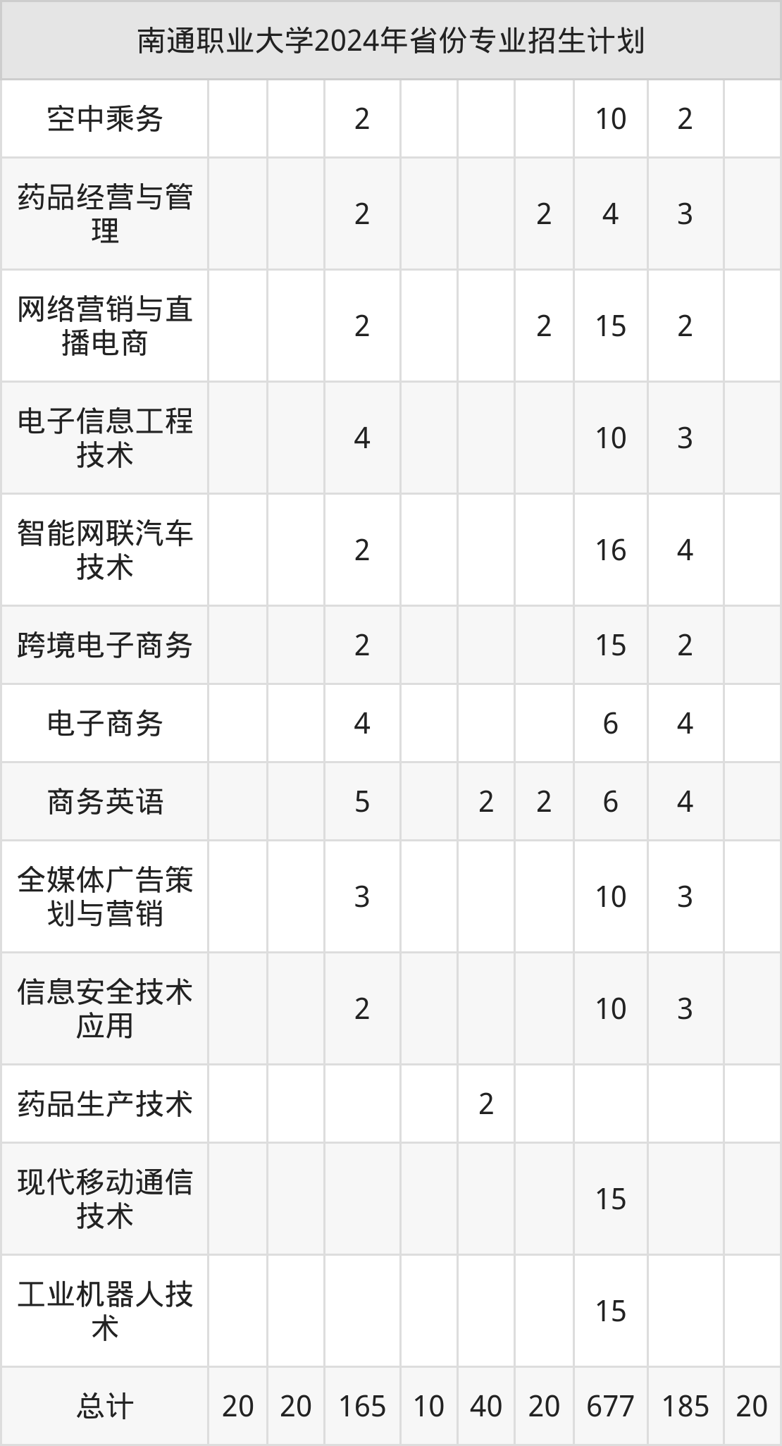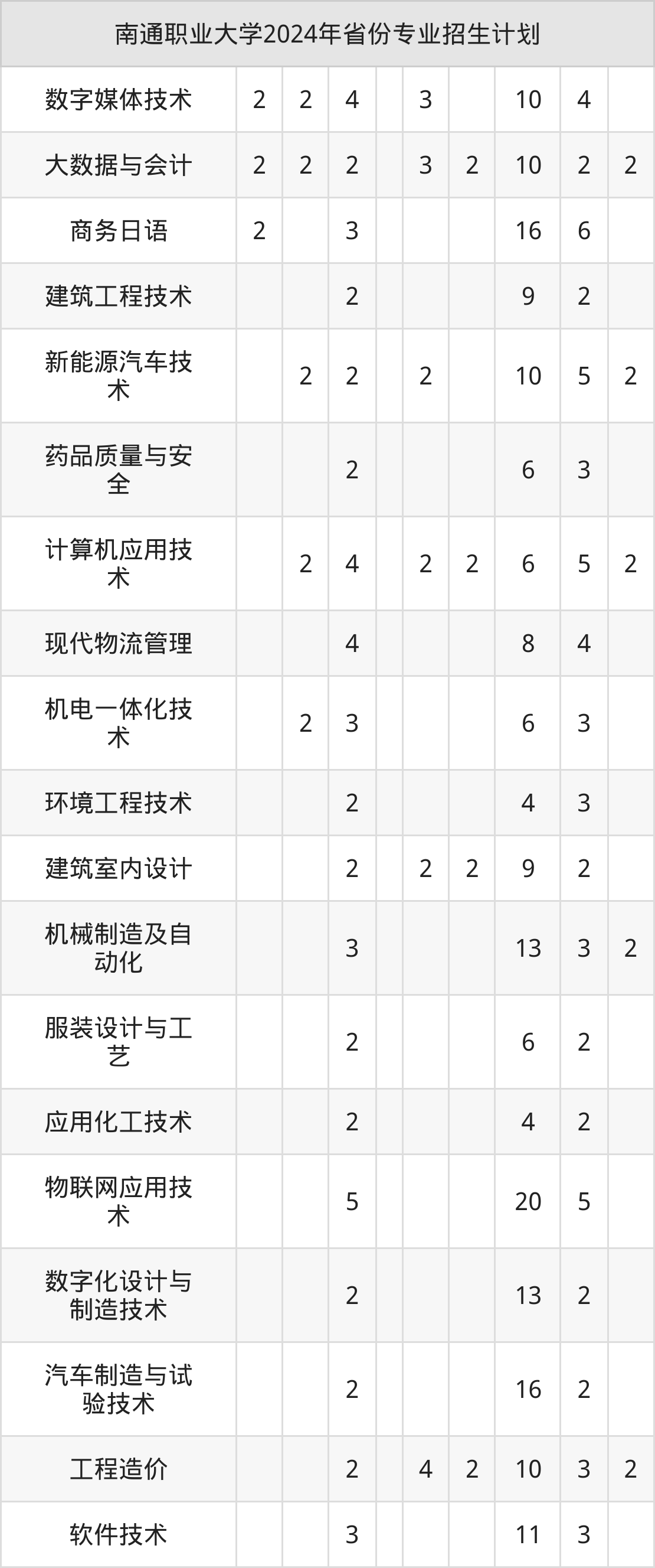 2025年南通职业大学专科招生计划待公布,下面附上2024年数据,暂供参考: