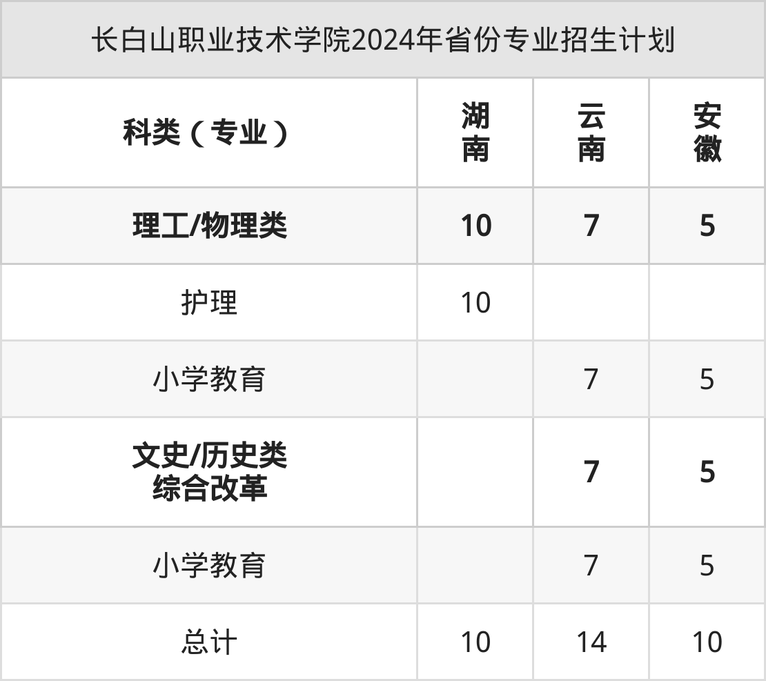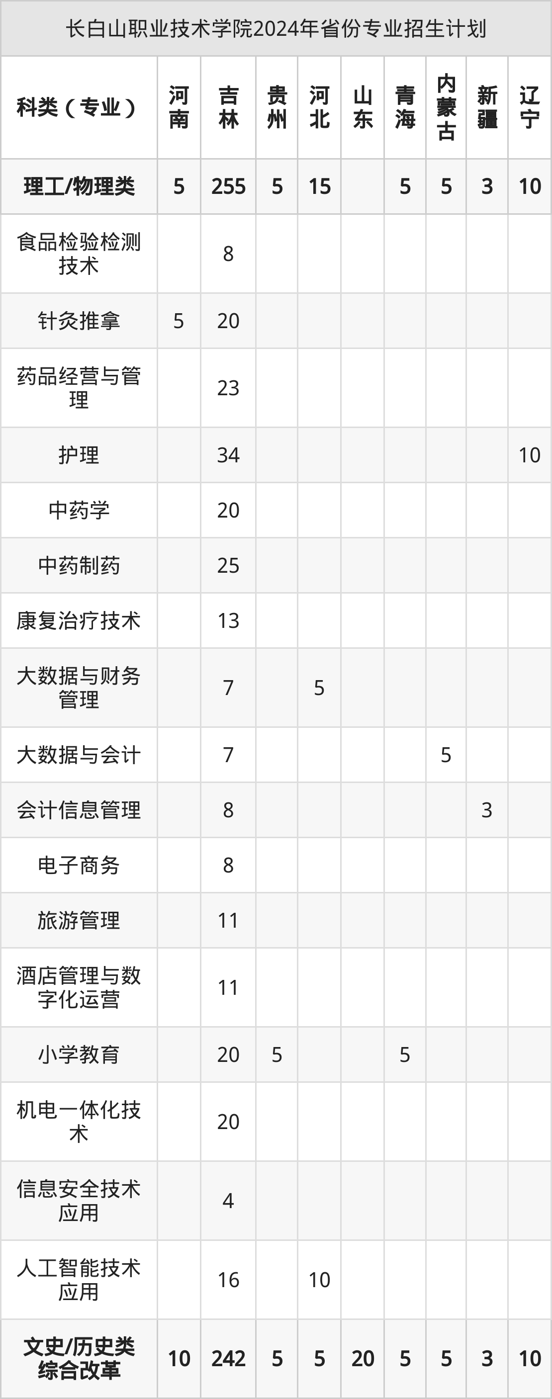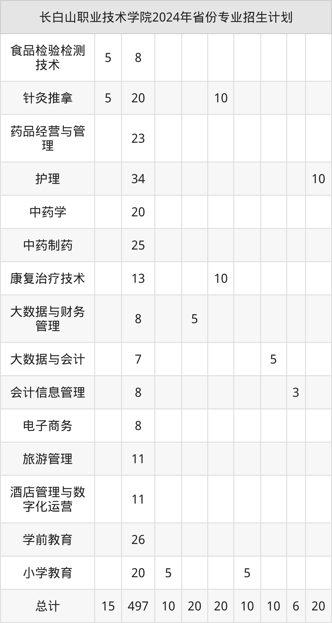2025年长白山职业技术学院专科招生计划待公布,下面附上2024年数据,暂供参考: