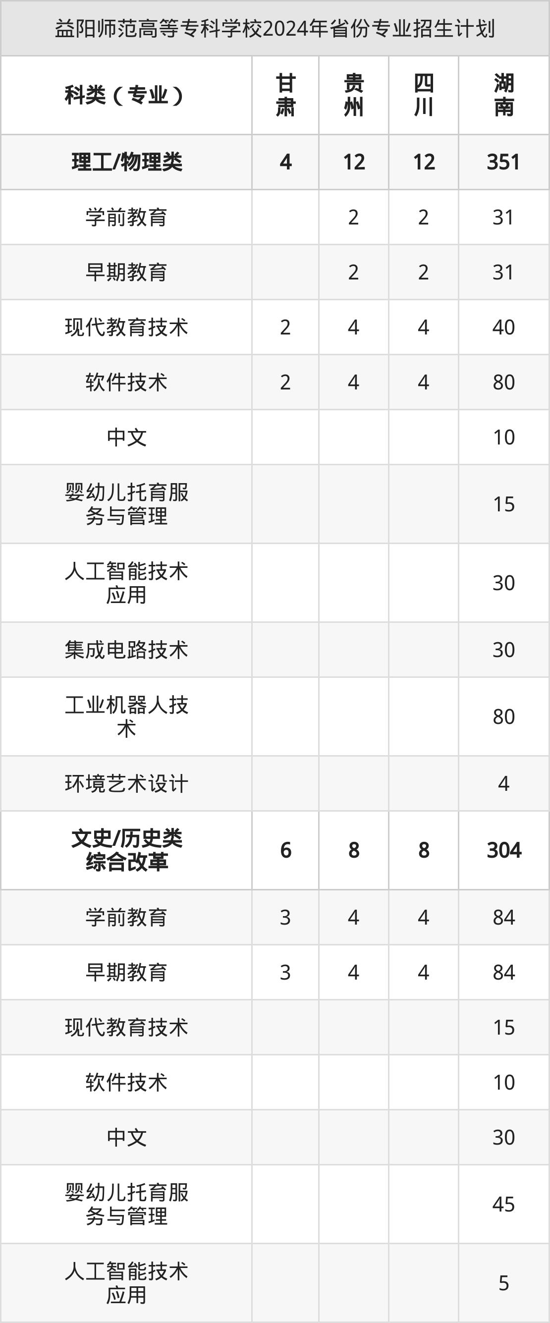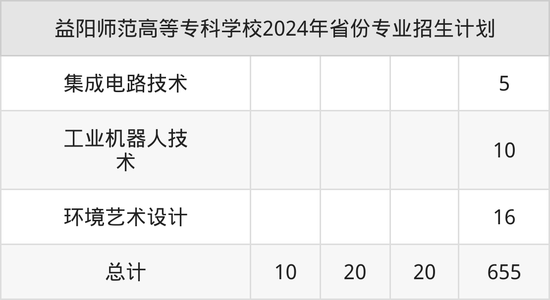 2025年益阳师范高等专科学校专科招生计划待公布,下面附上2024年数据,暂供参考: