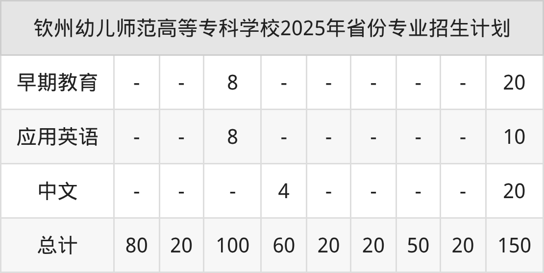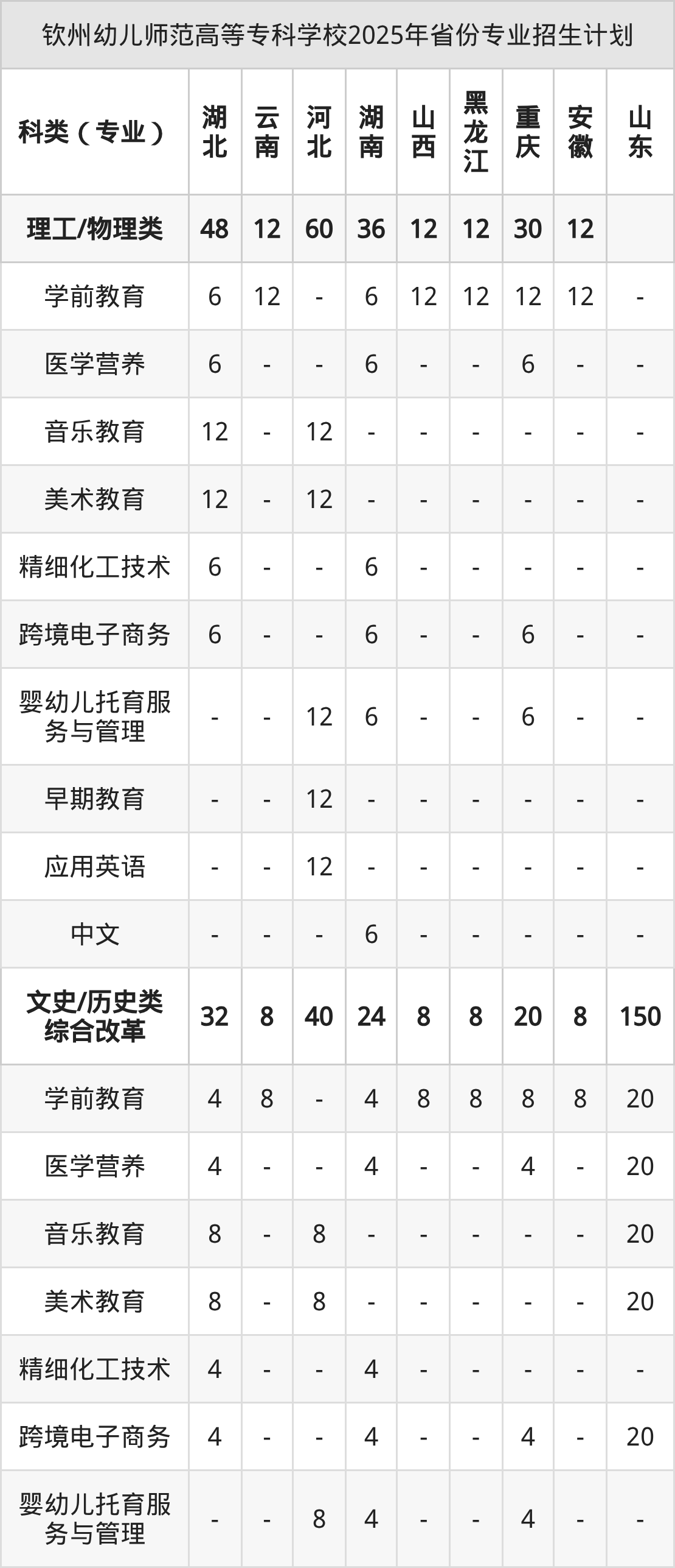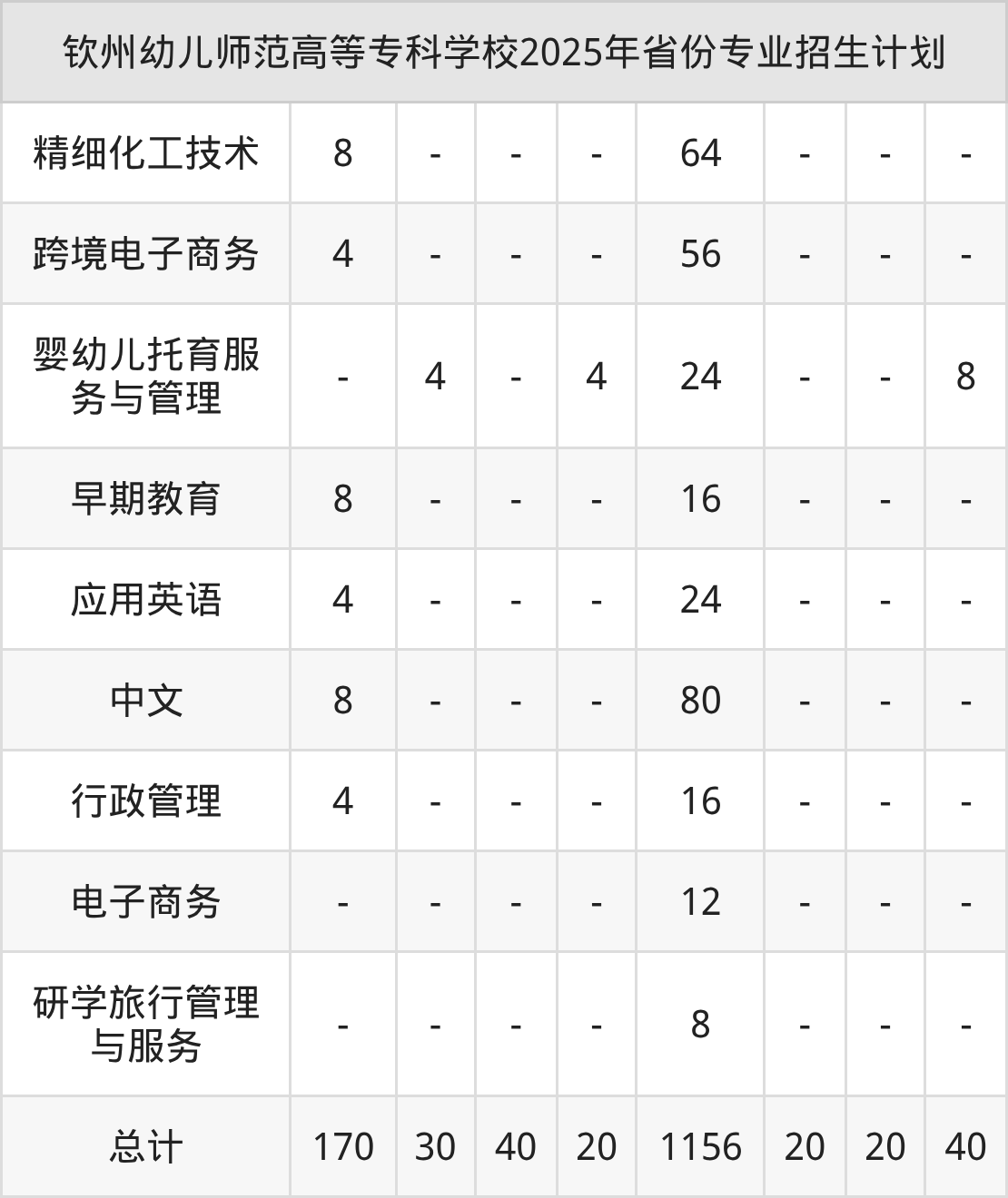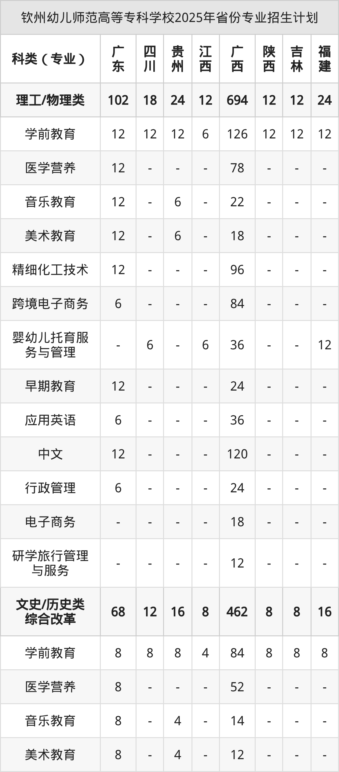 2026年钦州幼儿师范高等专科学校专科招生计划待公布,下面附上2025年数据,暂供参考: