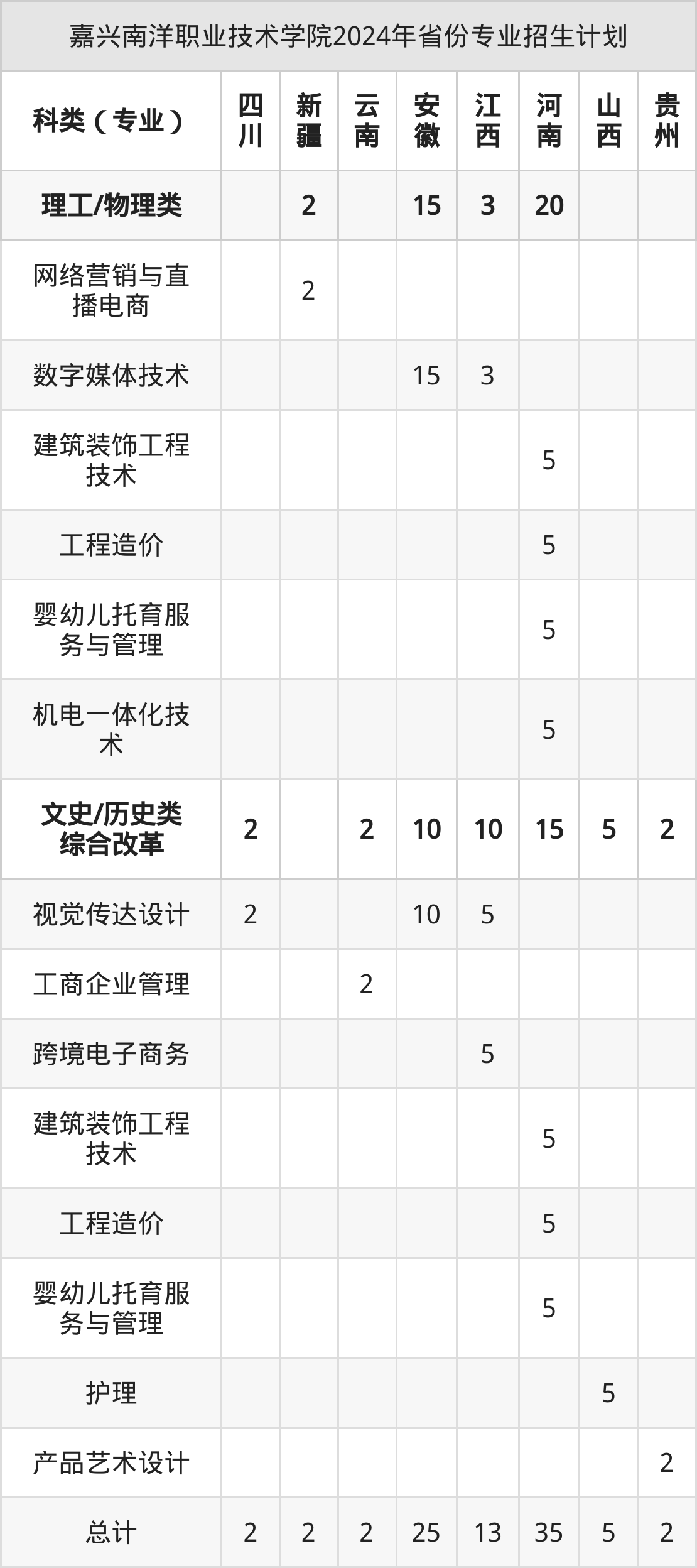 2025年嘉兴南洋职业技术学院专科招生计划待公布,下面附上2024年数据,暂供参考:
