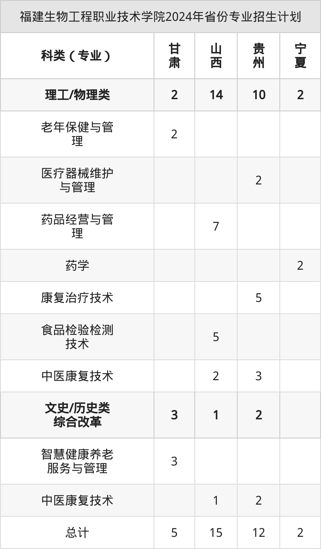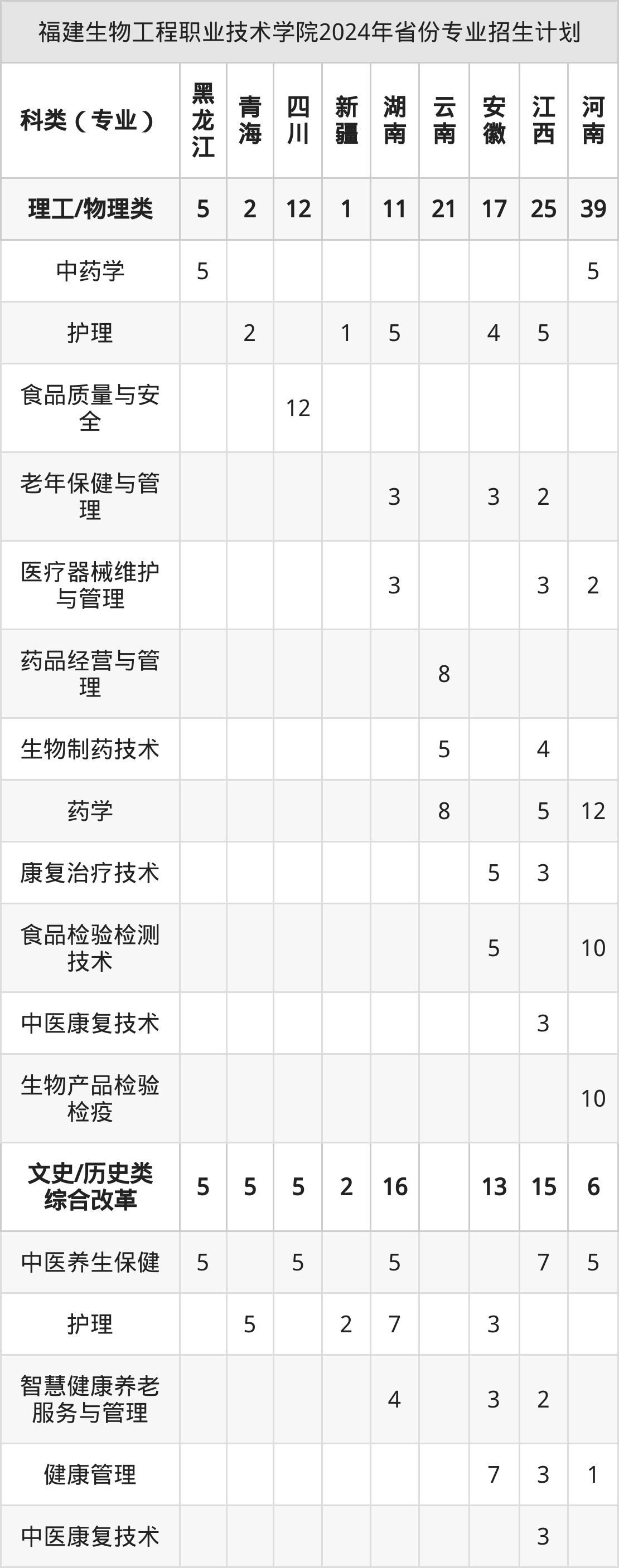 2025年福建生物工程职业技术学院专科招生计划待公布,下面附上2024年数据,暂供参考: