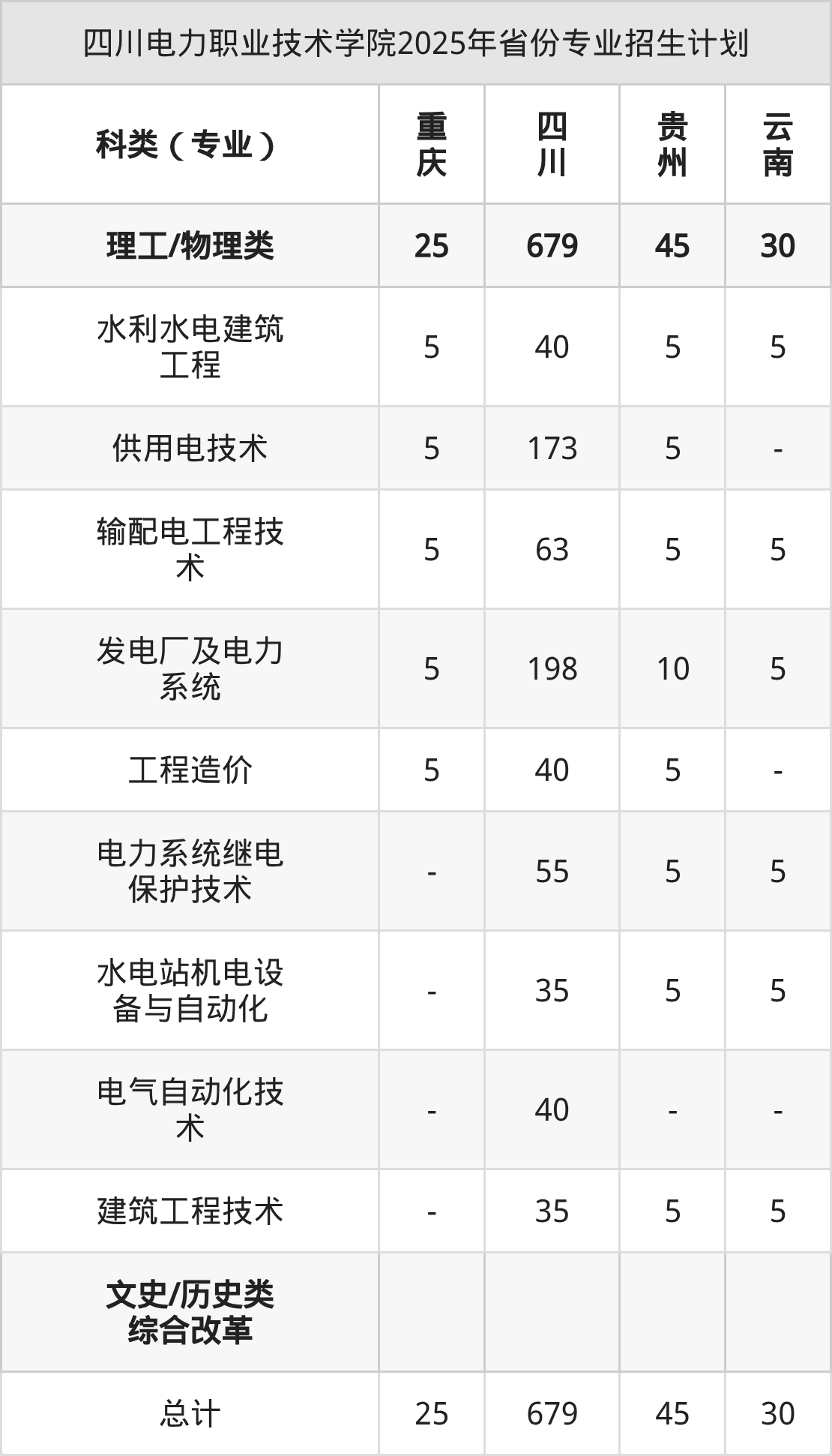 2026年四川电力职业技术学院专科招生计划待公布,下面附上2025年数据,暂供参考: