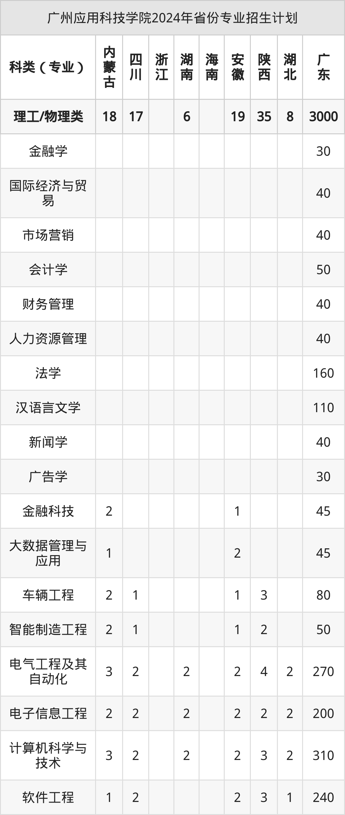 2025年广州应用科技学院本科招生计划待公布,下面附上2024年数据,暂供参考: