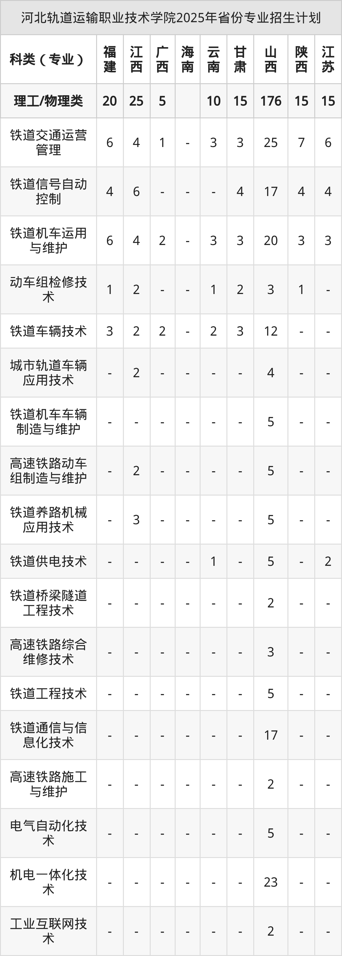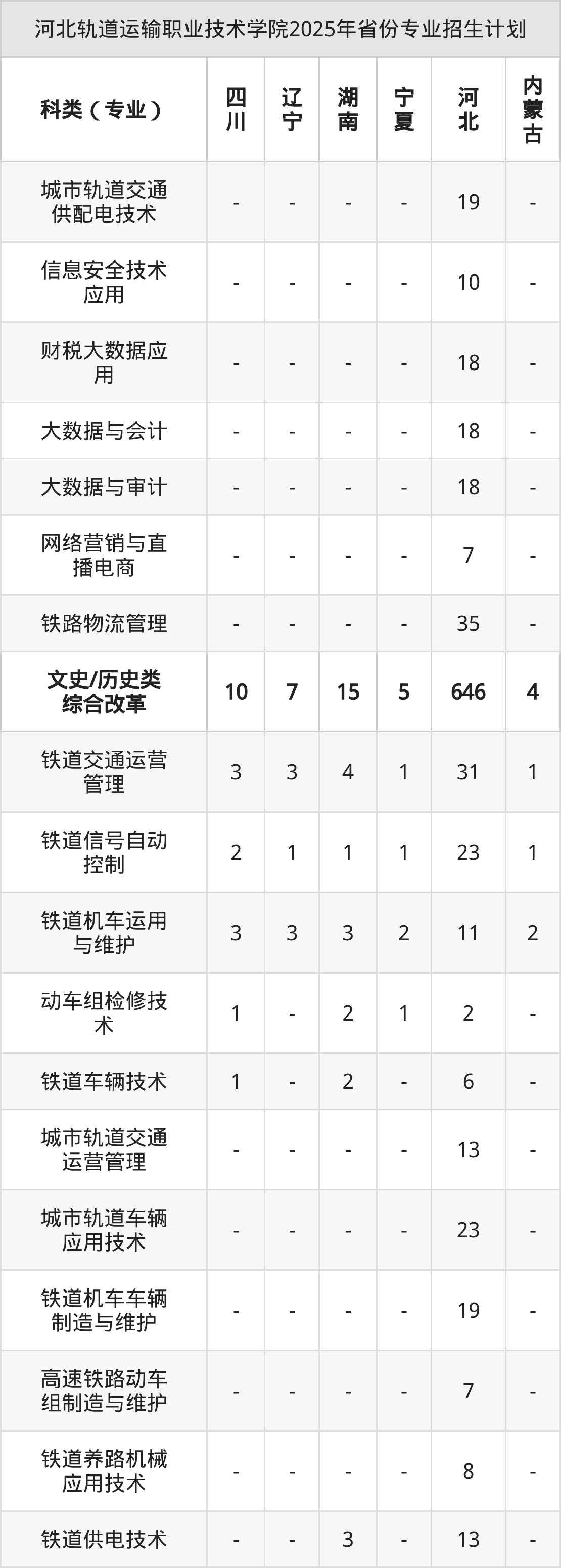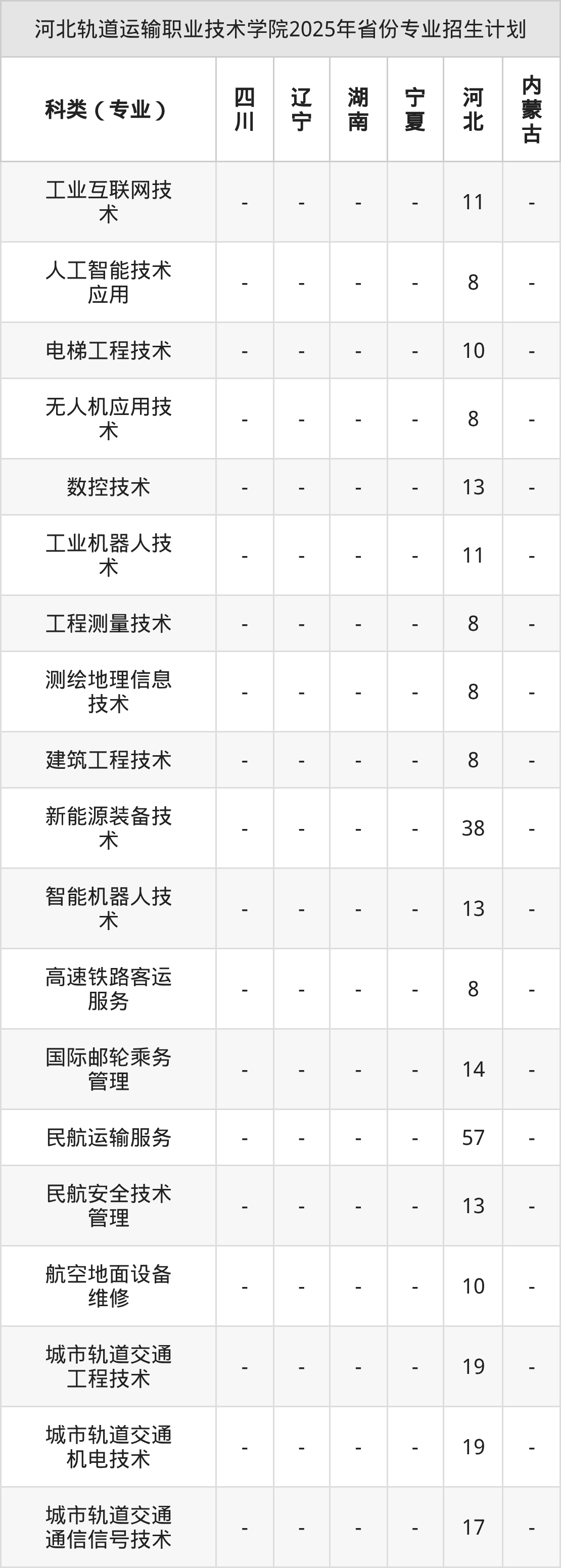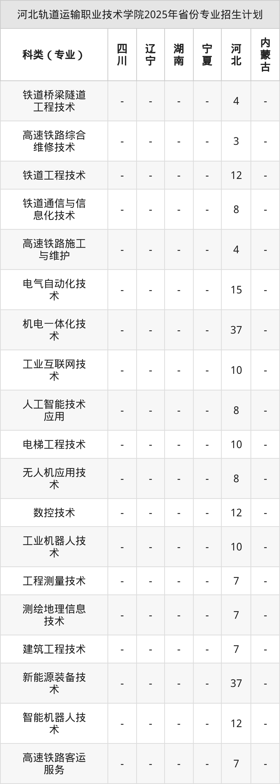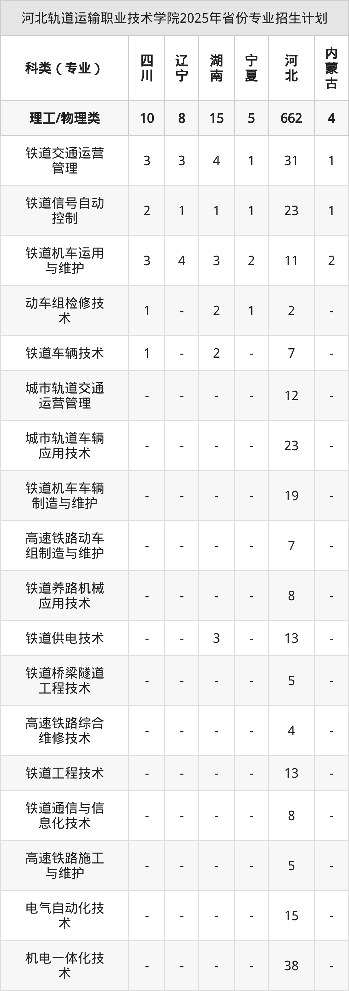 2026年河北轨道运输职业技术学院专科招生计划待公布,下面附上2025年数据,暂供参考: