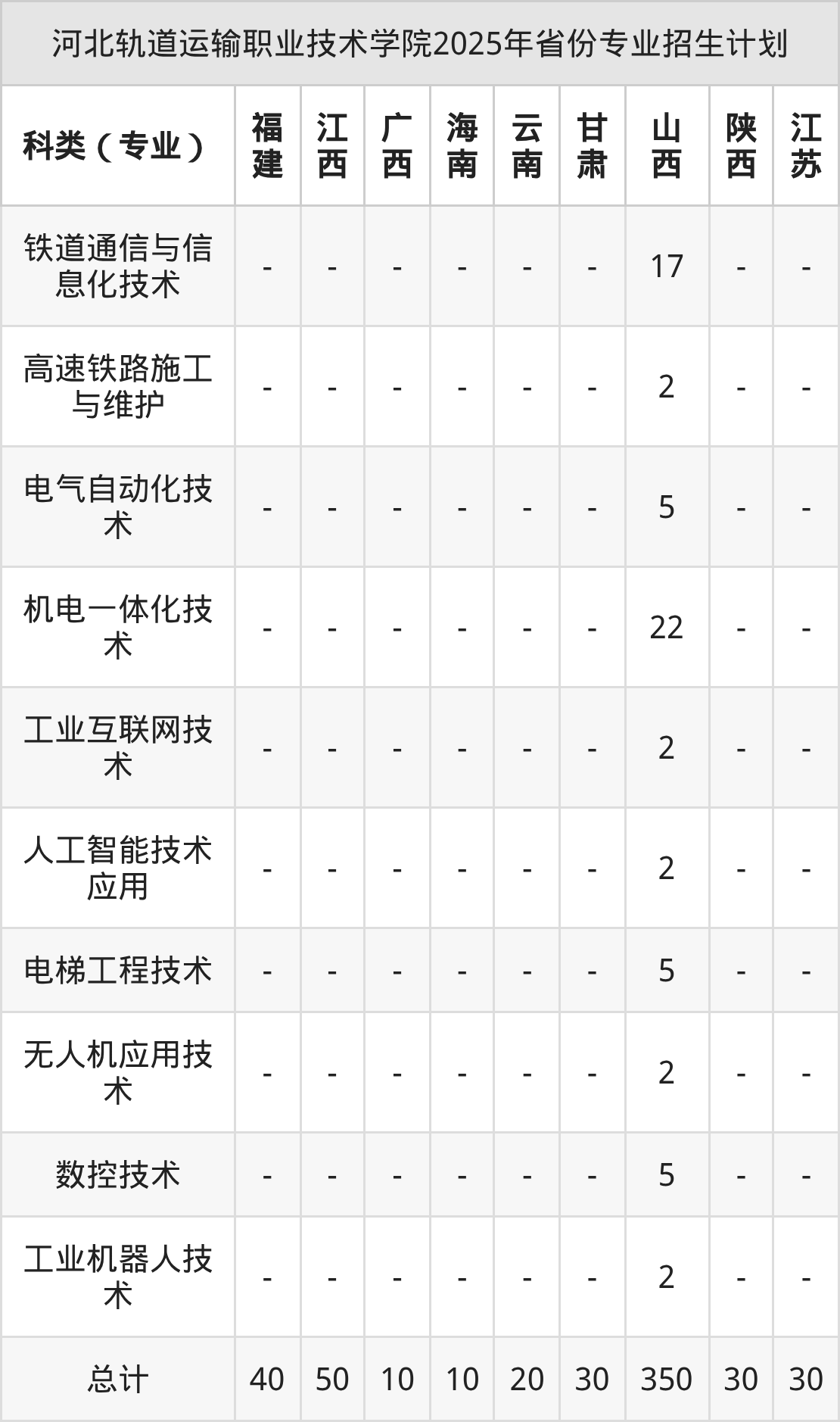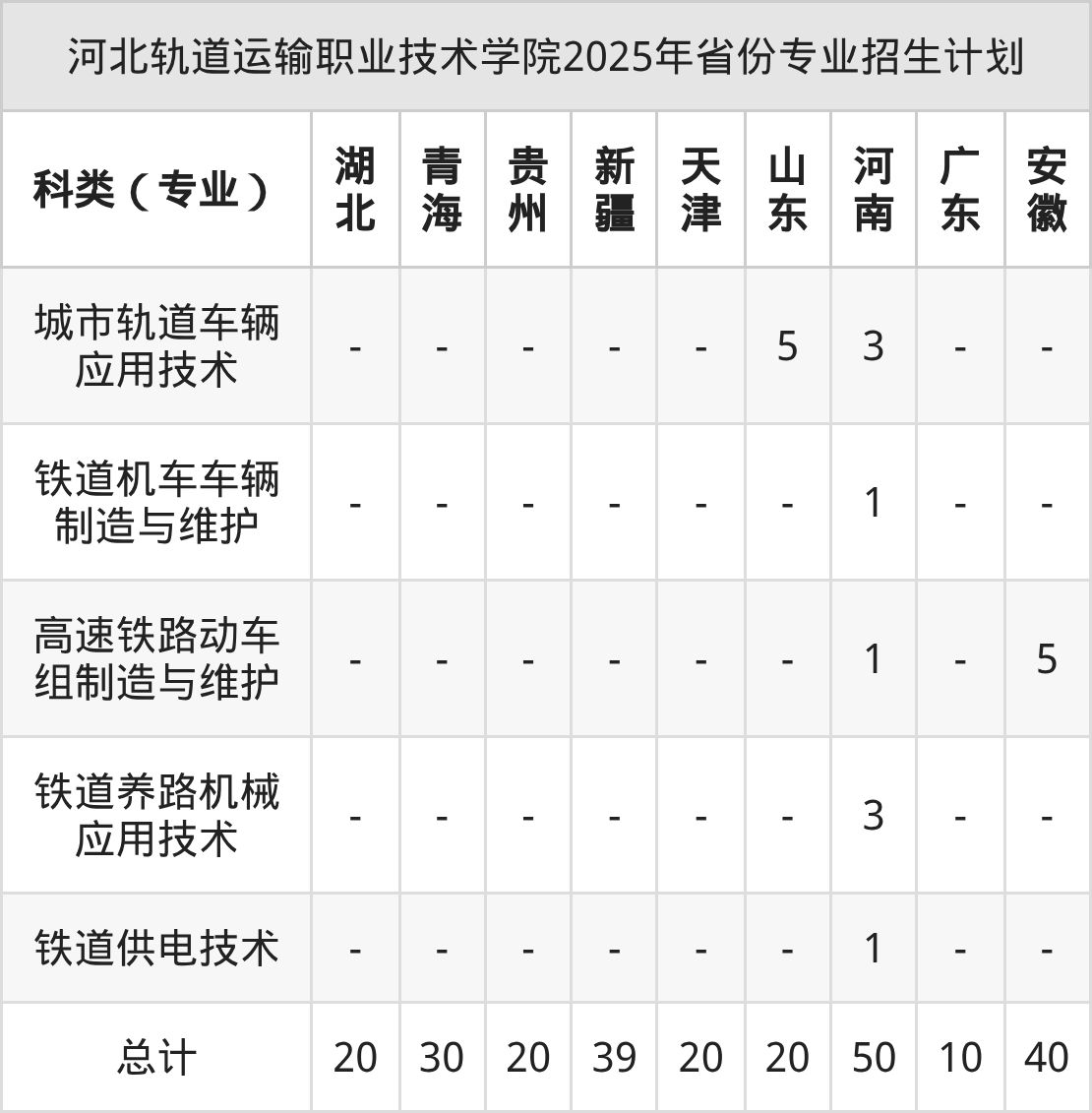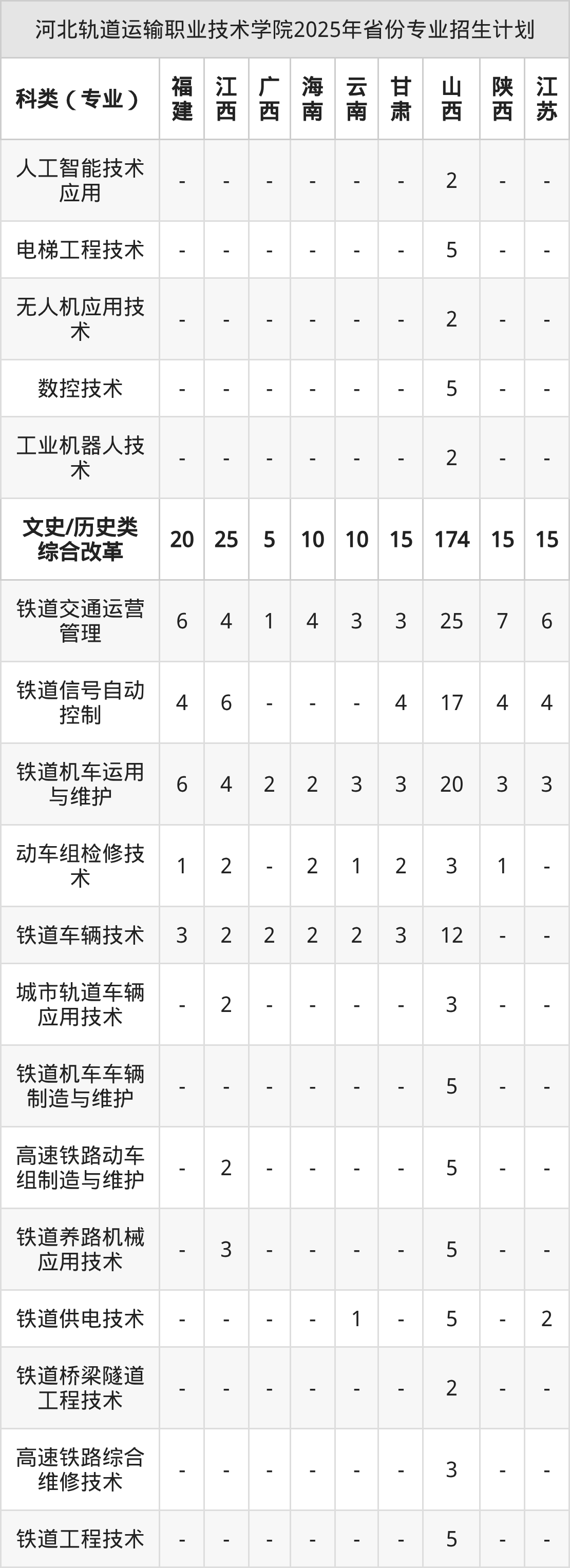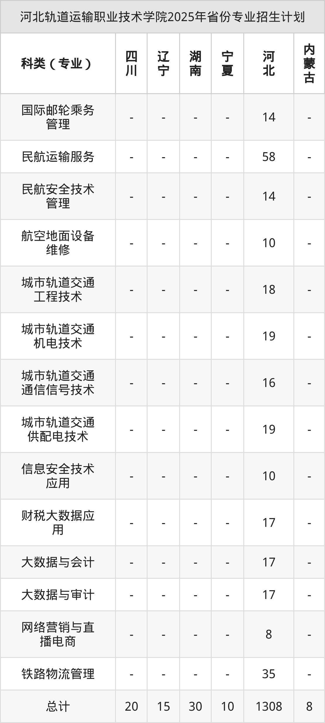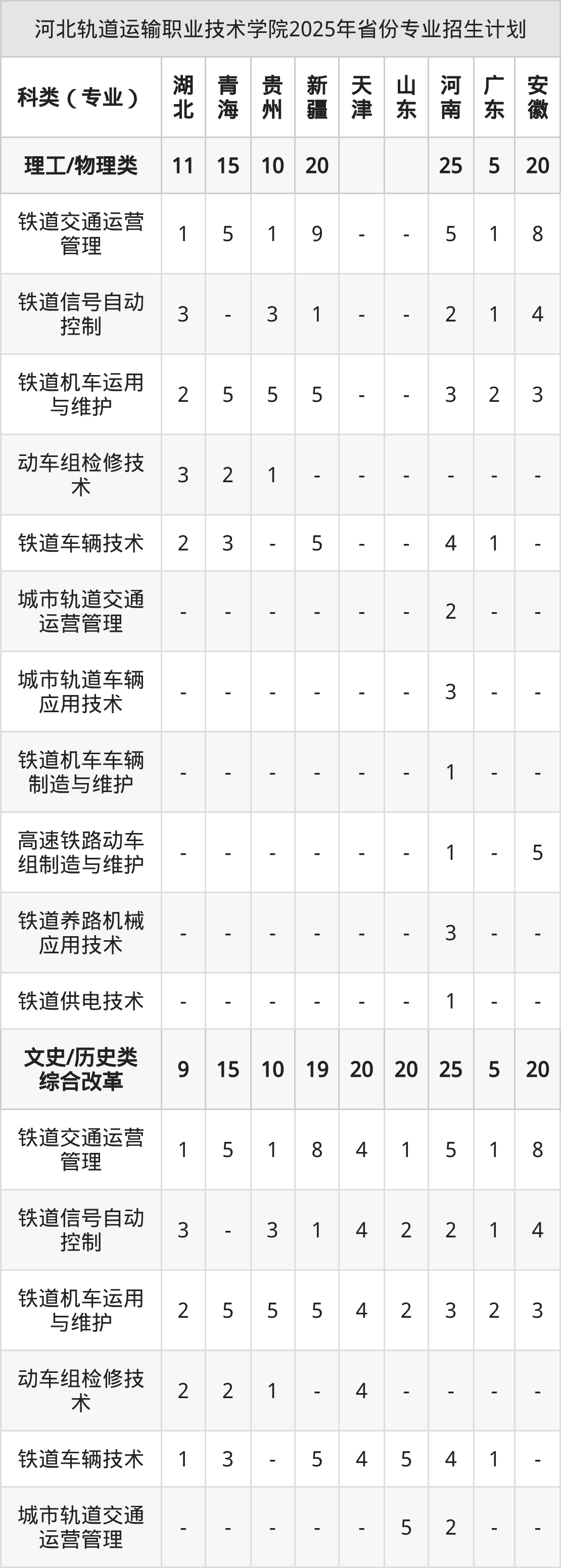 2026年河北轨道运输职业技术学院专科招生计划待公布,下面附上2025年数据,暂供参考: