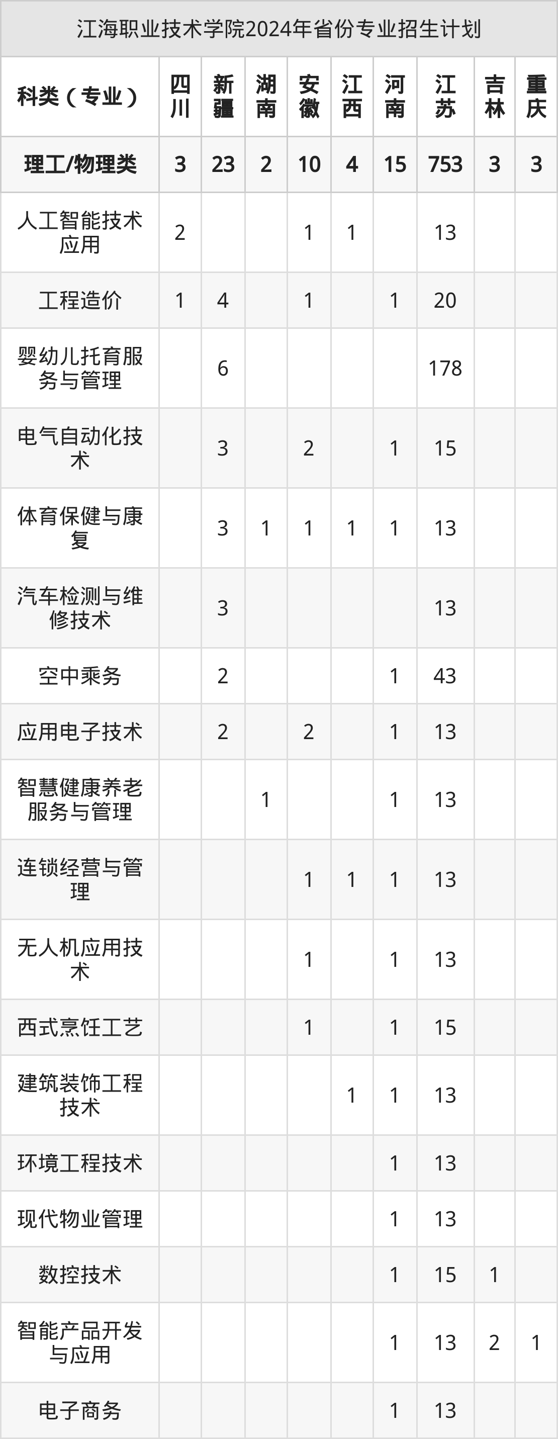 2025年江海职业技术学院专科招生计划待公布,下面附上2024年数据,暂供参考: