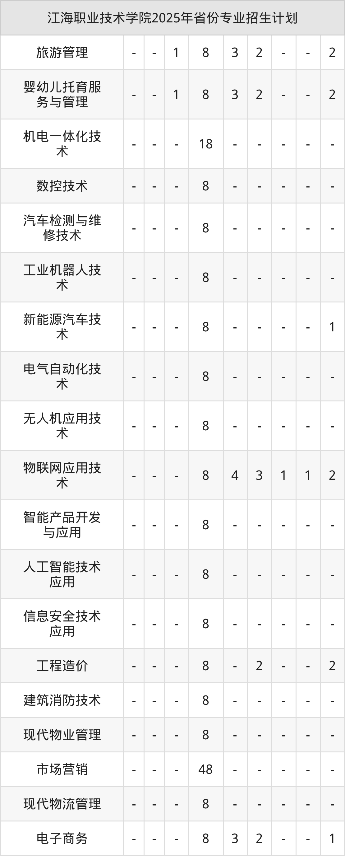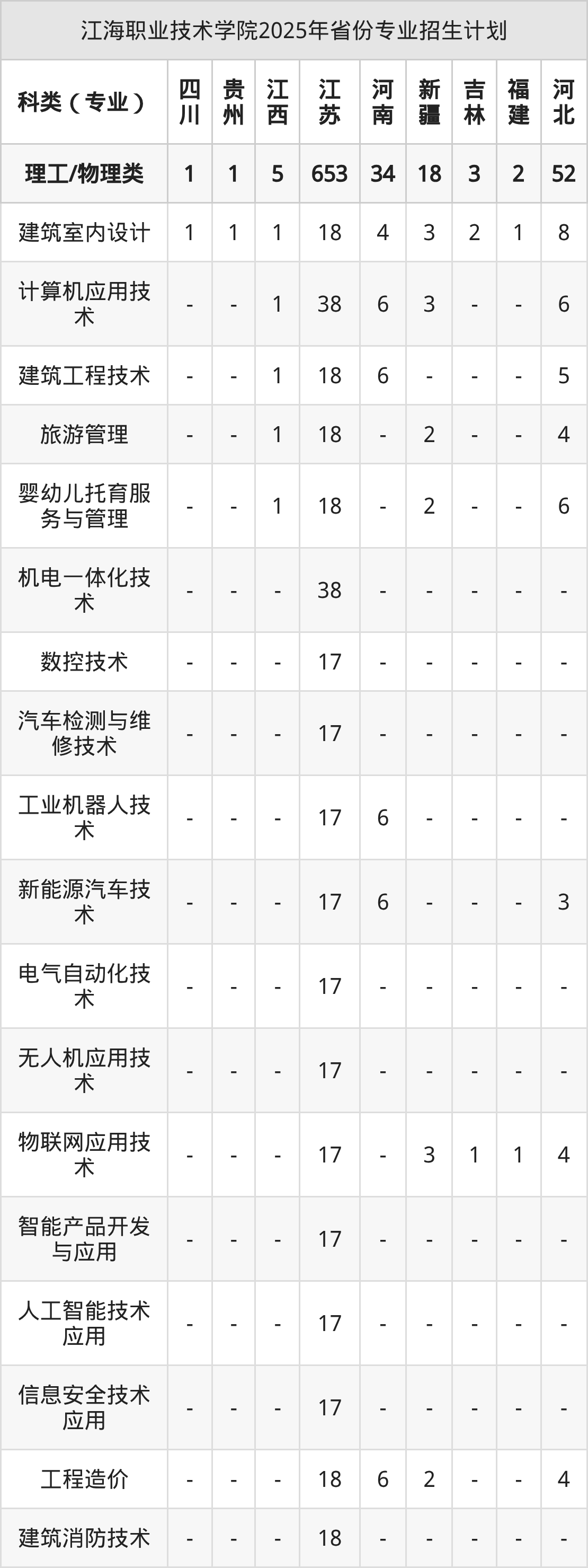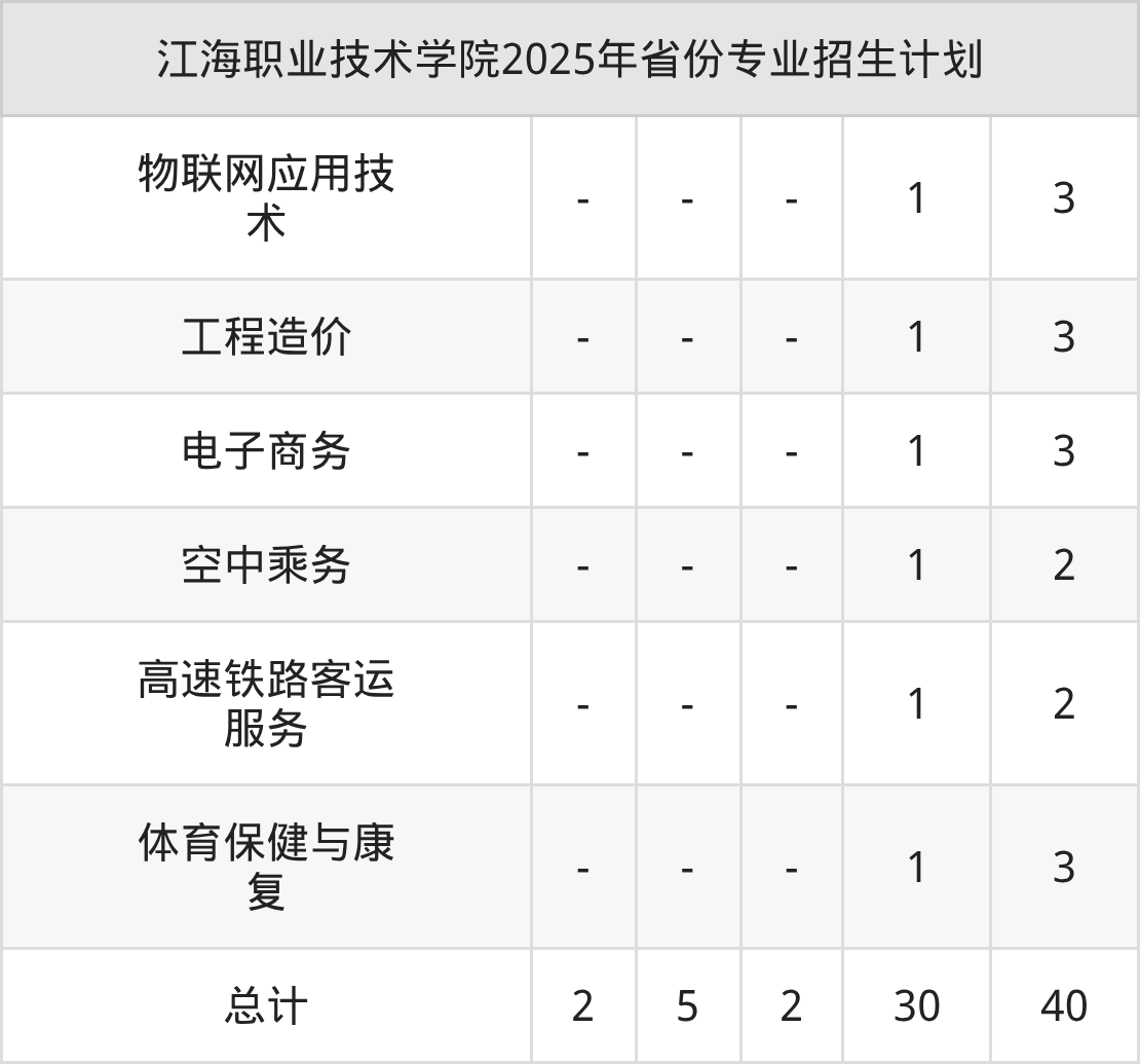 2026年江海职业技术学院专科招生计划待公布,下面附上2025年数据,暂供参考: