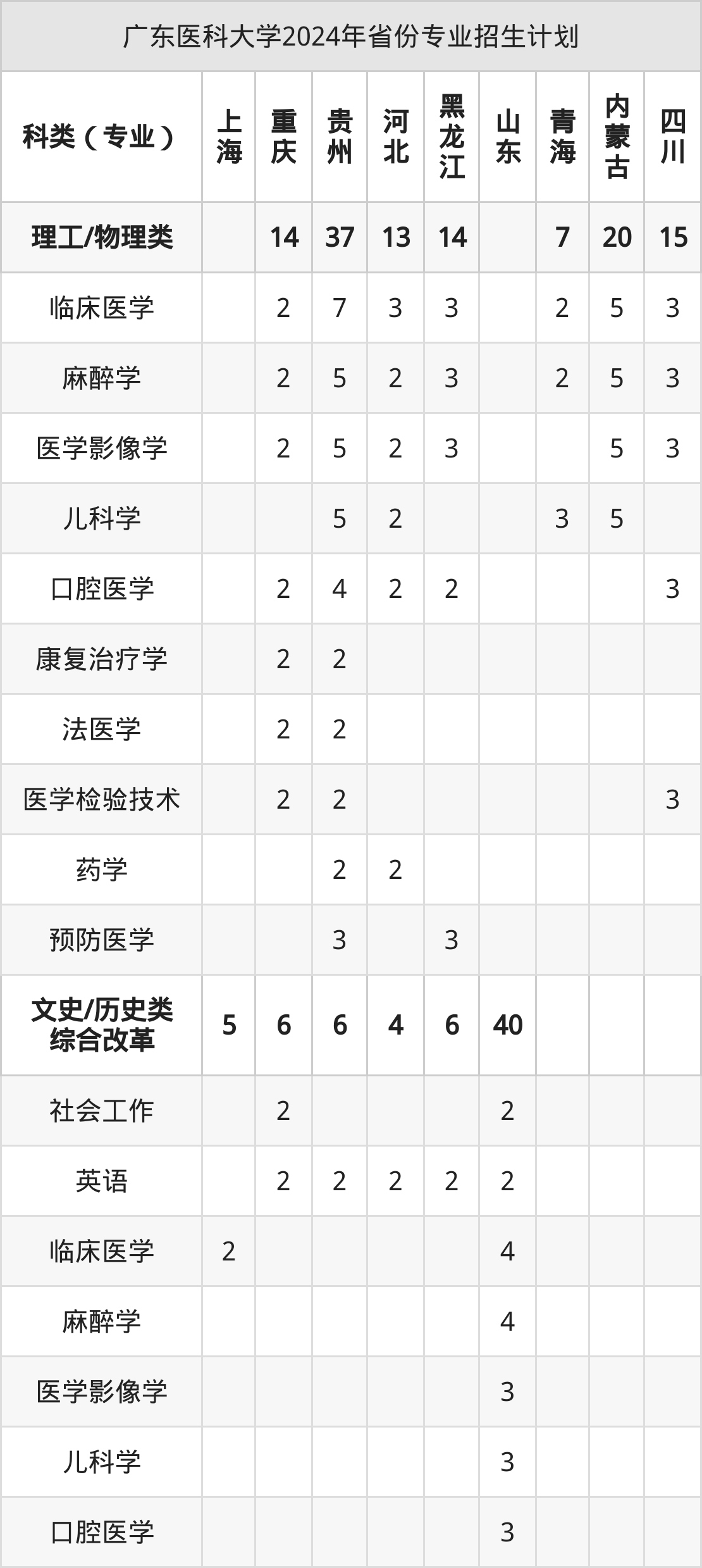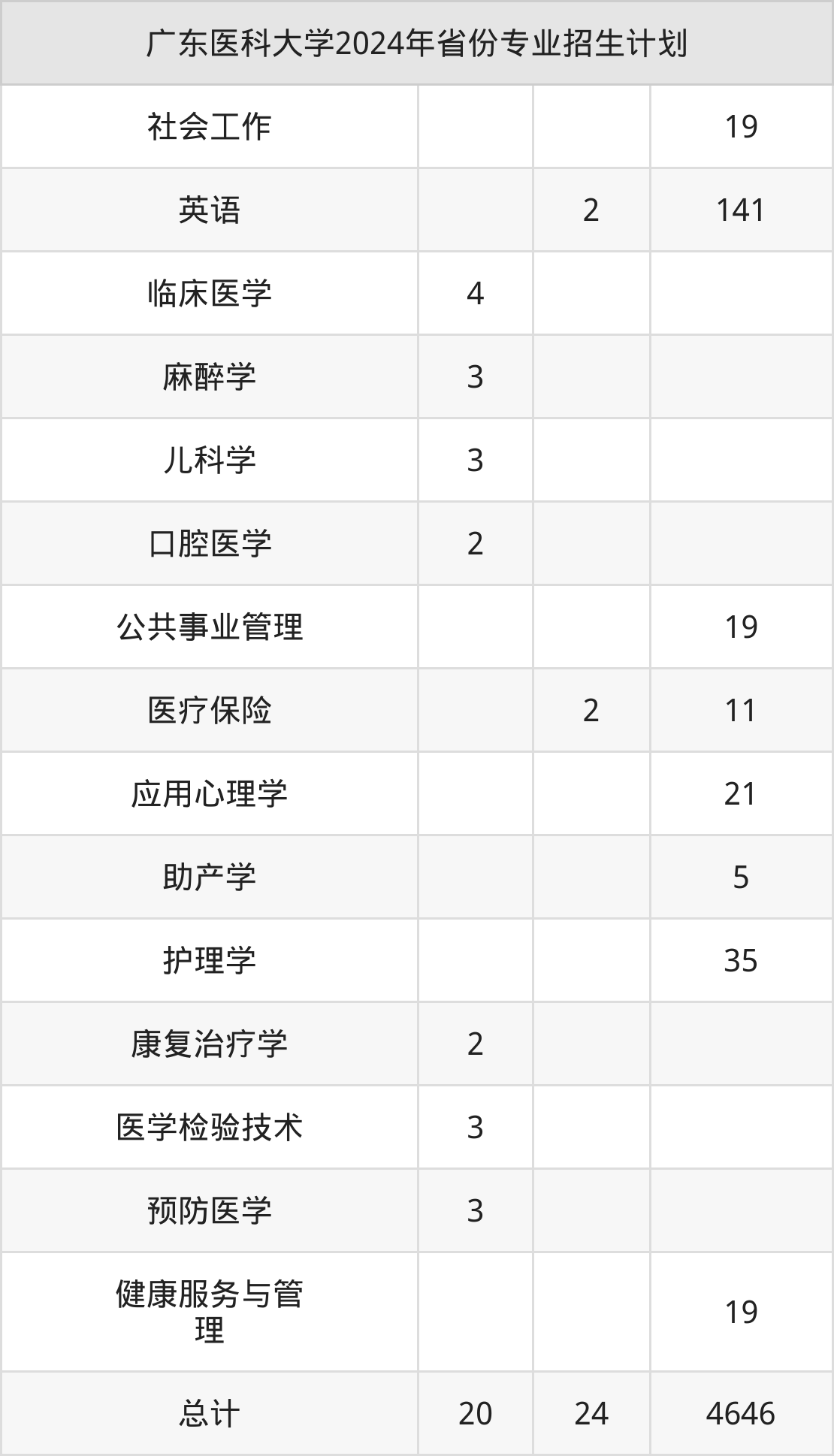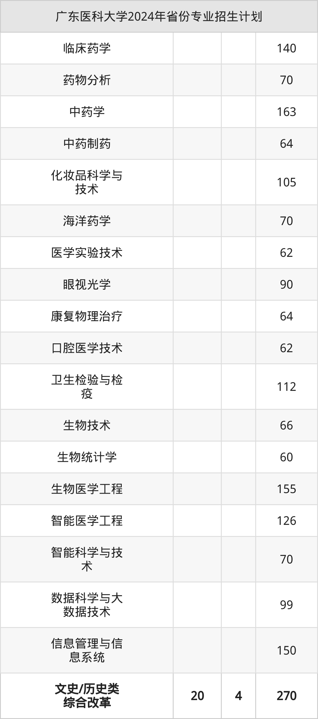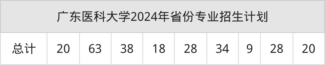 2025年广东医科大学本科招生计划待公布,下面附上2024年数据,暂供参考: