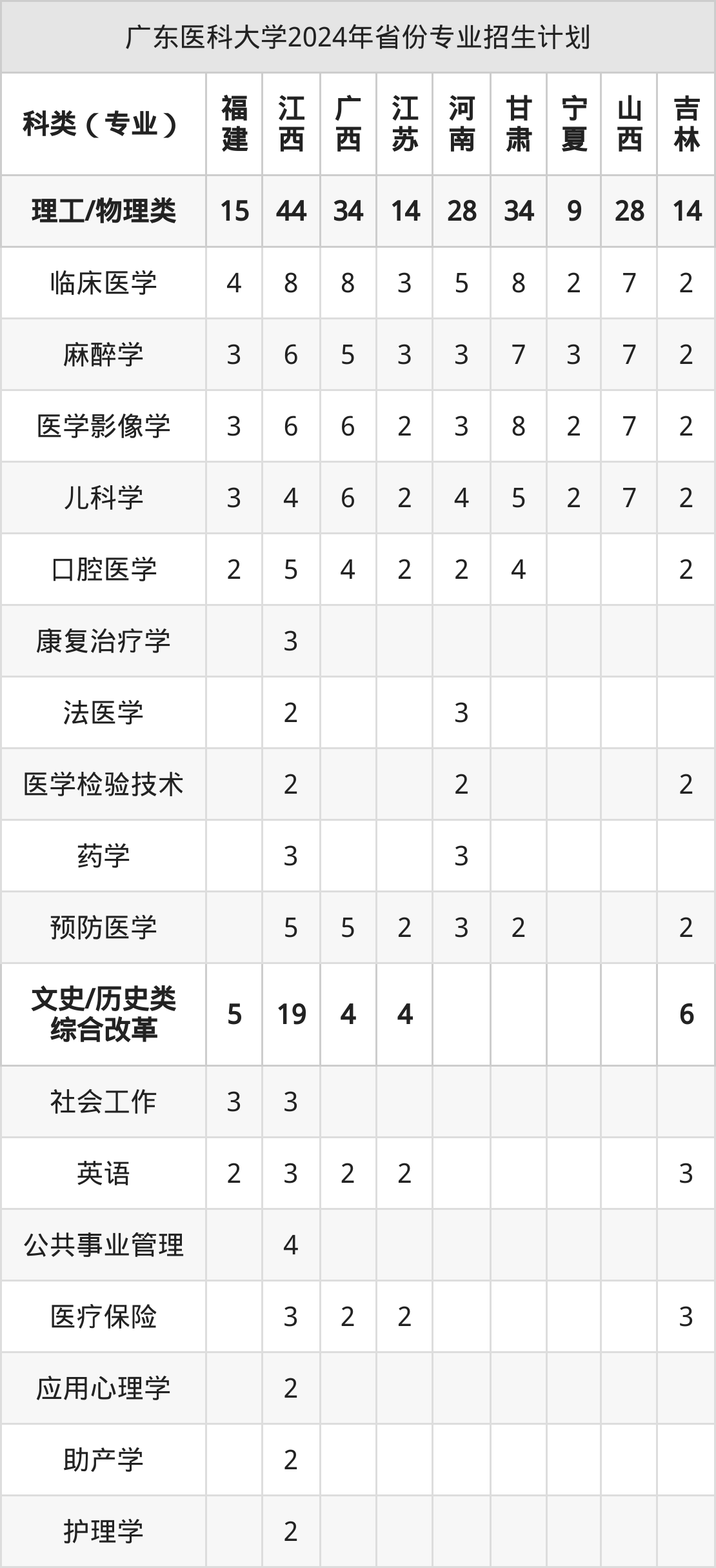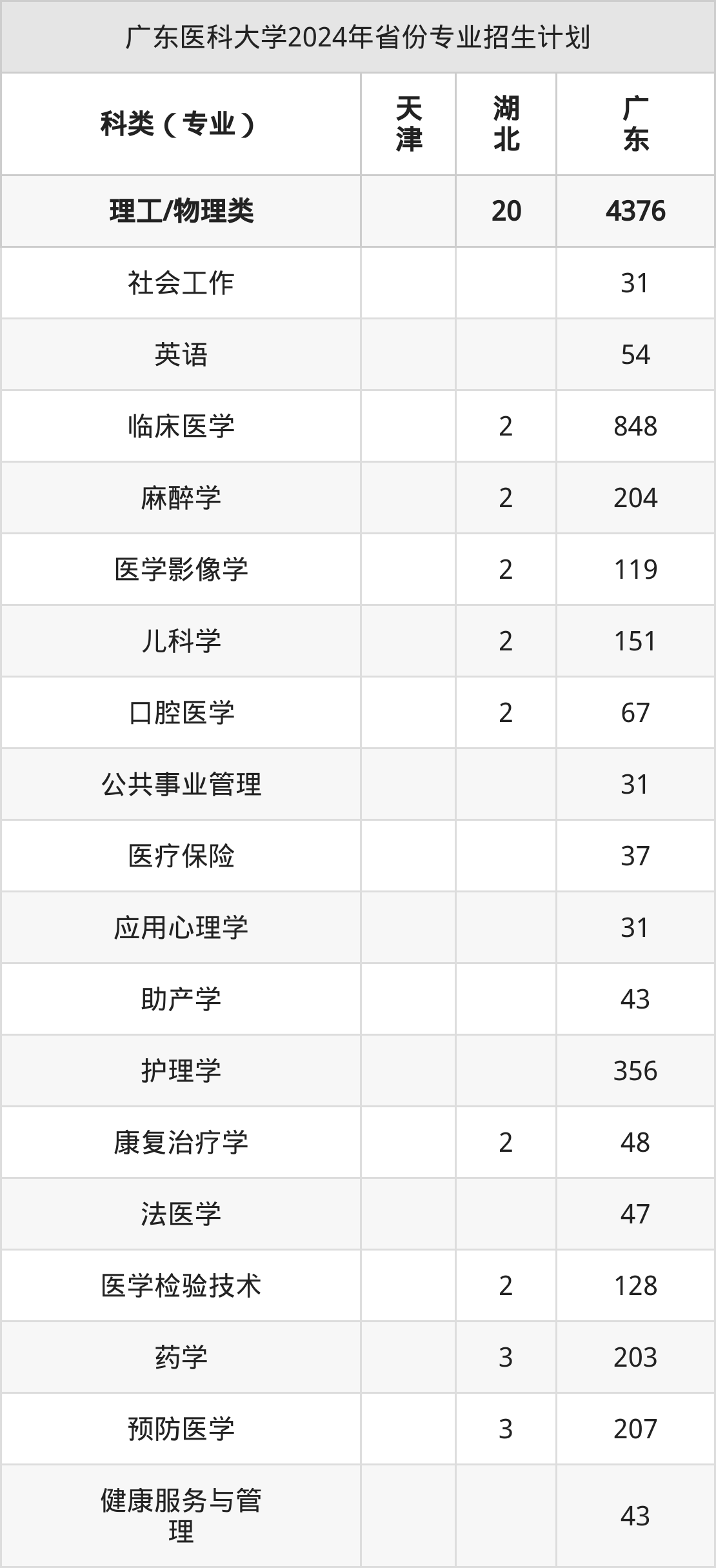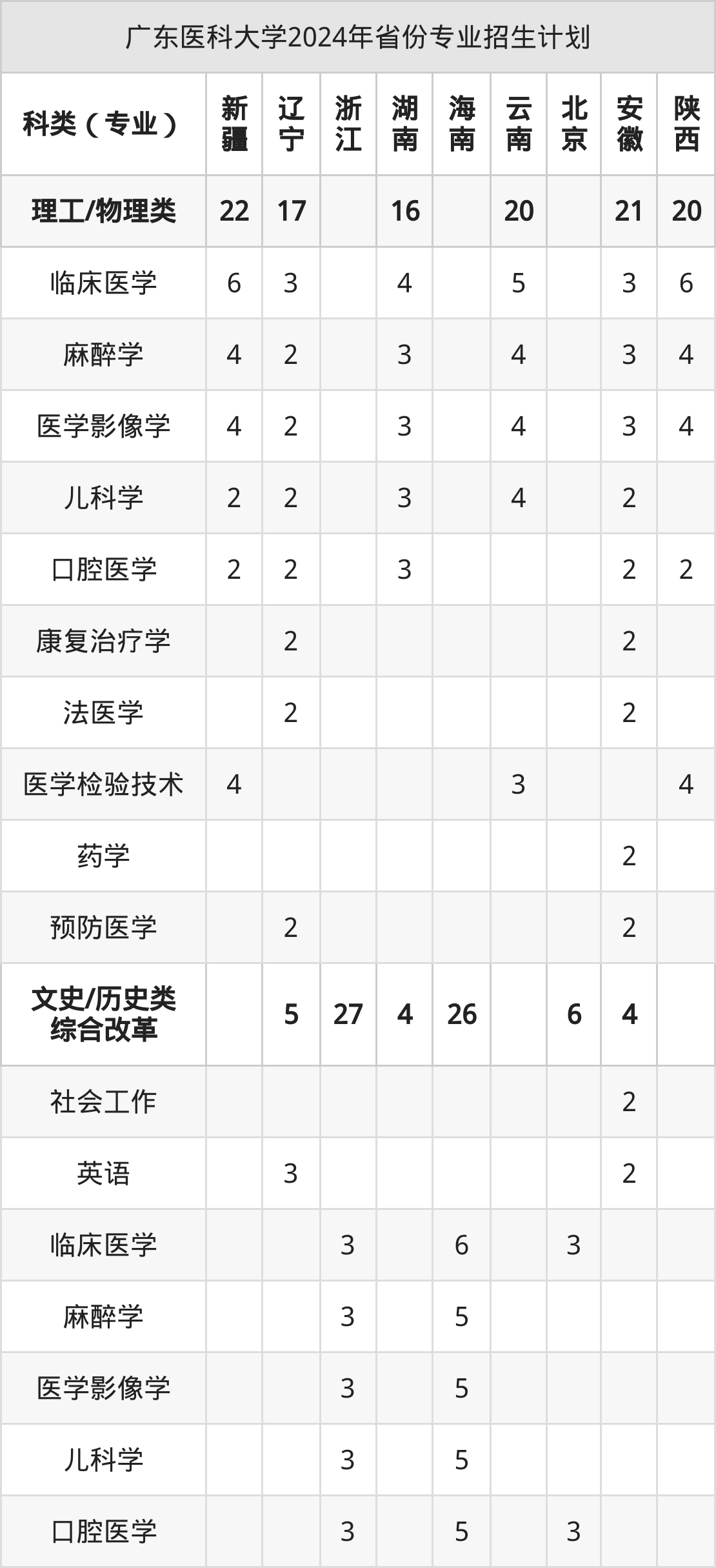 2025年广东医科大学本科招生计划待公布,下面附上2024年数据,暂供参考: