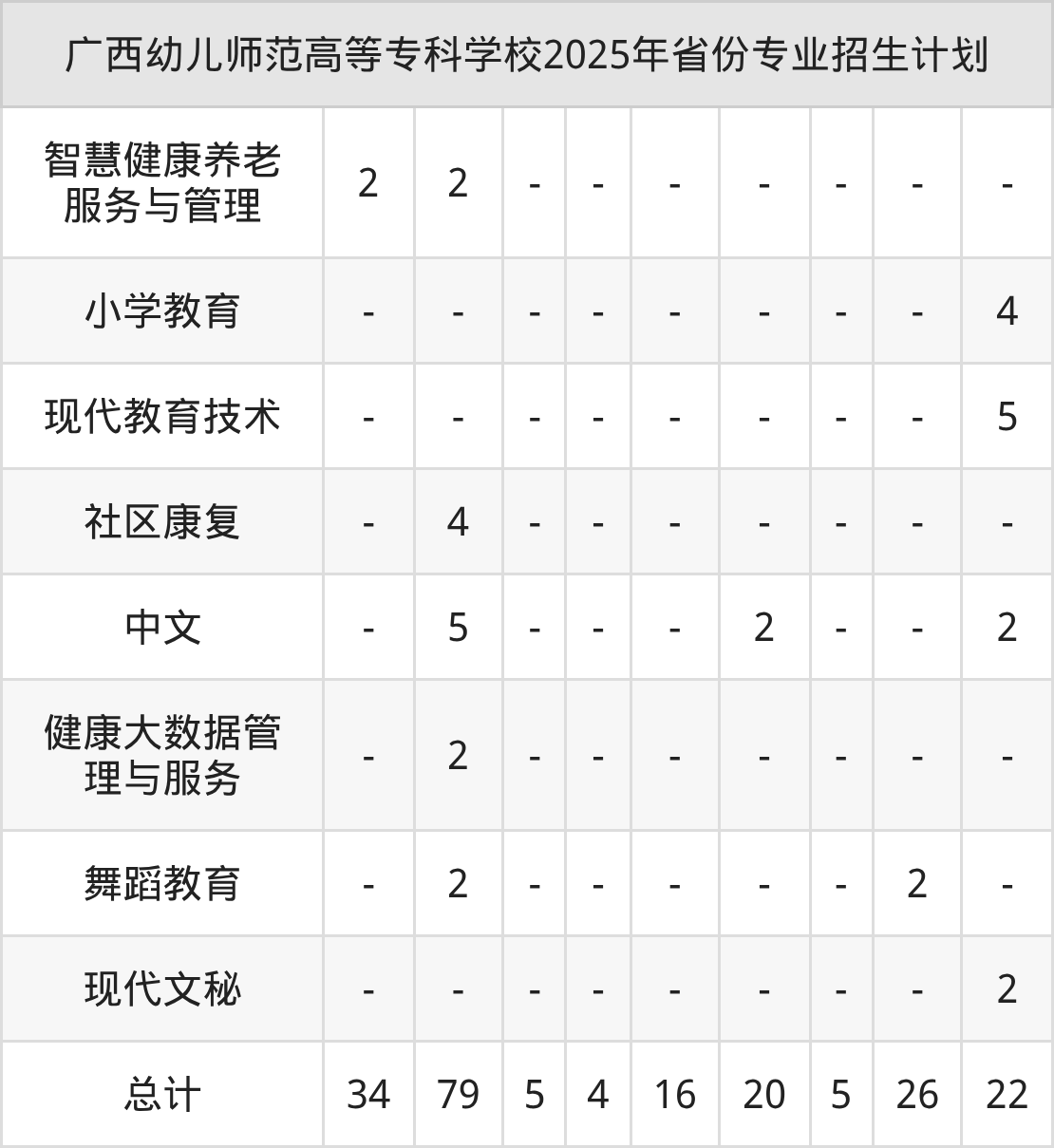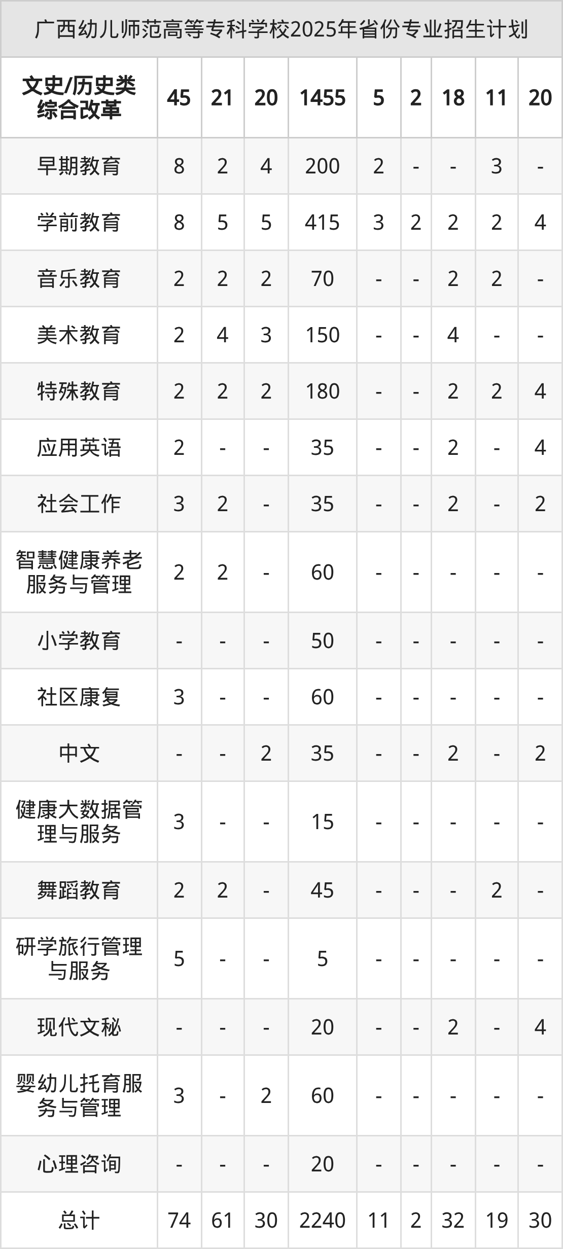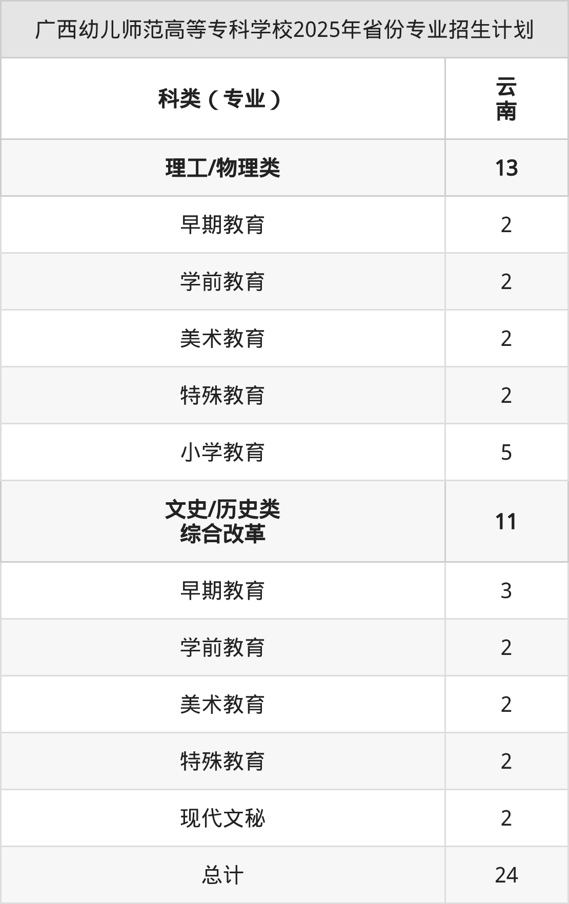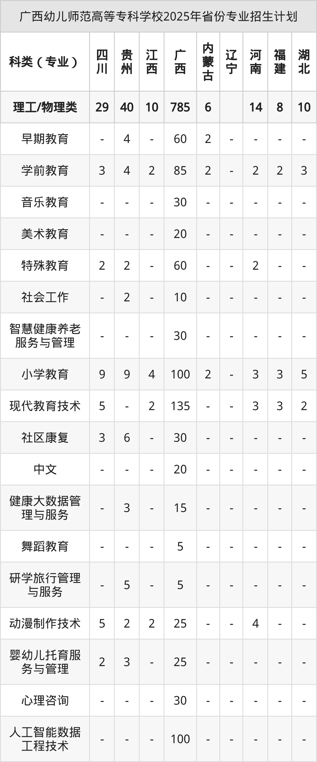 2026年广西幼儿师范高等专科学校专科招生计划待公布,下面附上2025年数据,暂供参考: