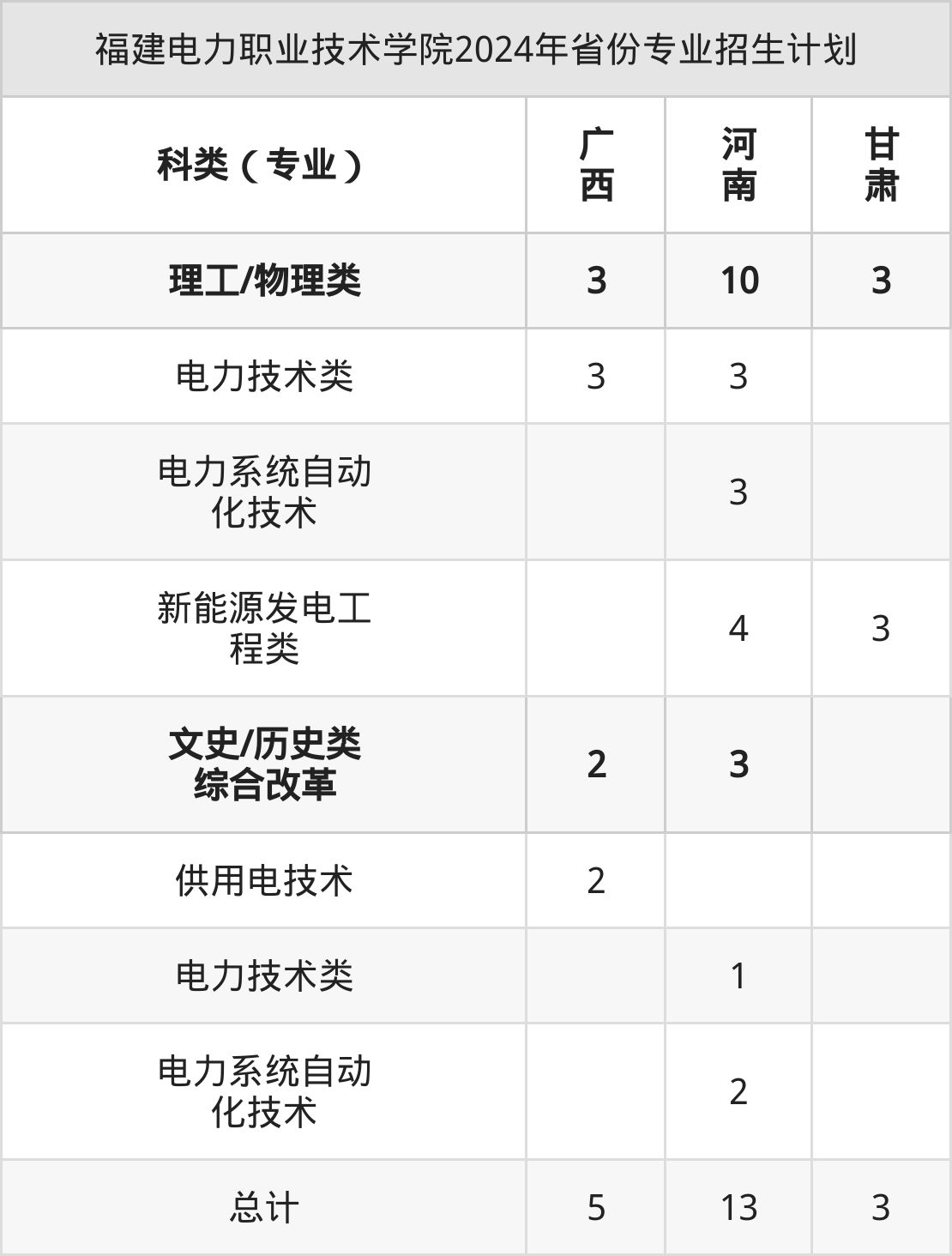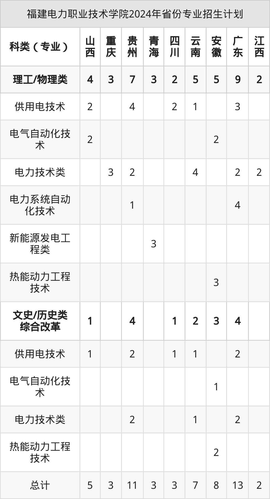 2025年福建电力职业技术学院专科招生计划待公布,下面附上2024年数据,暂供参考: