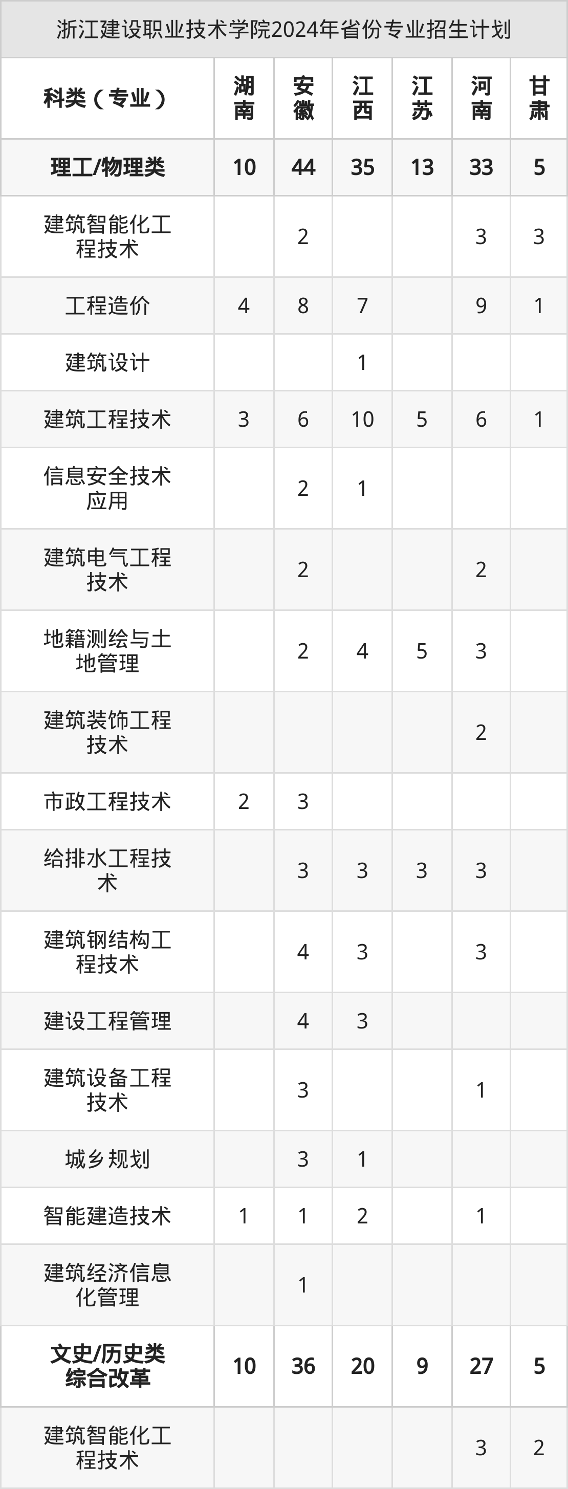 2025年浙江建设职业技术学院专科招生计划待公布,下面附上2024年数据,暂供参考:
