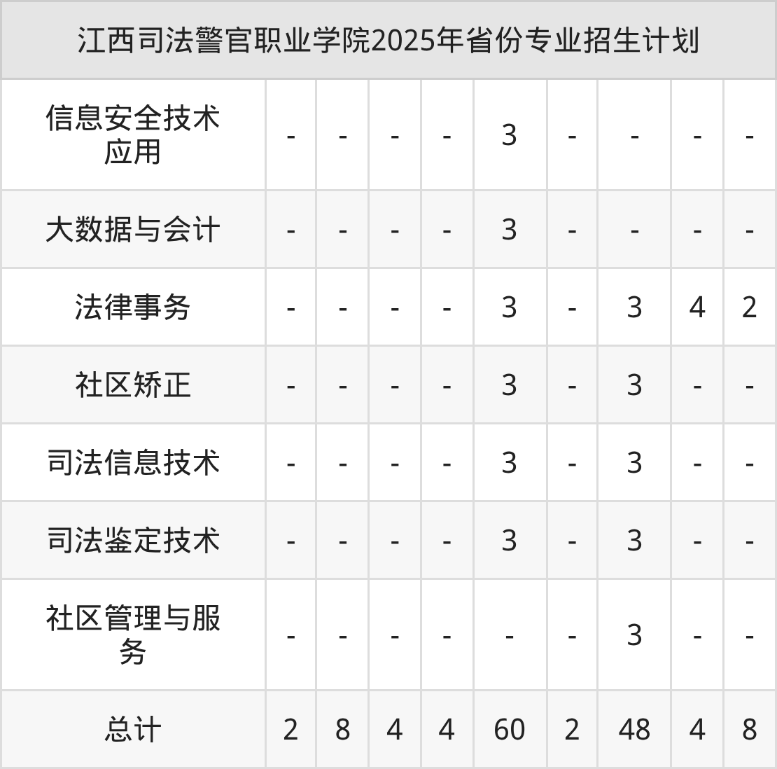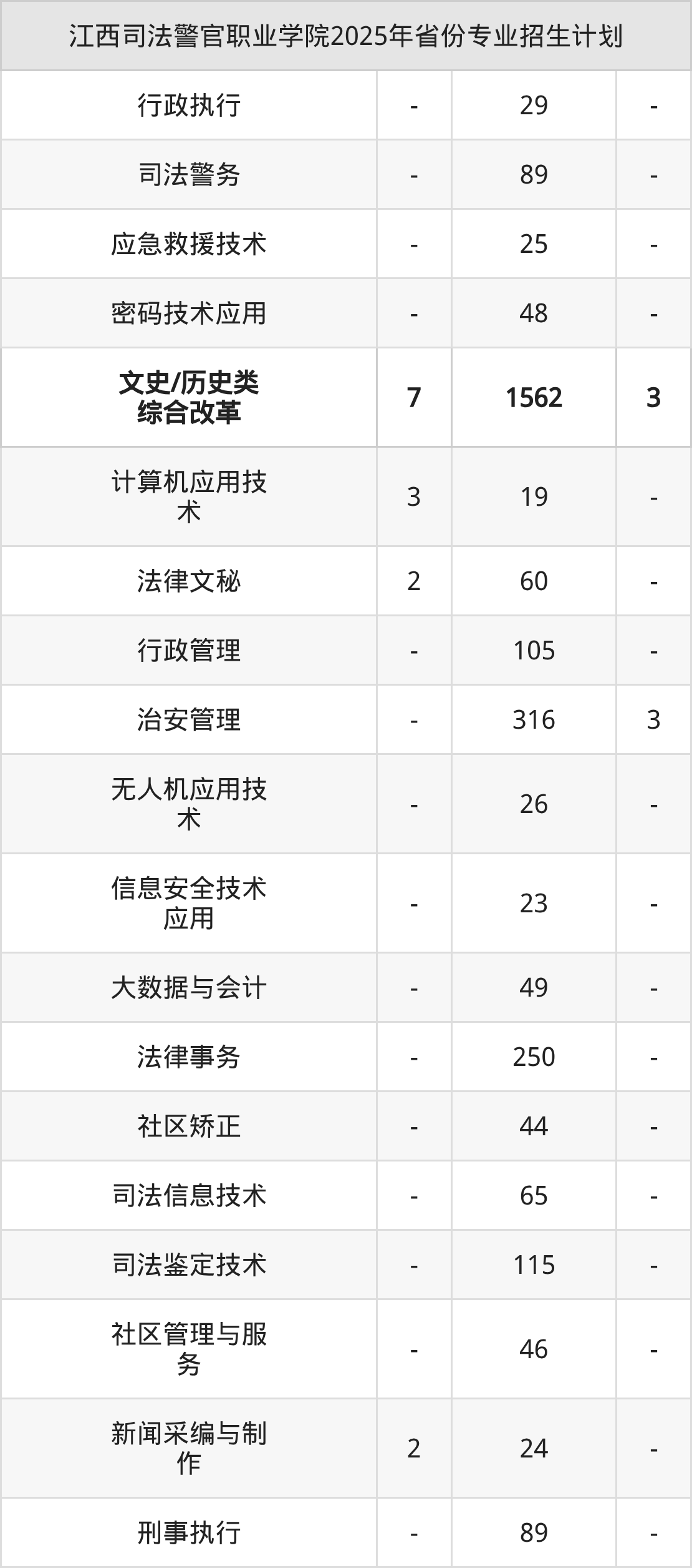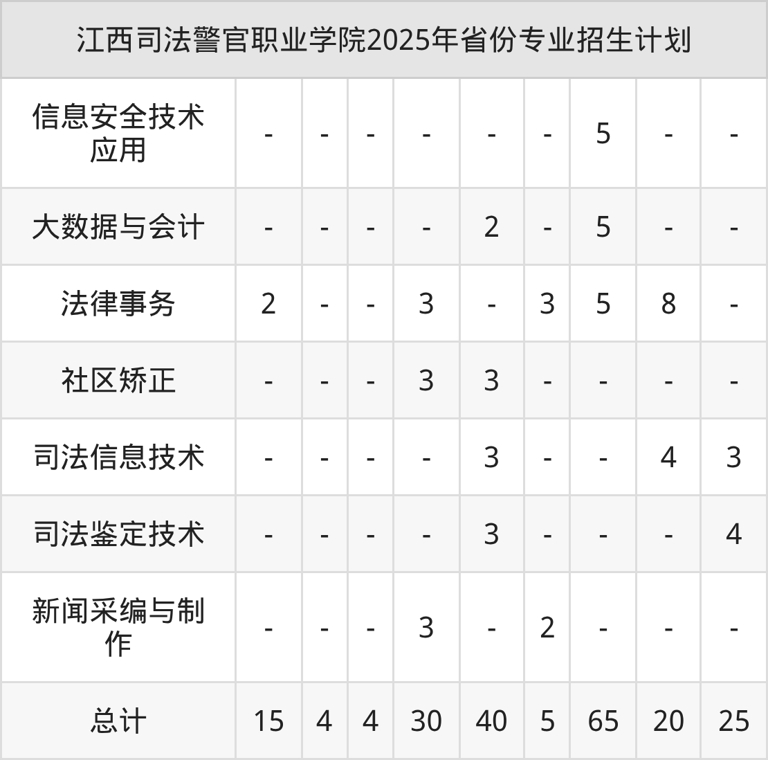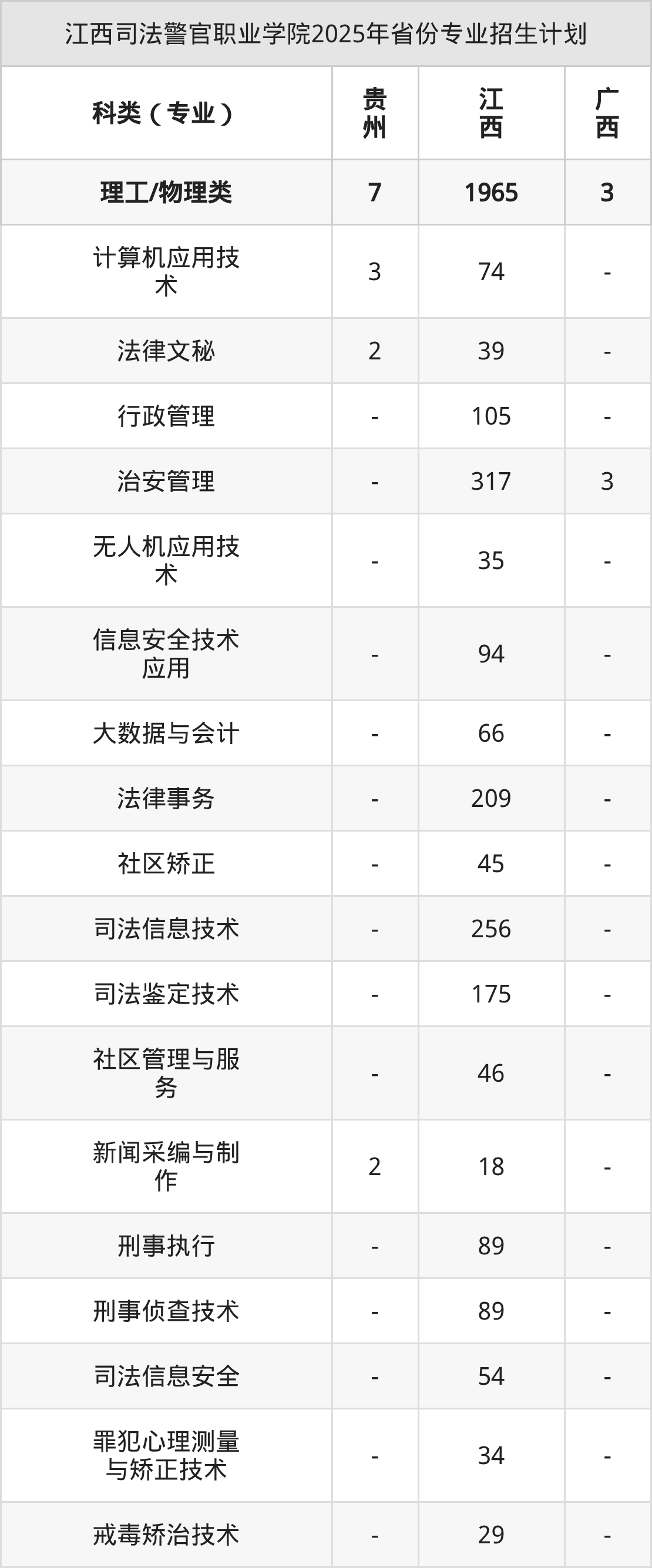 2026年江西司法警官职业学院专科招生计划待公布,下面附上2025年数据,暂供参考: