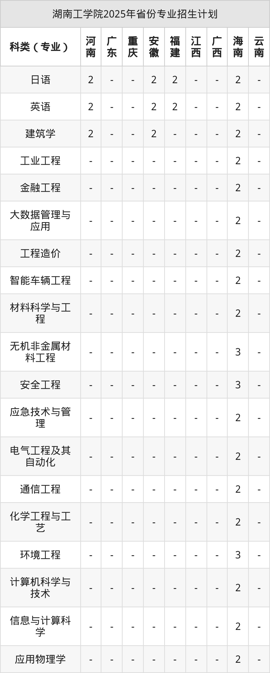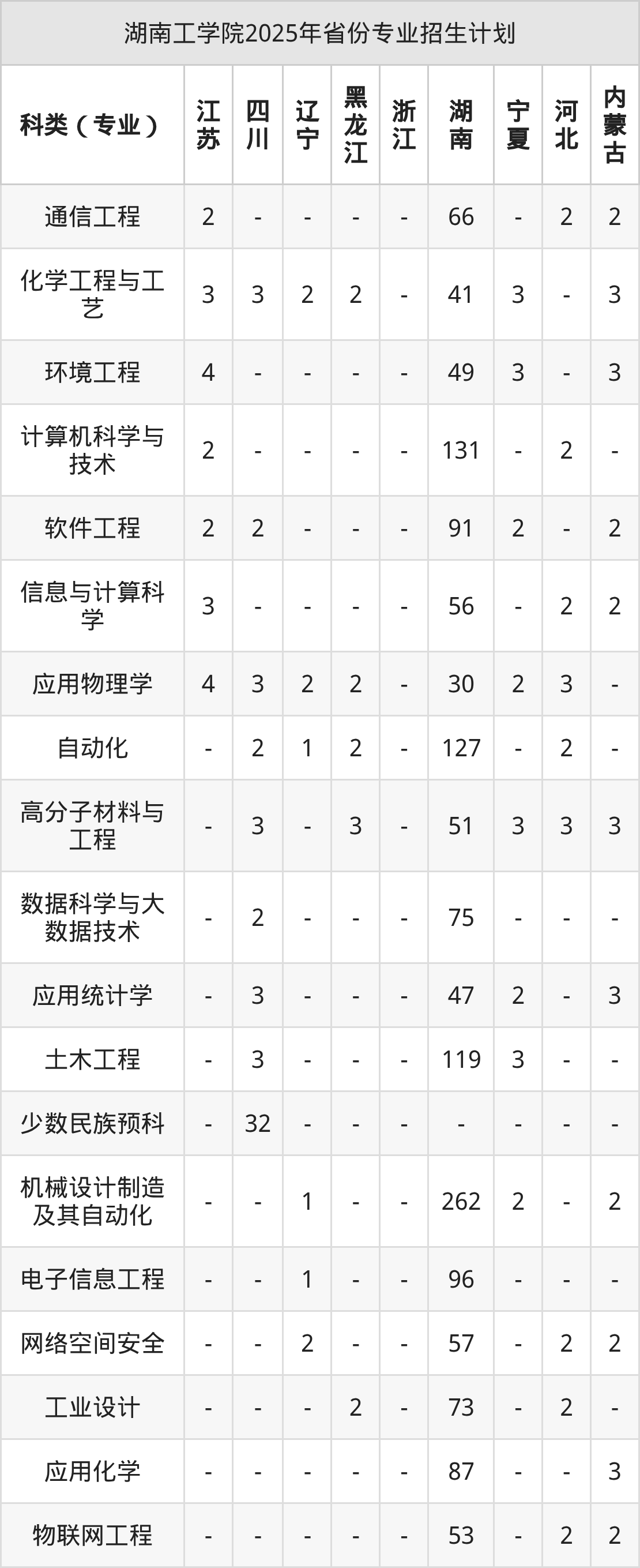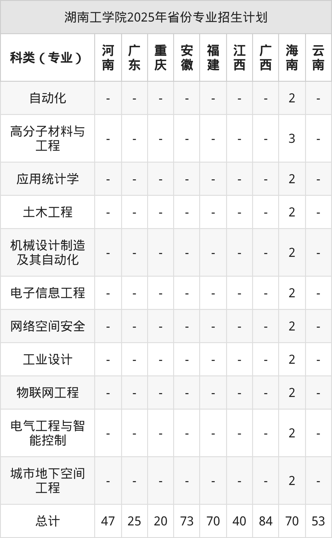 2026年湖南工学院本科招生计划待公布,下面附上2025年数据,暂供参考: