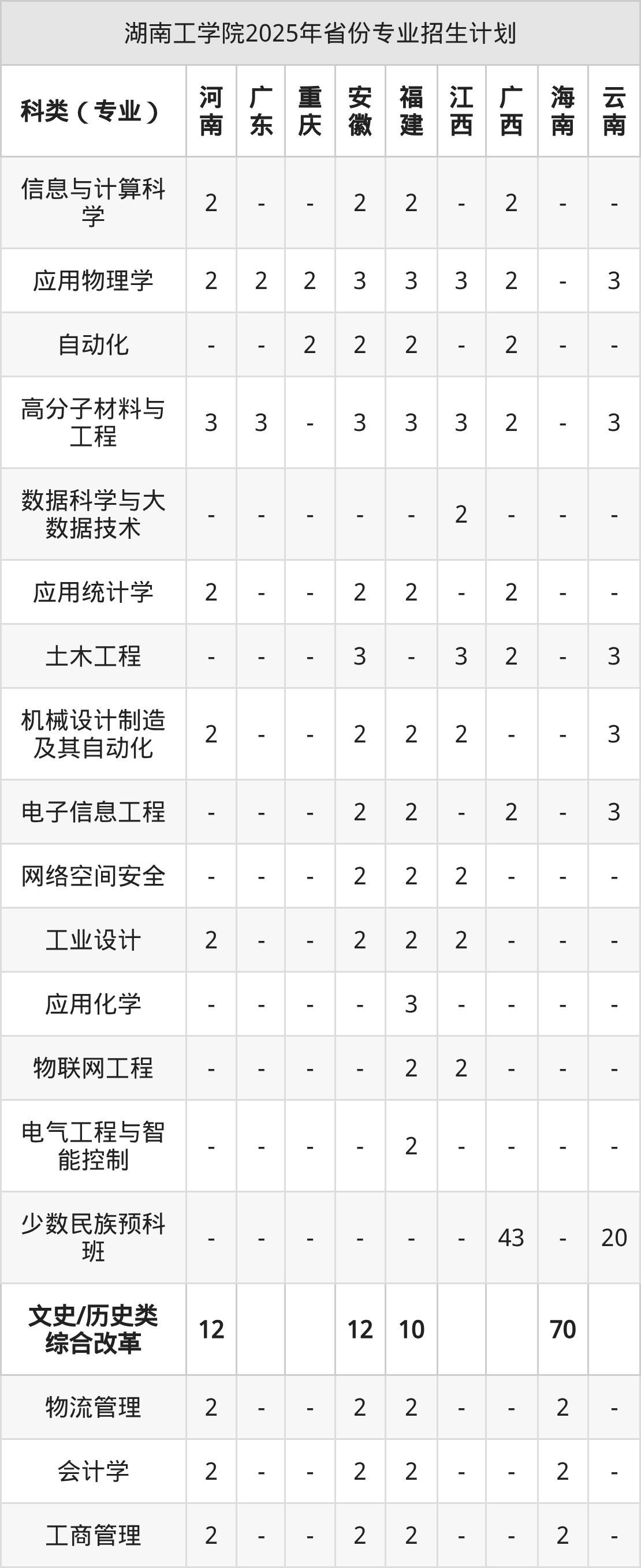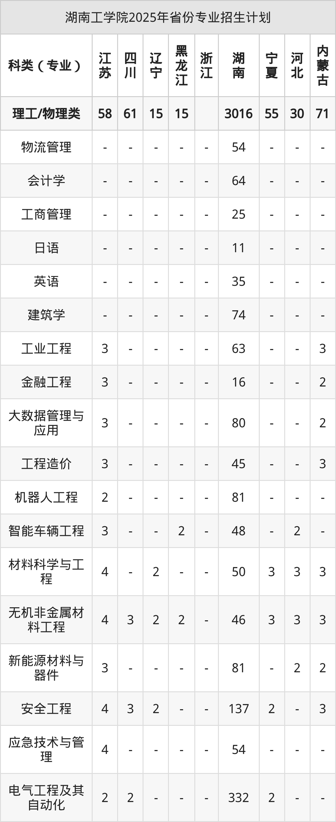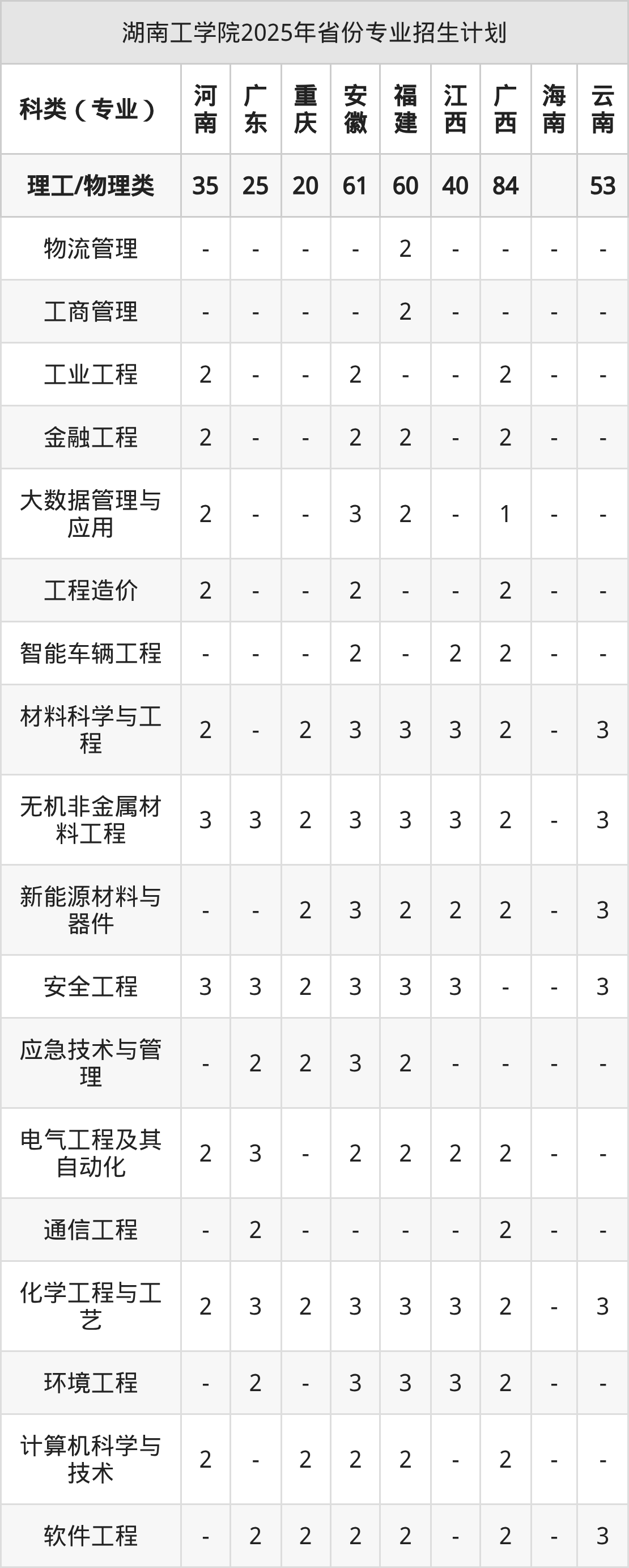2026年湖南工学院本科招生计划待公布,下面附上2025年数据,暂供参考: