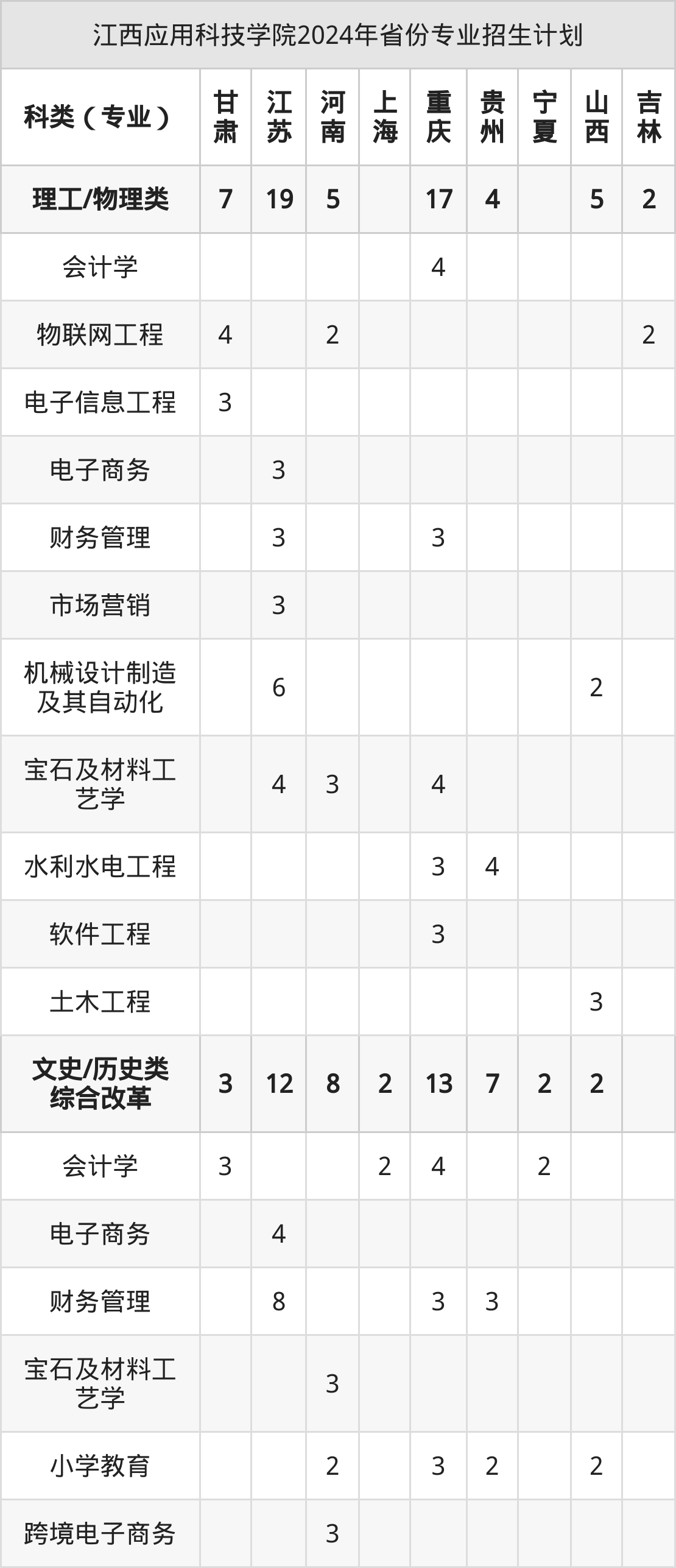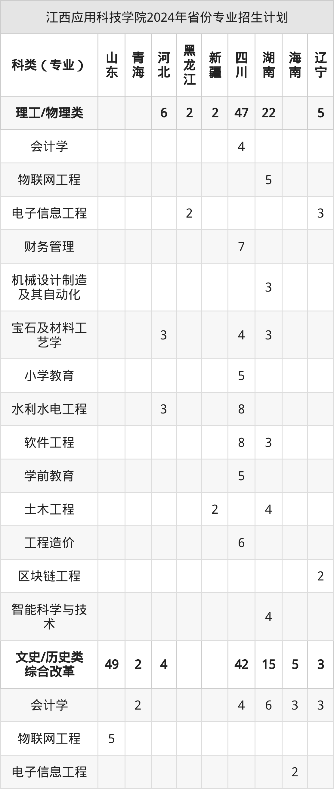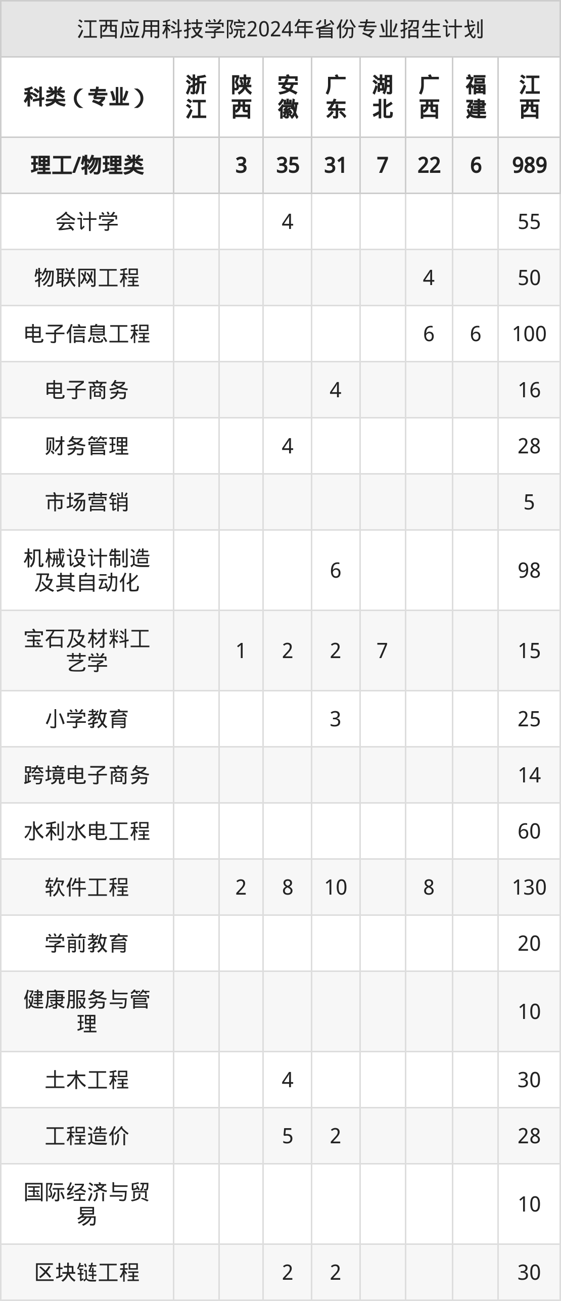 2025年江西应用科技学院本科招生计划待公布,下面附上2024年数据,暂供参考: