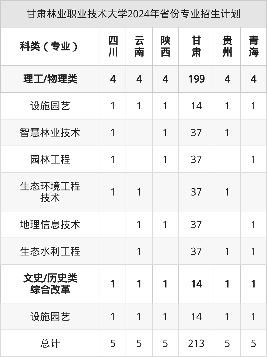 2025年甘肃林业职业技术大学本科招生计划待公布,下面附上2024年数据,暂供参考: