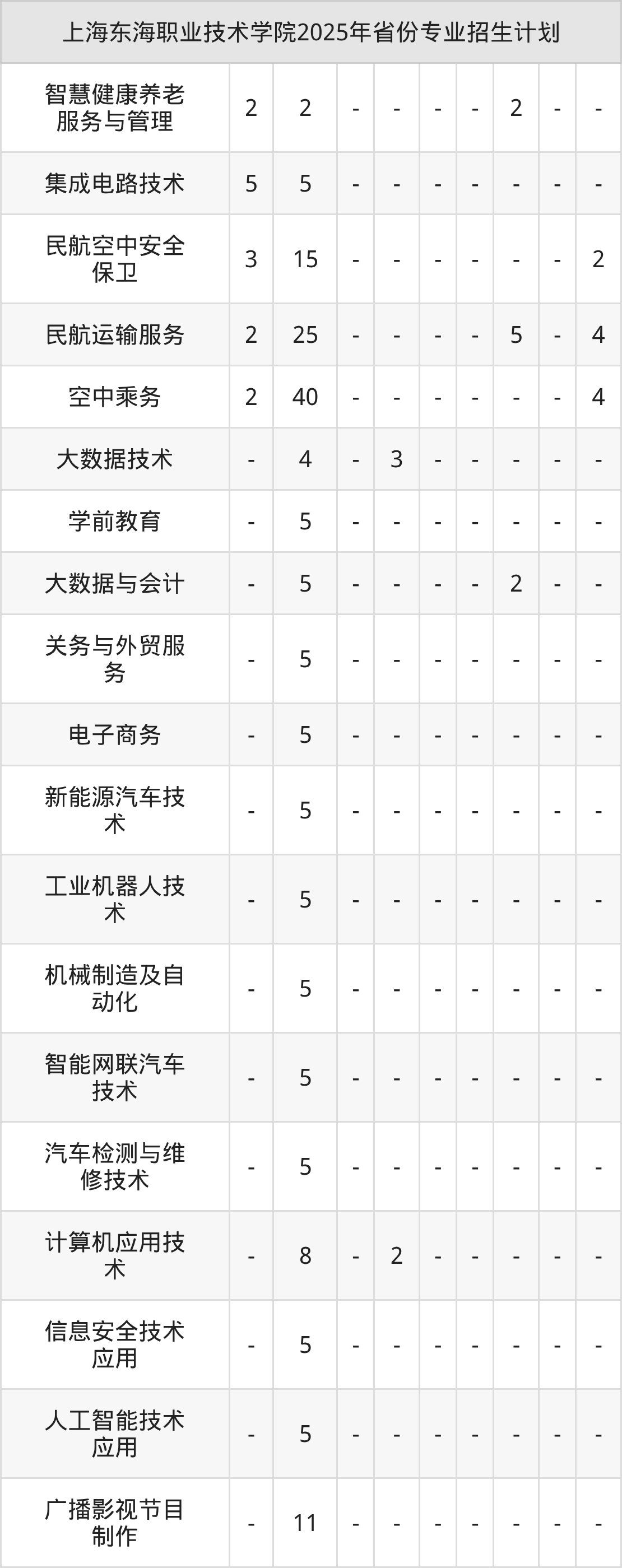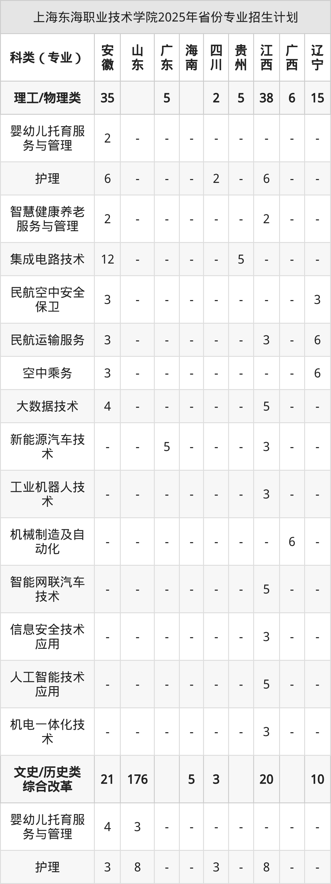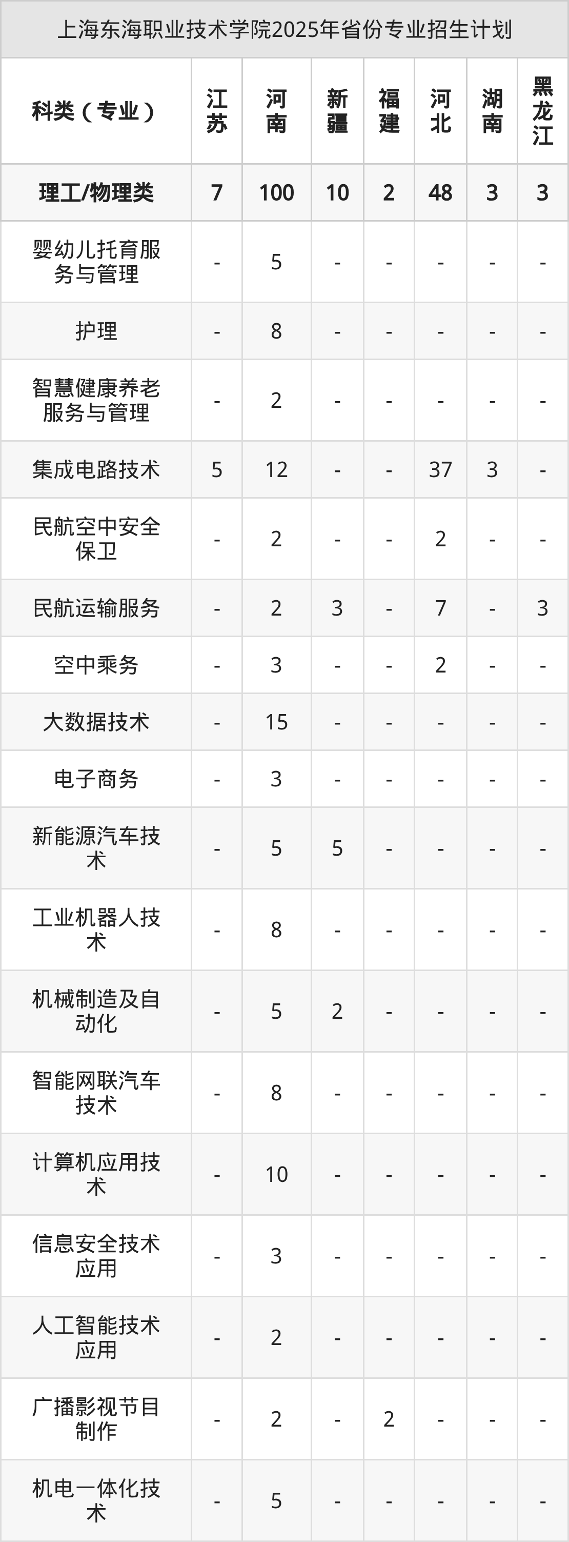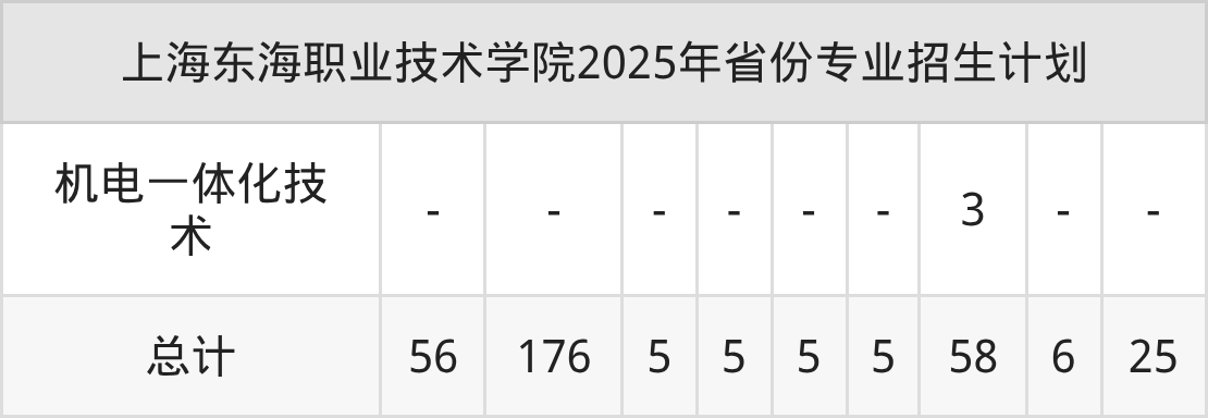 2026年上海东海职业技术学院专科招生计划待公布,下面附上2025年数据,暂供参考: