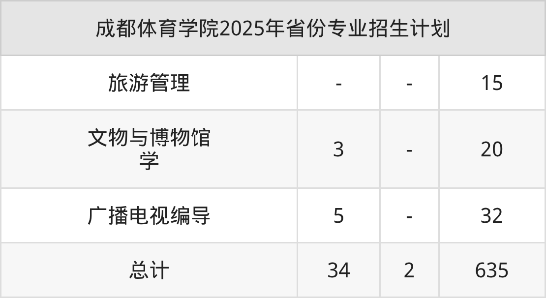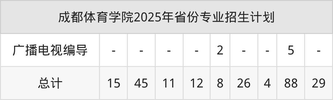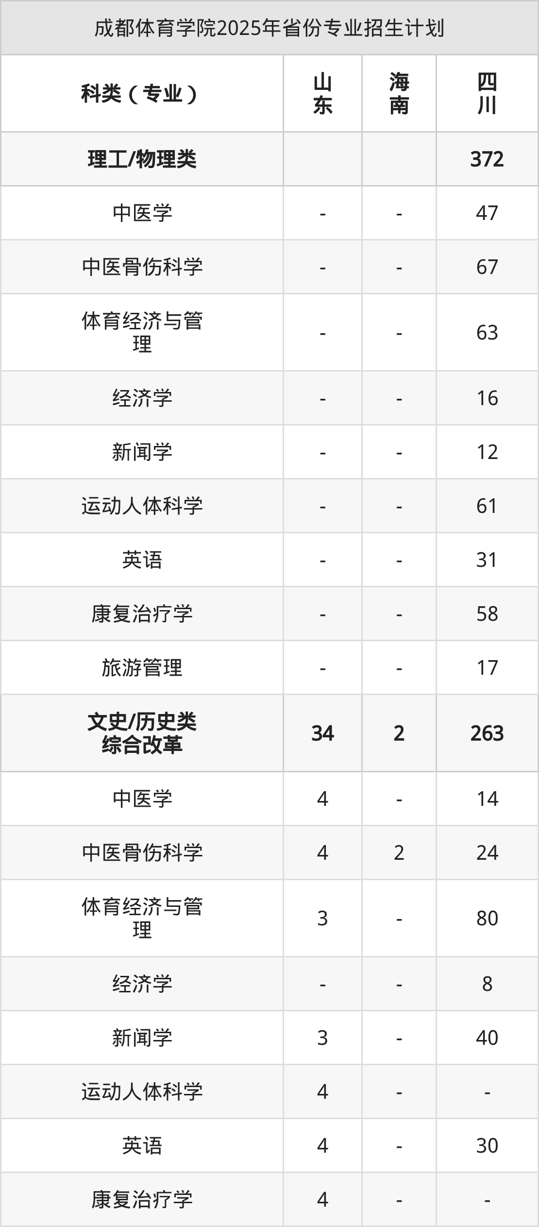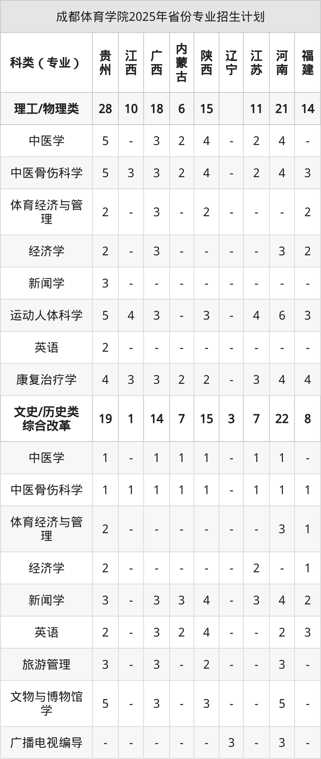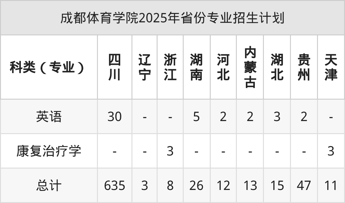 2026年成都体育学院本科招生计划待公布,下面附上2025年数据,暂供参考: