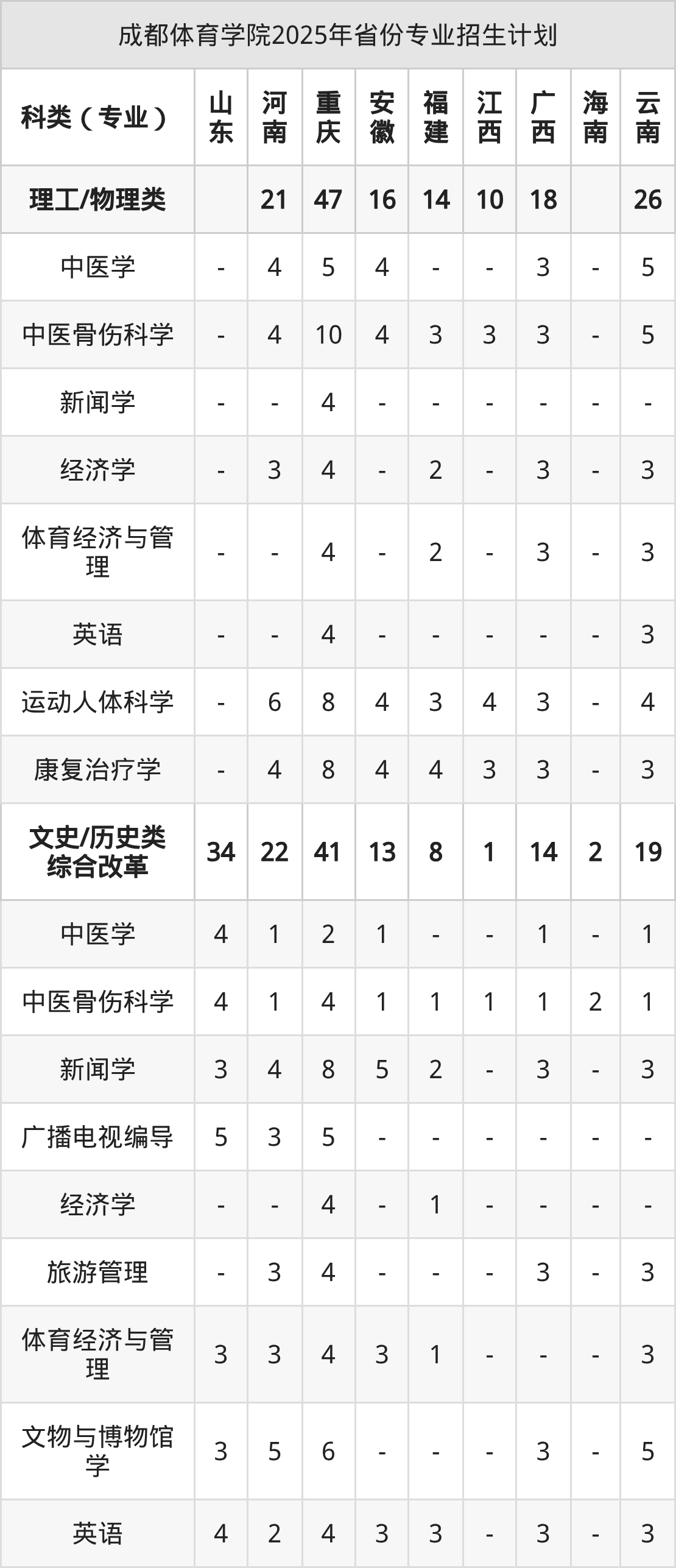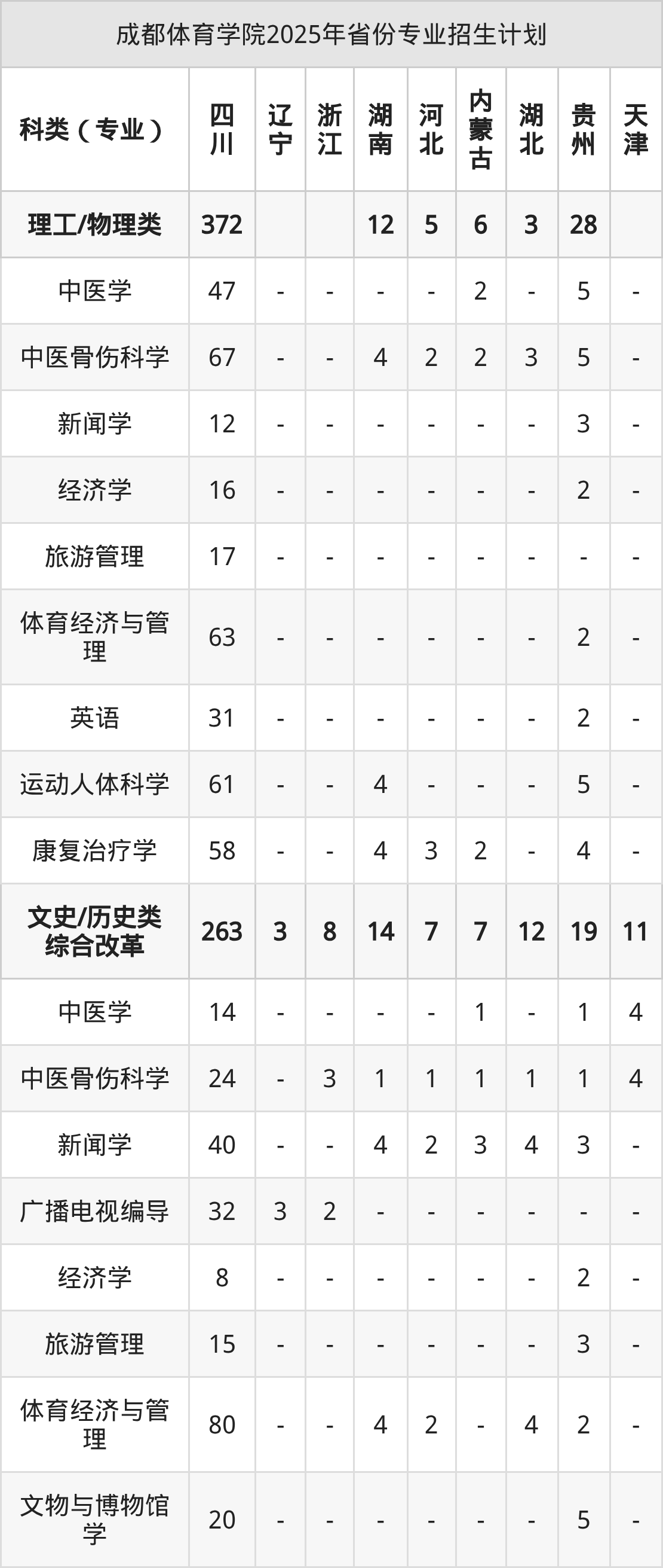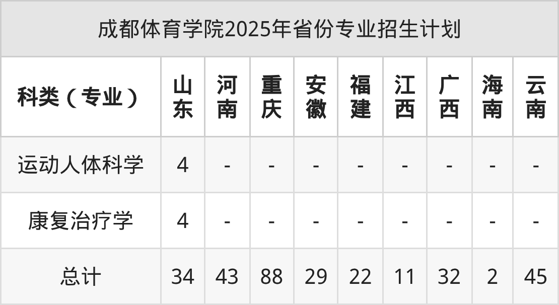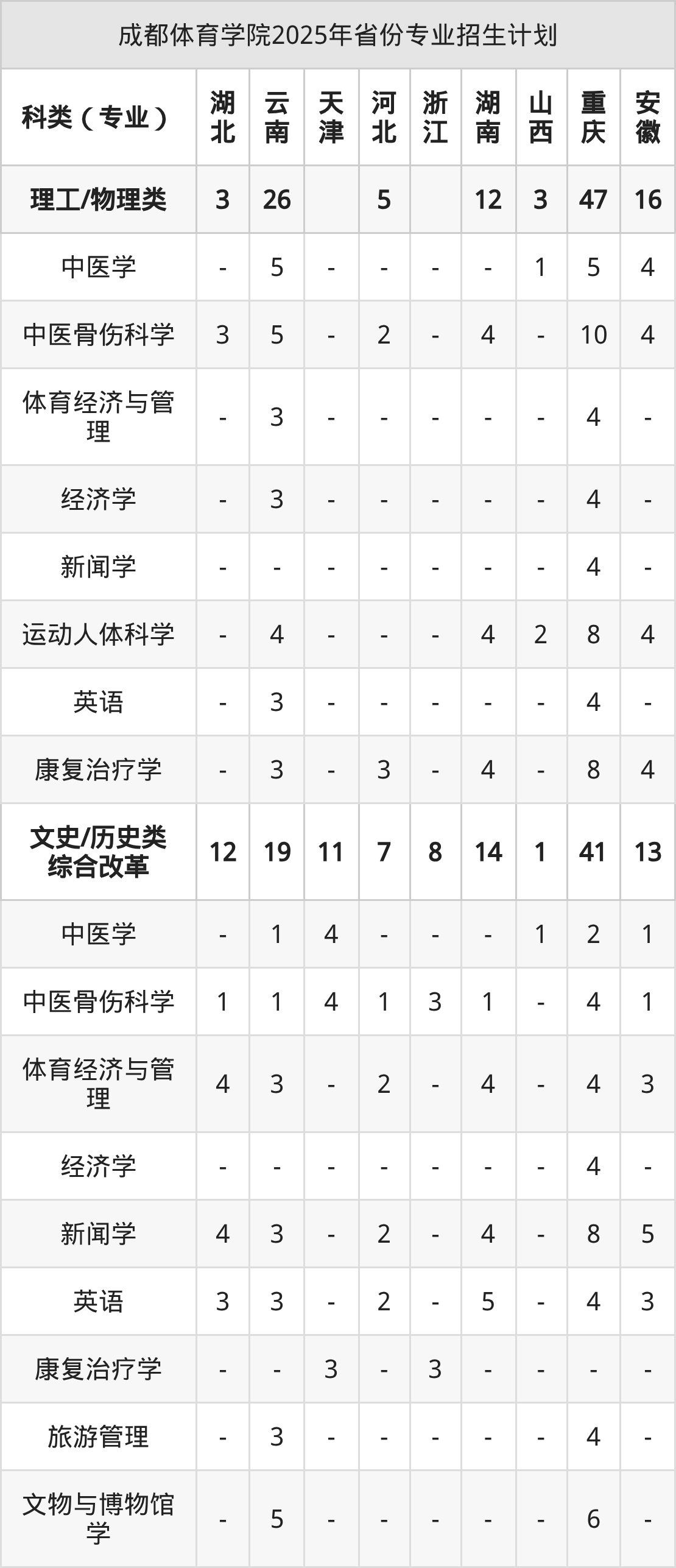 2026年成都体育学院本科招生计划待公布,下面附上2025年数据,暂供参考: