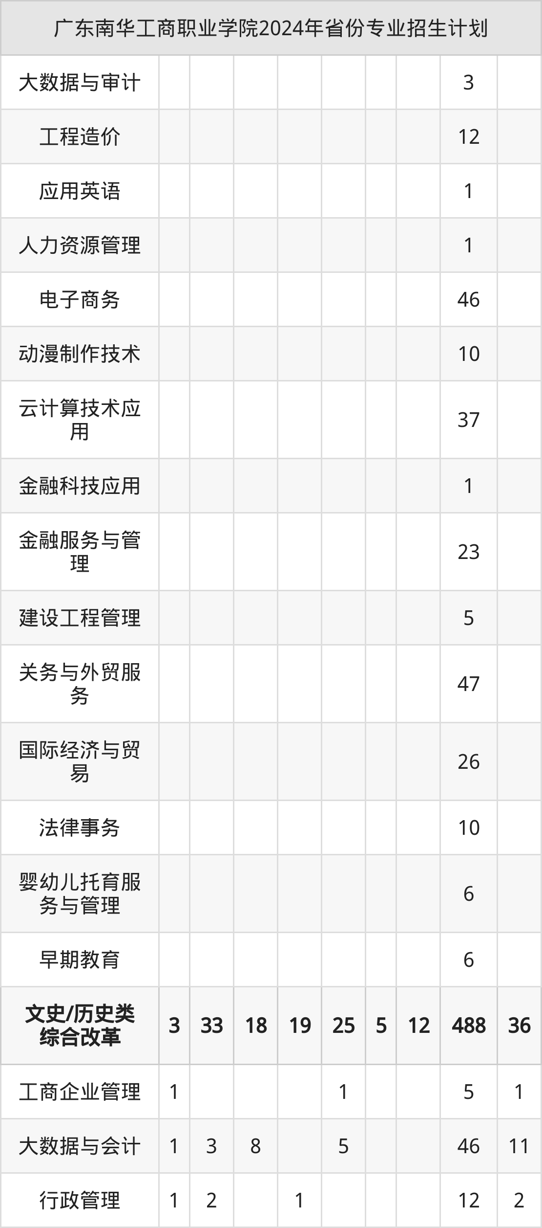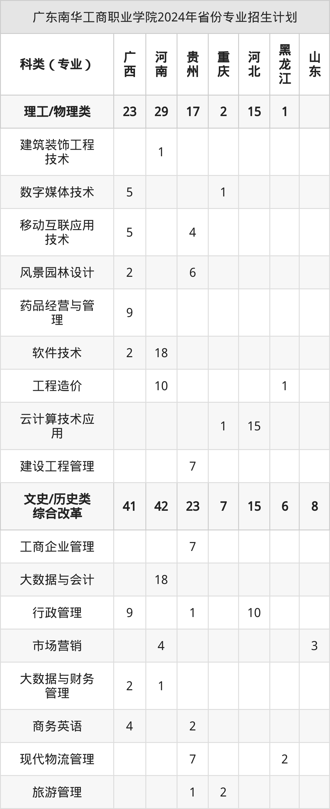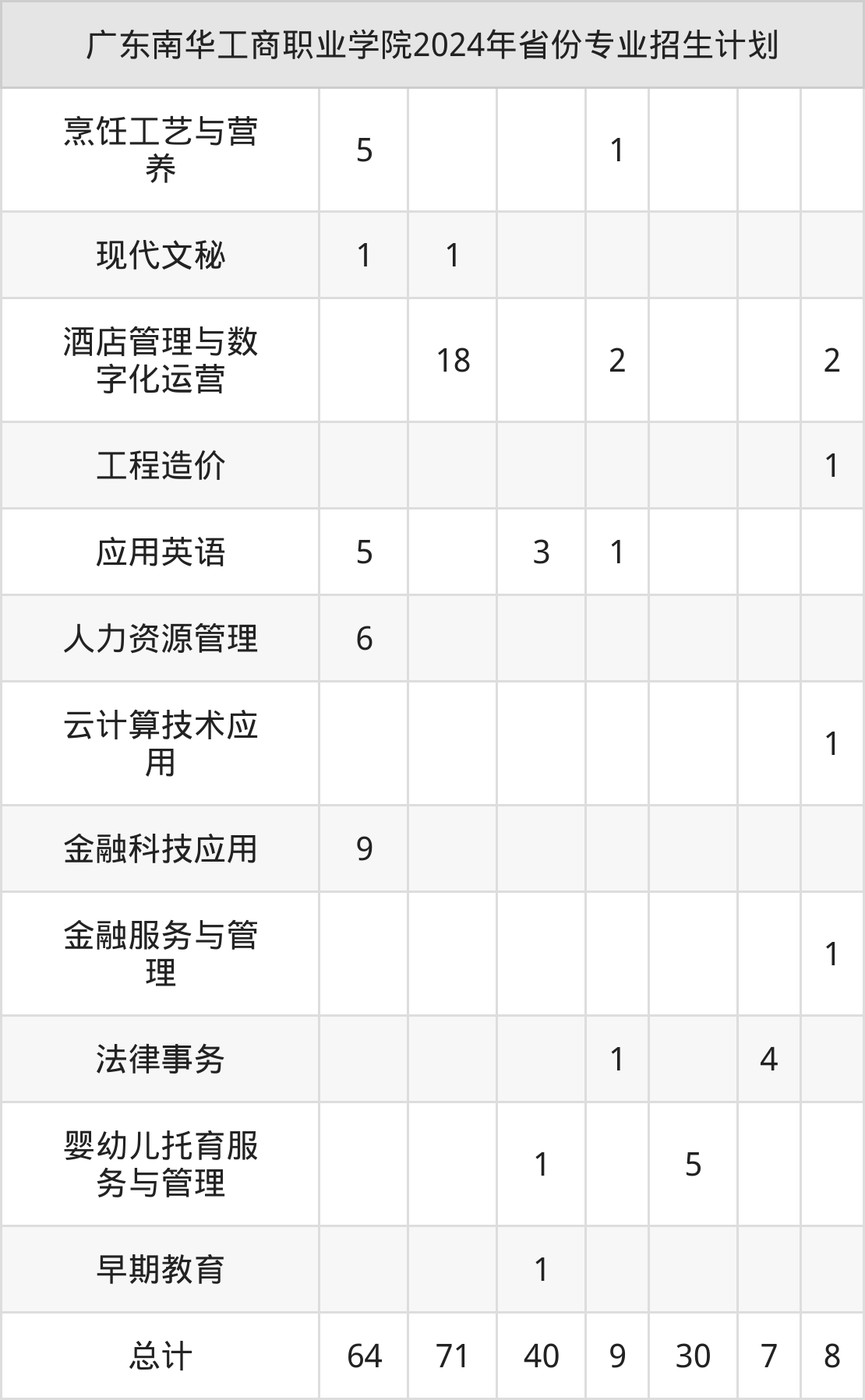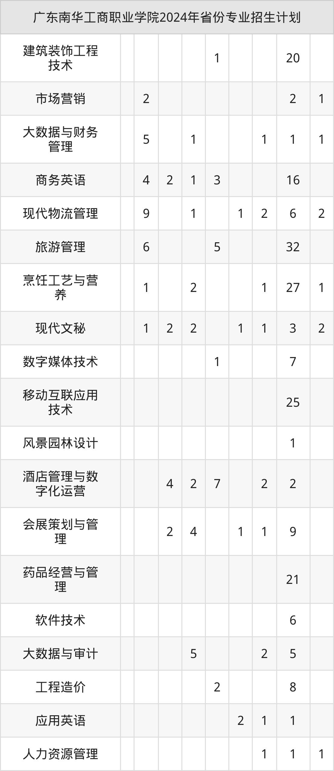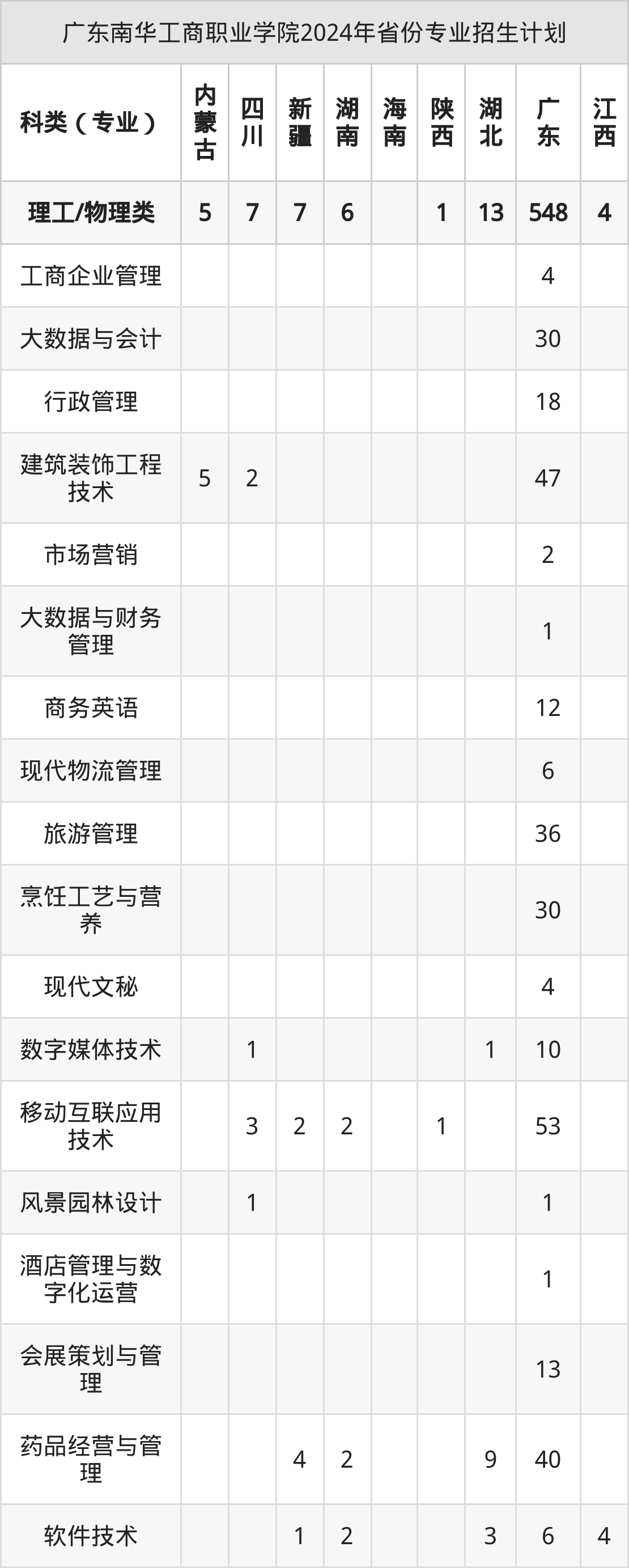 2025年广东南华工商职业学院专科招生计划待公布,下面附上2024年数据,暂供参考: