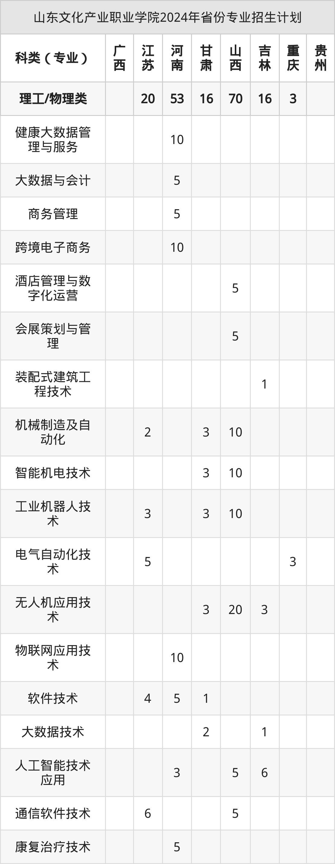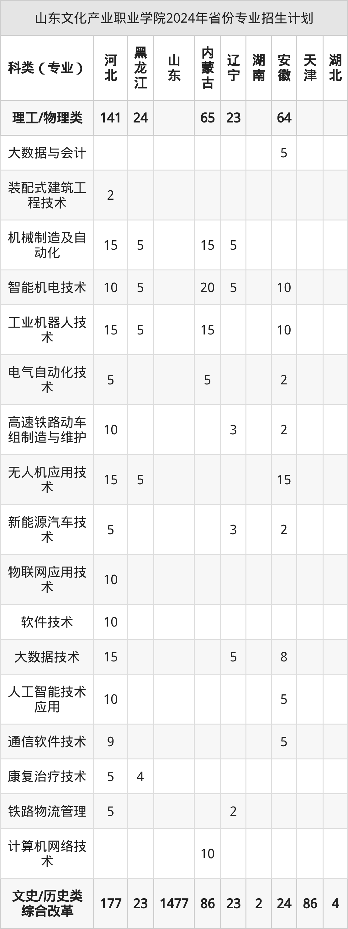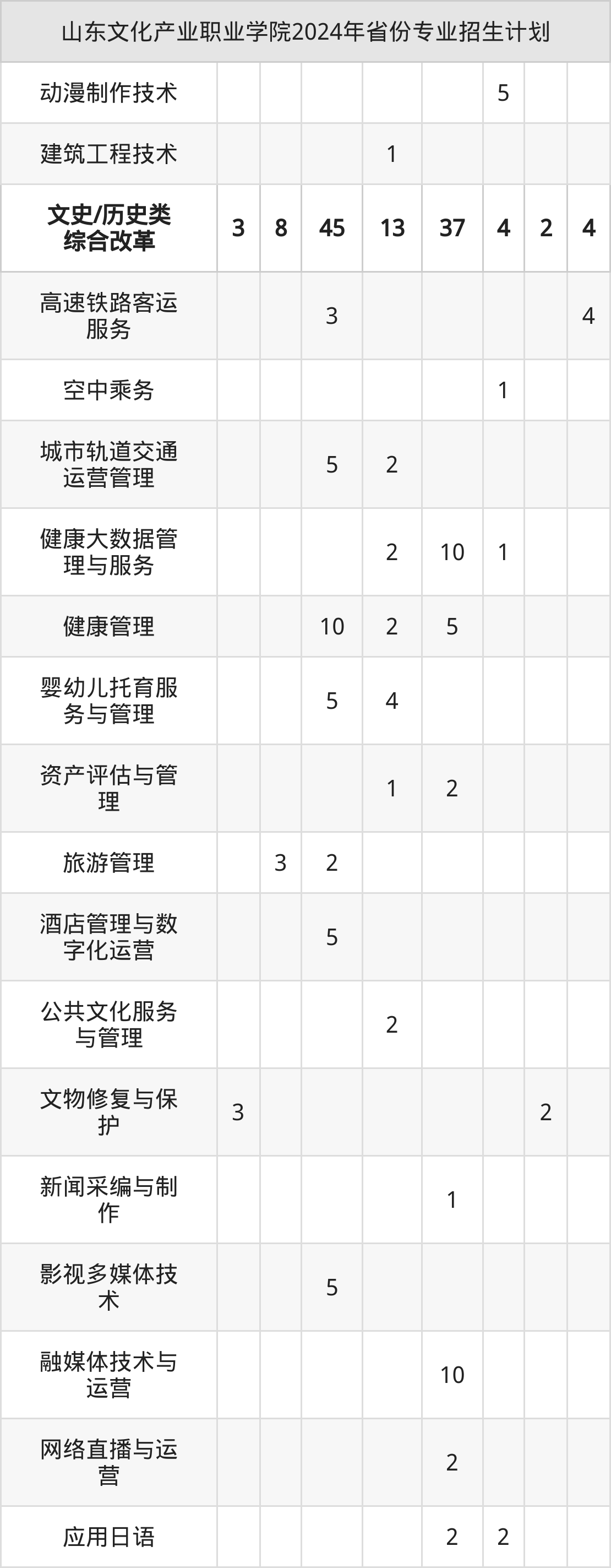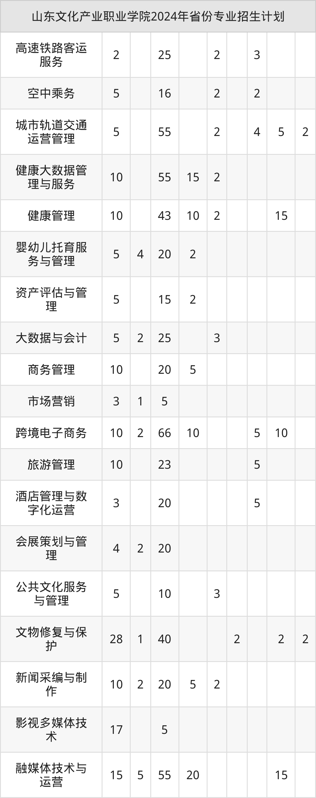 2025年山东文化产业职业学院专科招生计划待公布,下面附上2024年数据,暂供参考: