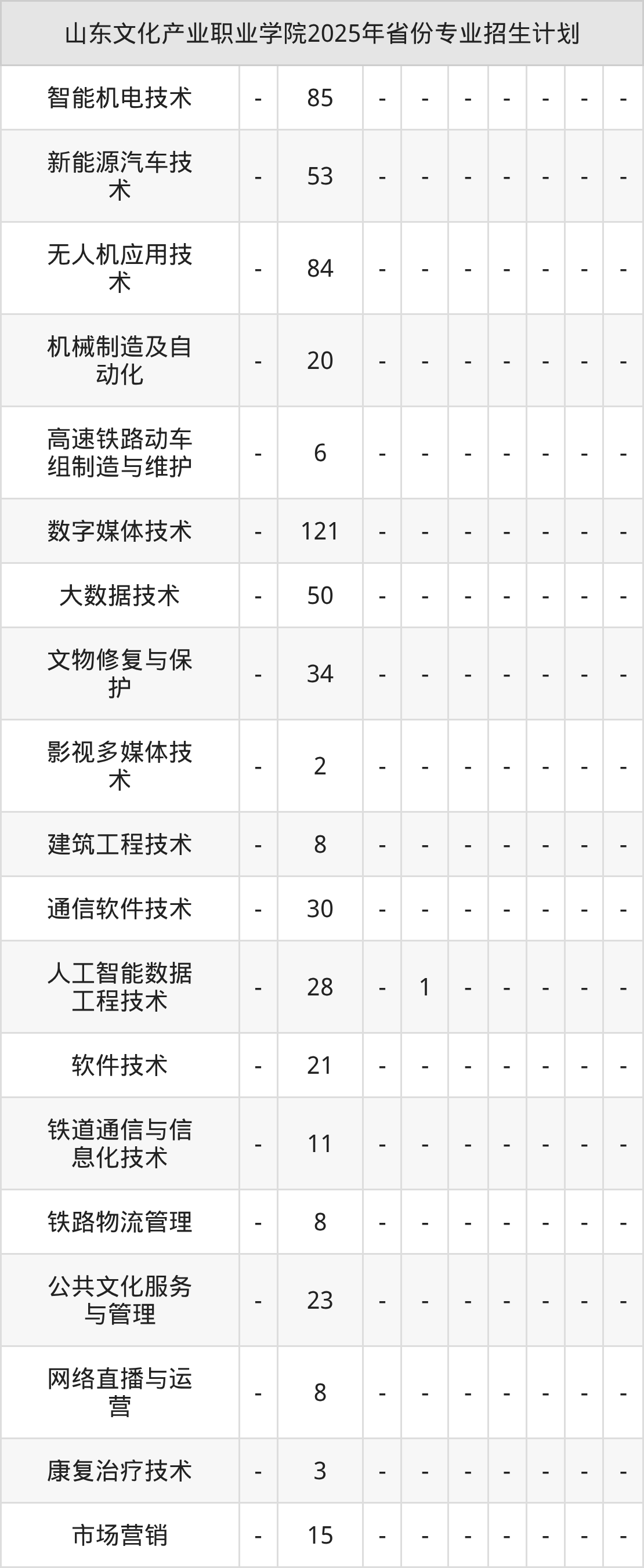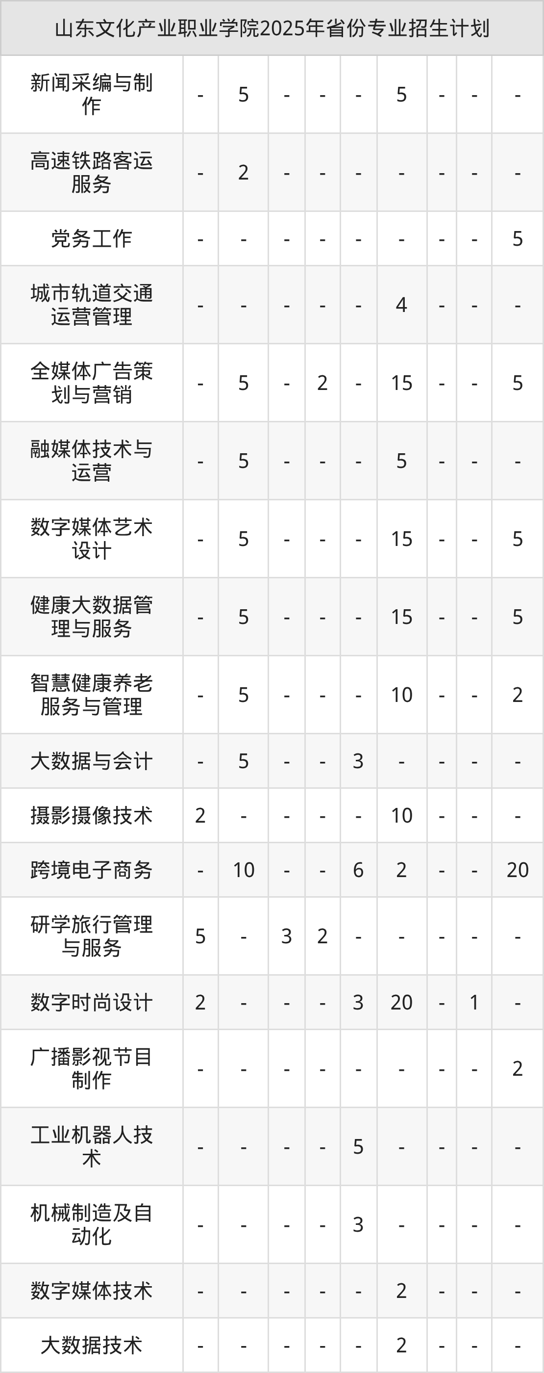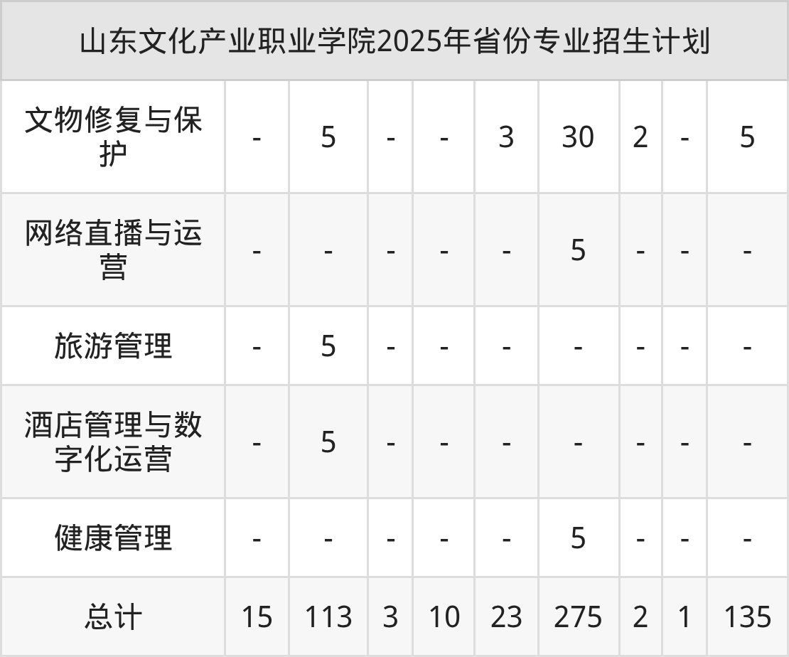 2026年山东文化产业职业学院专科招生计划待公布,下面附上2025年数据,暂供参考: