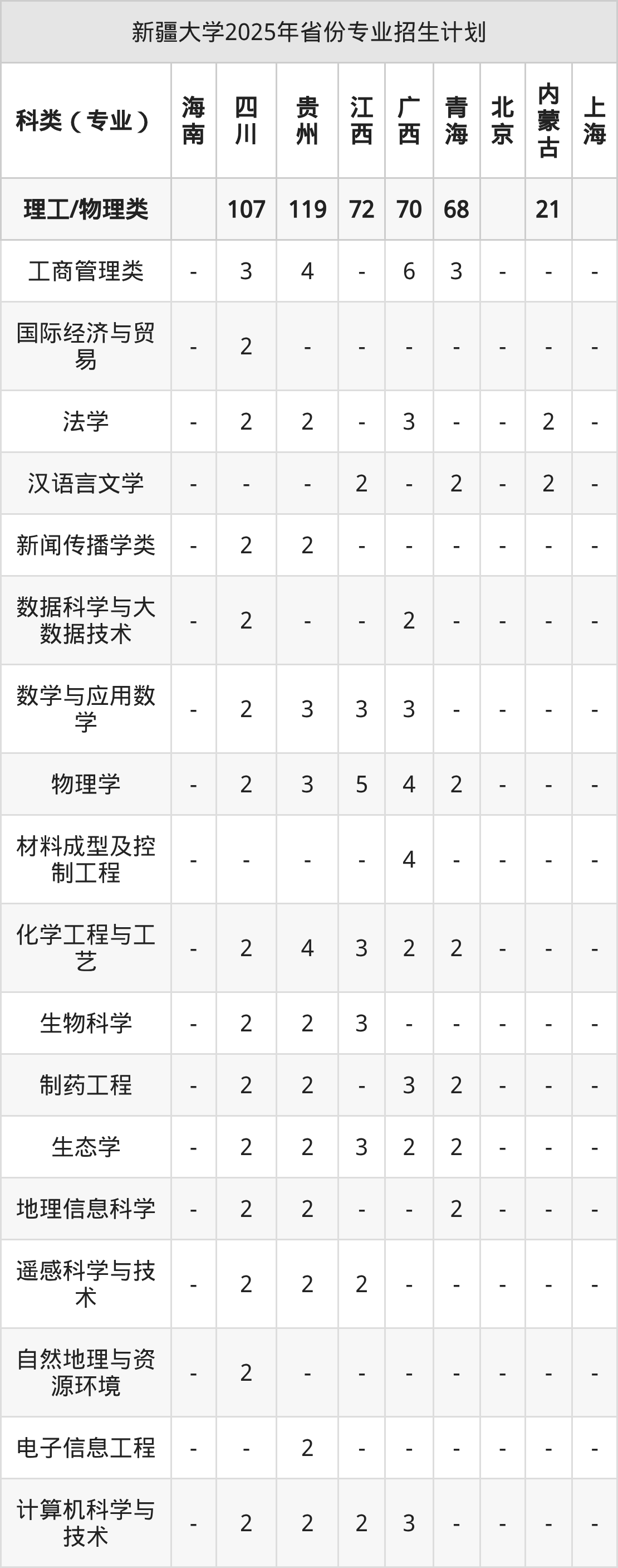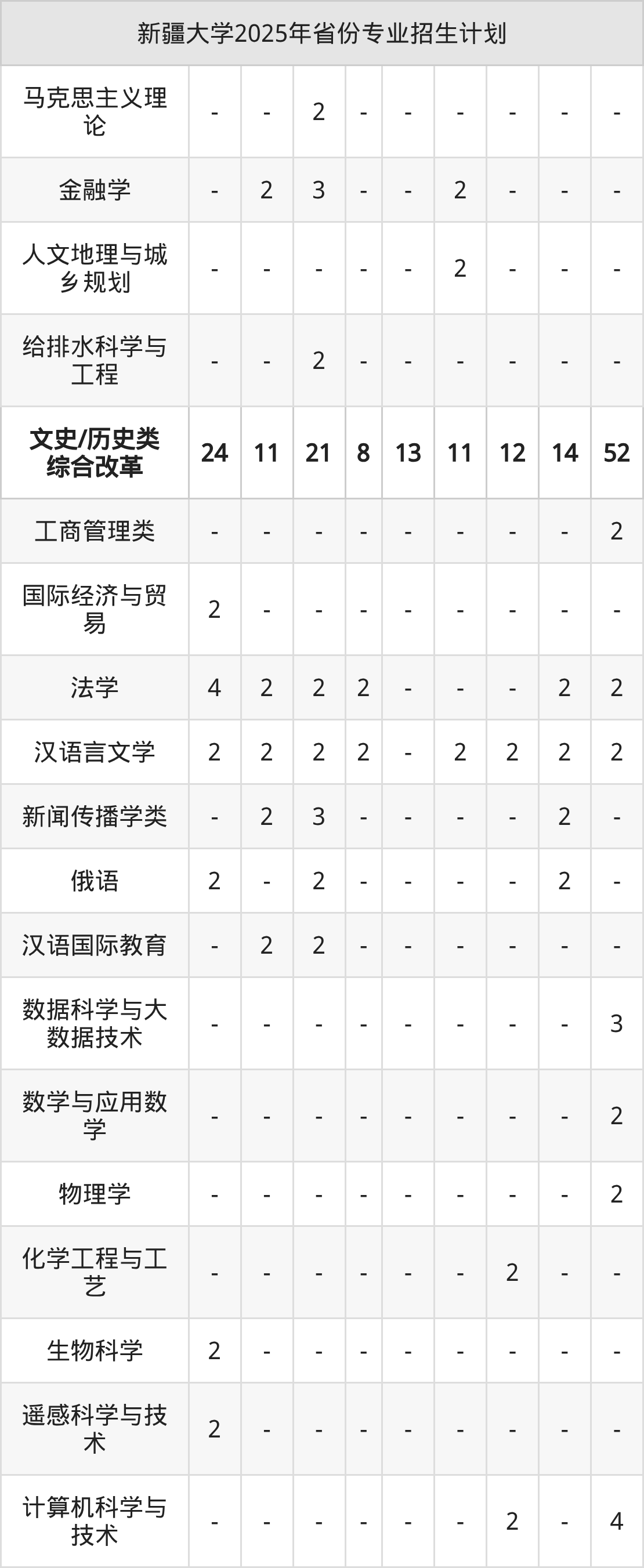 2026年新疆大学本科招生计划待公布,下面附上2025年数据,暂供参考:
